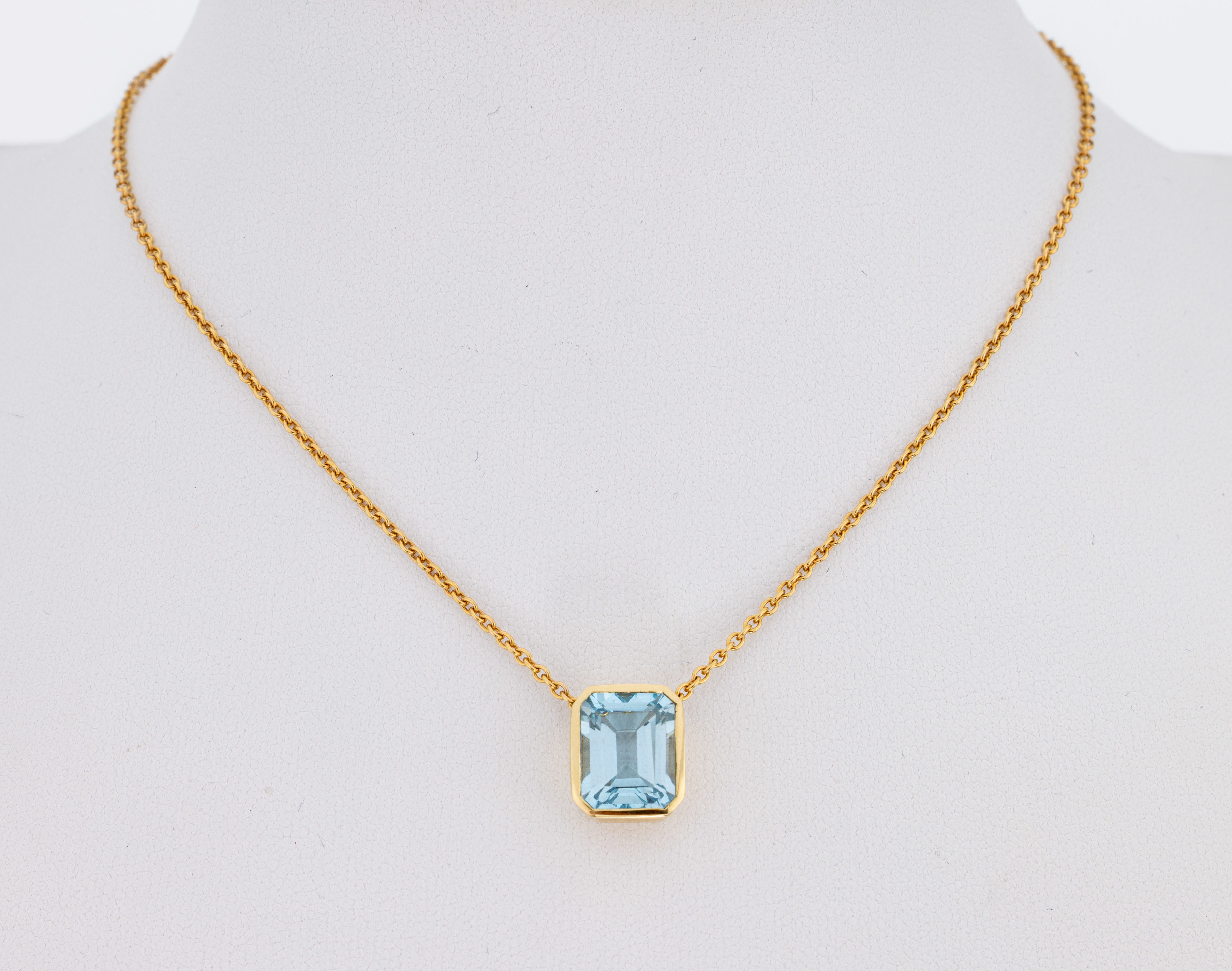 14 kt Gold Topas-Anhänger, GG 585/000, Blautopas (beh.) im Treppenschliff ca. 4.80
