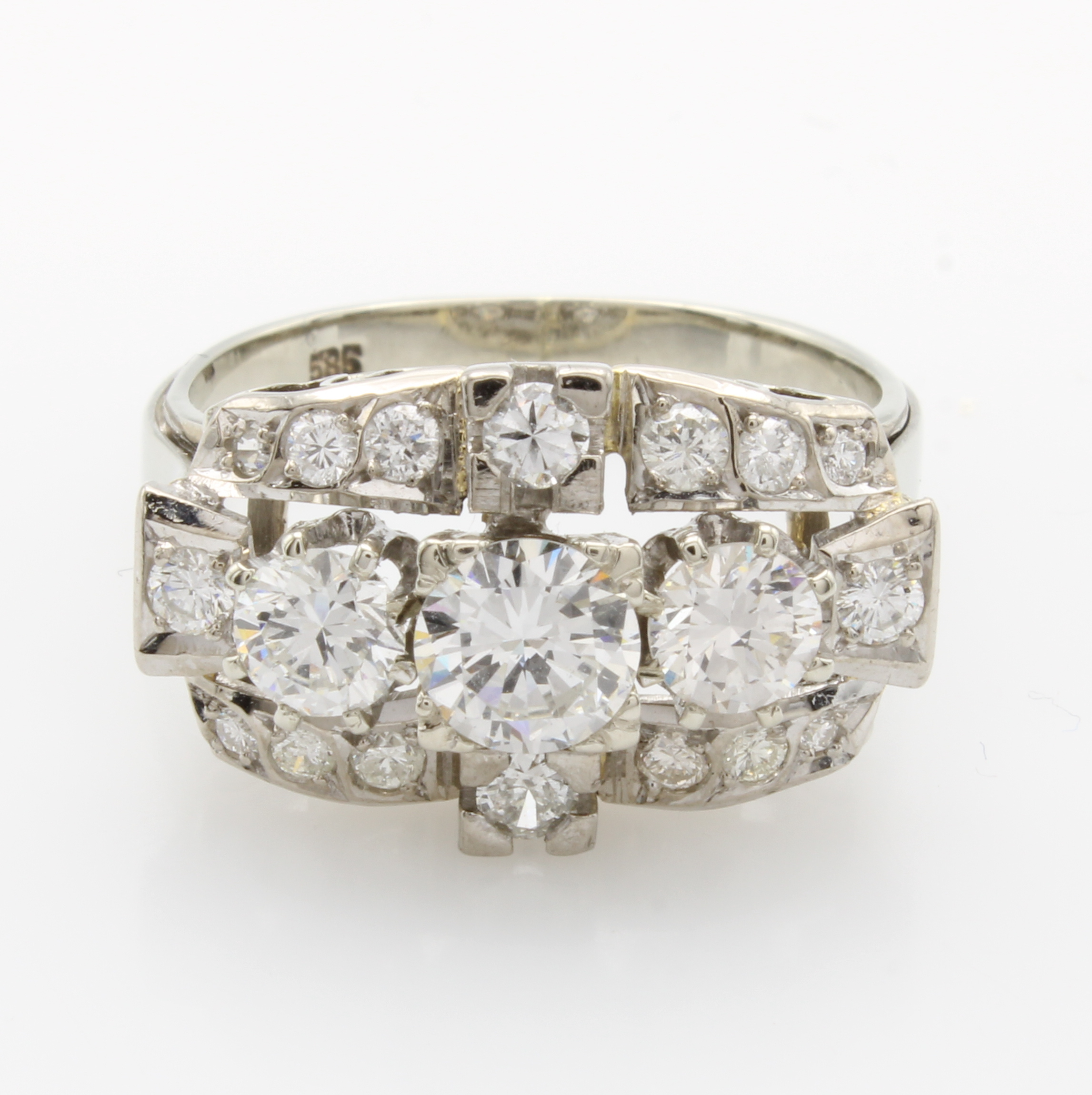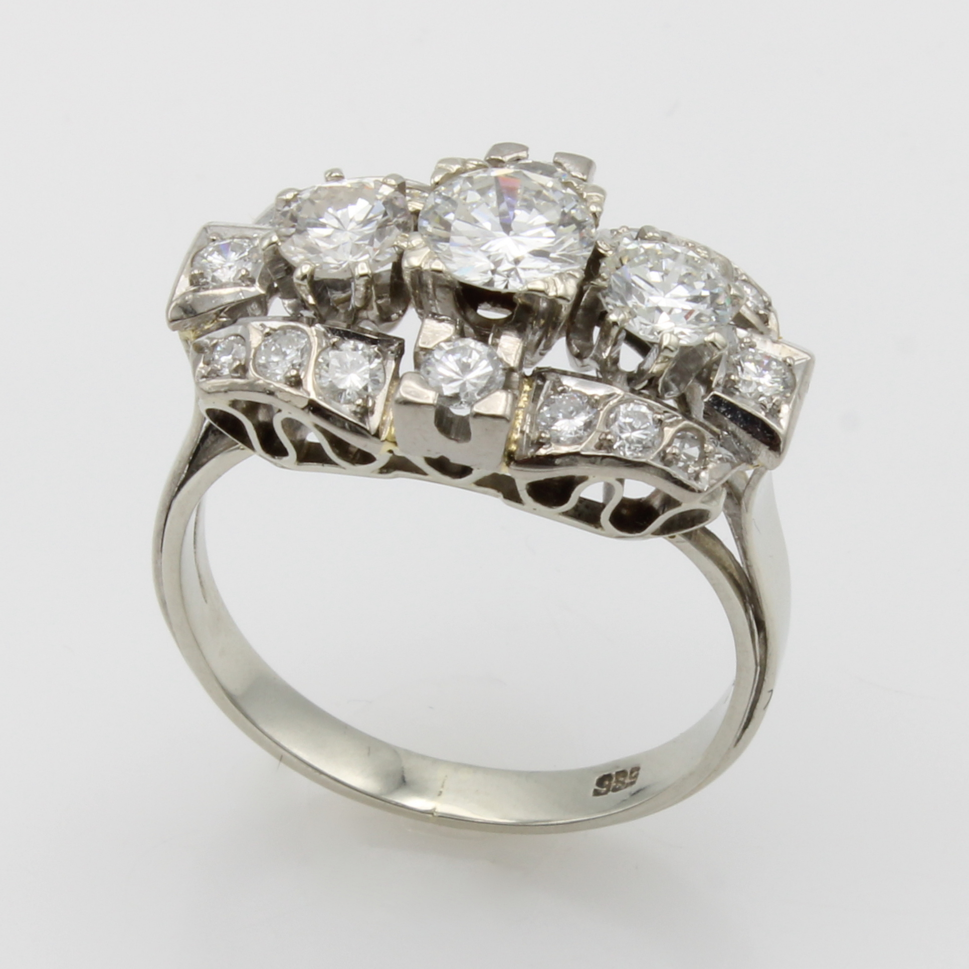 Ring mit Brillanten, WG 585/000, 19 Brill. in 3 Reihen gef. zus. ca. 1.24 ct feines Weiß/vs-si, RW ca. 57 Schätzpreis: 5100, - EUR