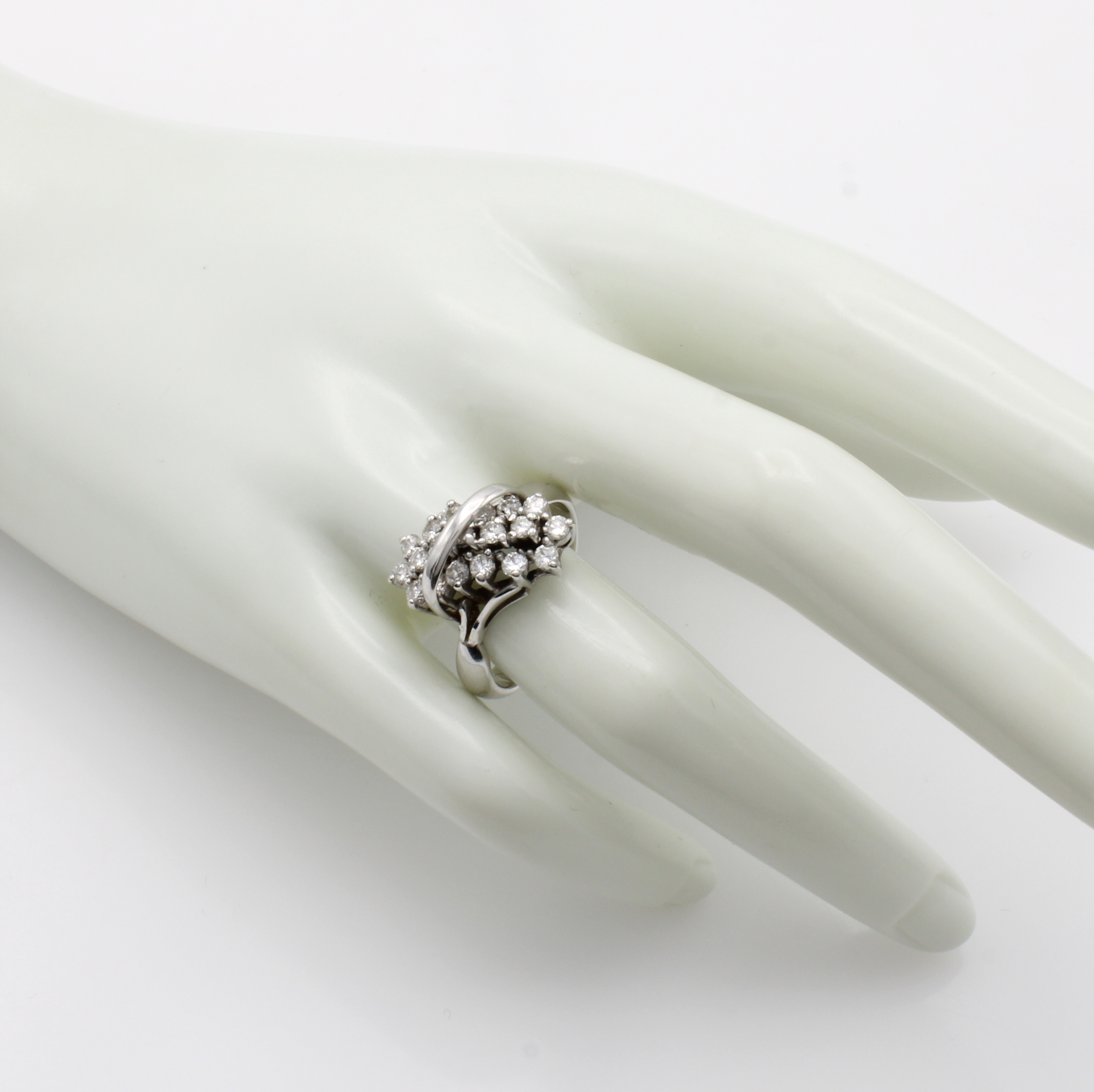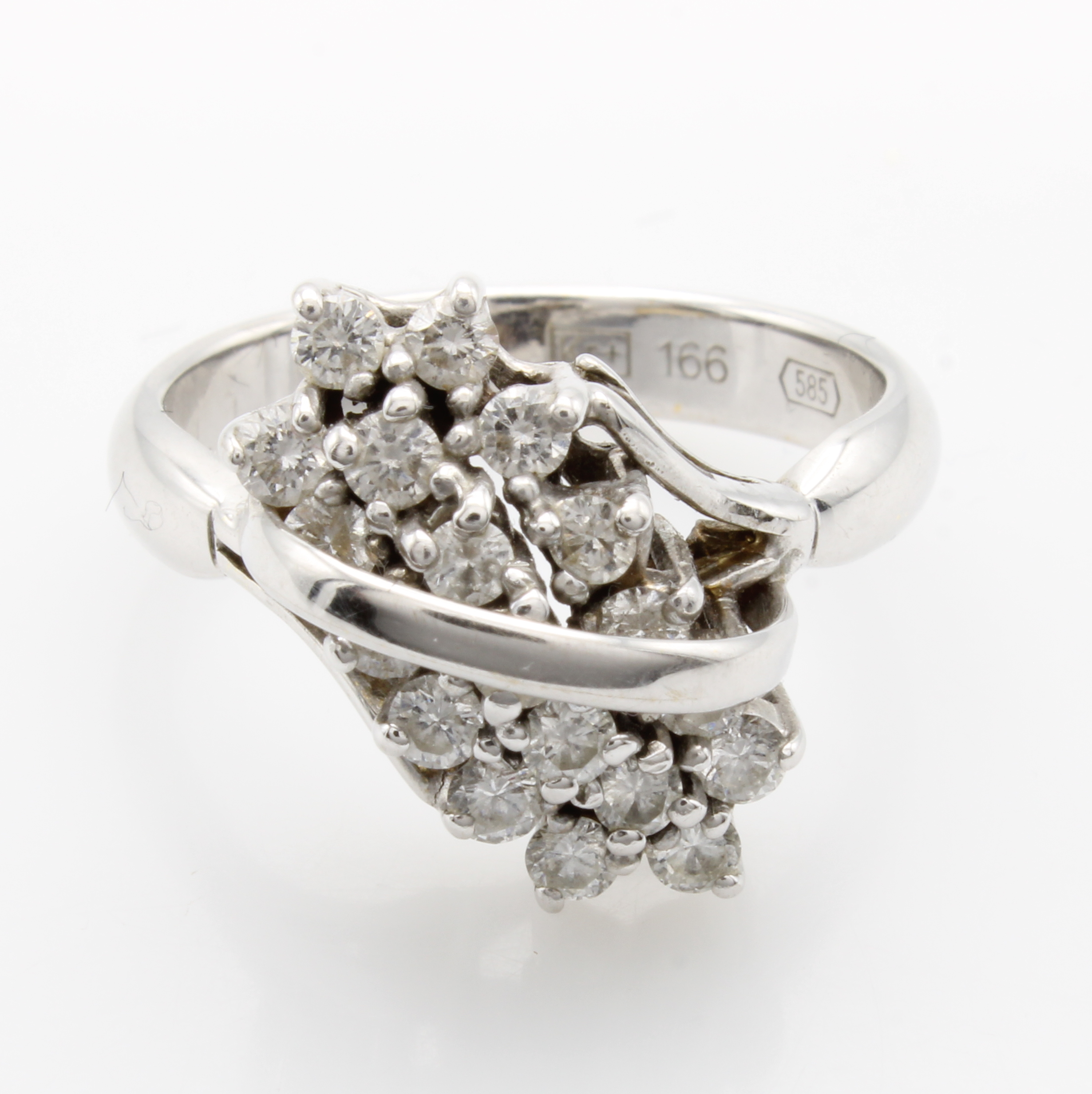 Ring mit Brillanten, WG 585/000, 19 Brill. in Krappenfassungen diagonal gef. zus. ca. 0.76 ct Weiß/si, RW ca. 56 Schätzpreis: 2600, - EUR