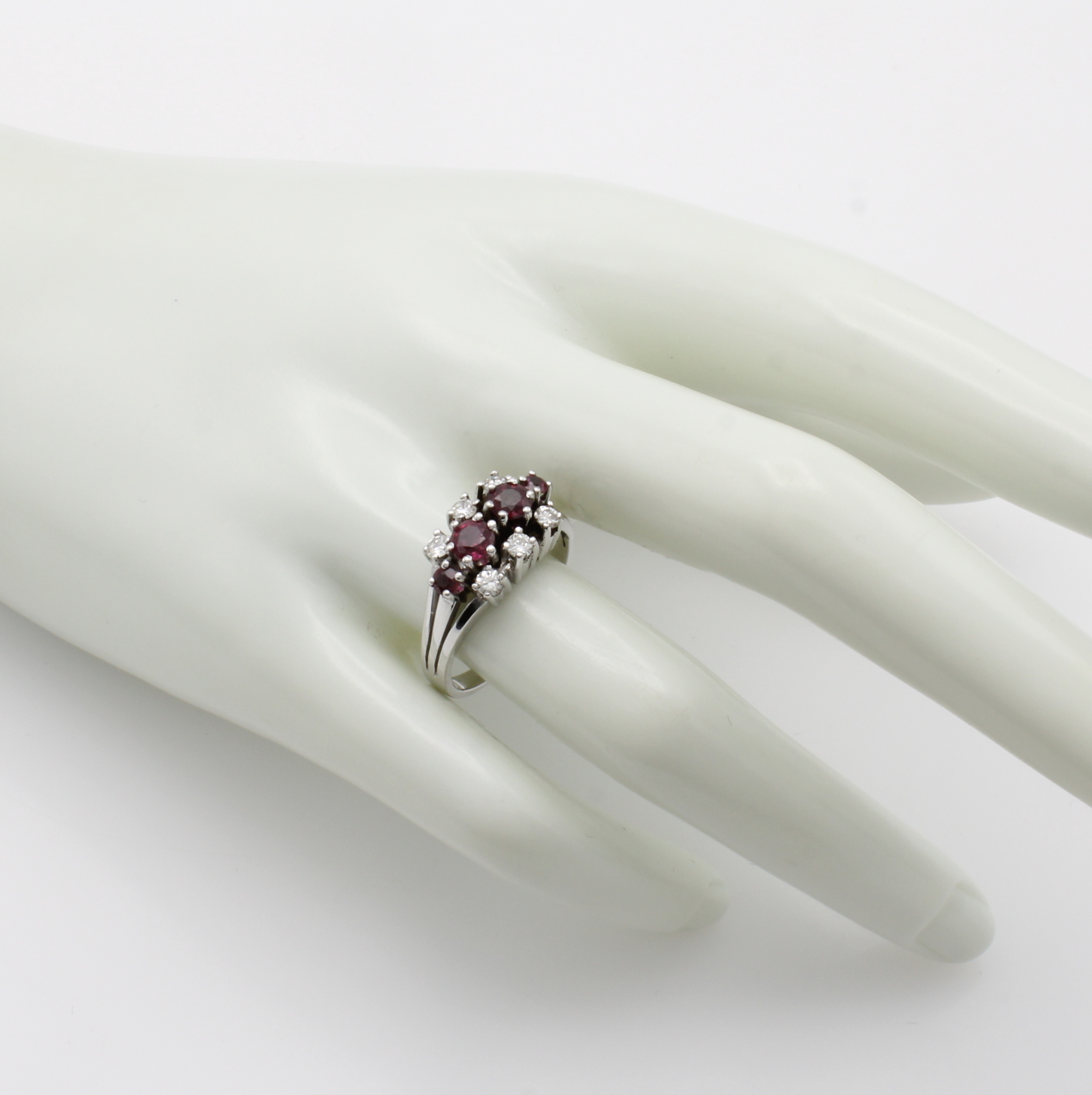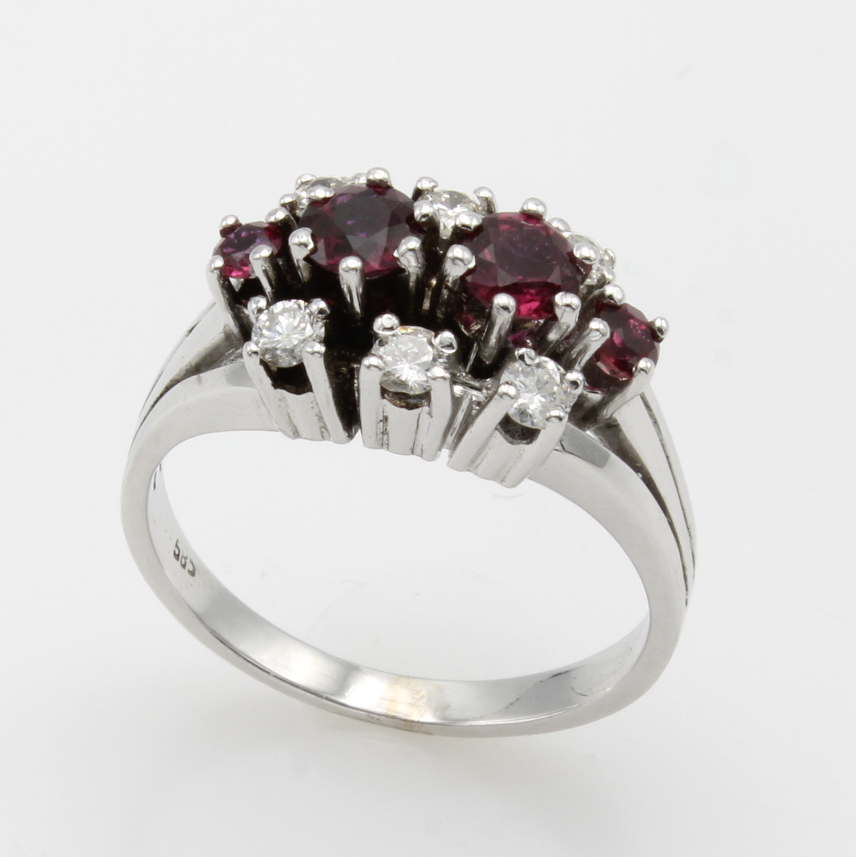 Ring mit Rubinen und Brillanten, WG 585/000, 4 Rubine, 6 Brill. zus. ca. 0.24 ct top light brown/si, RW ca. 56 Schätzpreis: 1900, - EUR