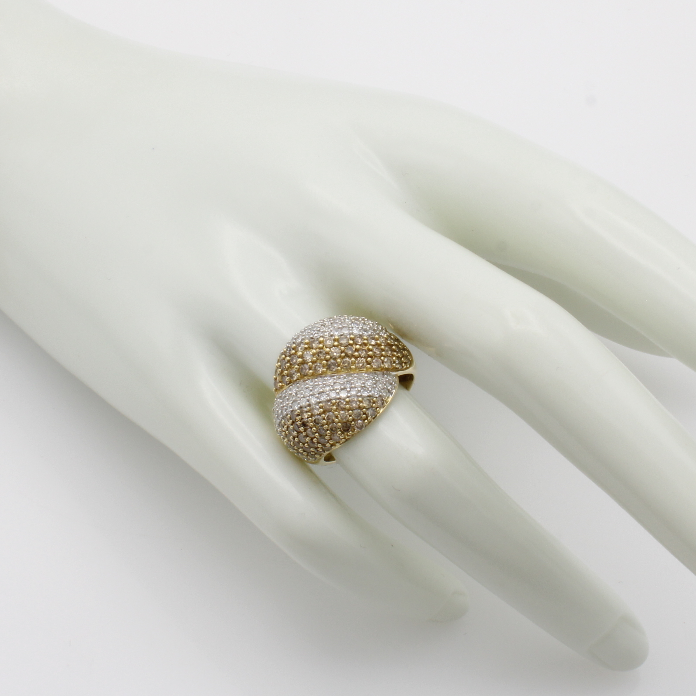 Ring mit Brillanten und Diamanten, GG 585/ 000, Brill. zus. ca. 2.14 ct Weiß/si, Diam. zus. ca. 2.14 ct Braun/si, mehrrhg. gefasst, RW ca. 53 Schätzpreis: 6800, - EUR
