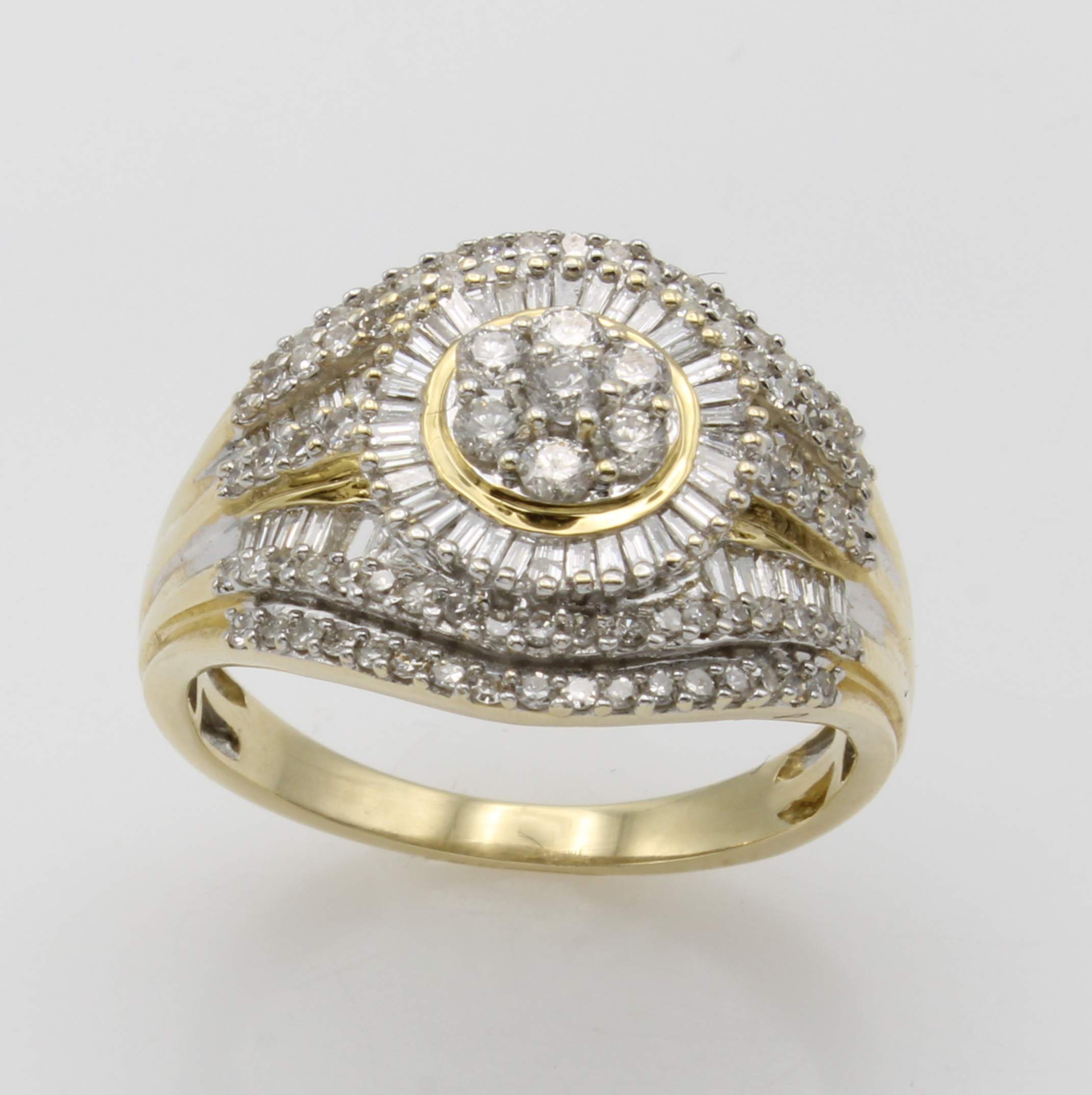 Ring mit Diamanten und Brillanten, GG 585/ 000, Diam. im Baguette- u. Trapezschliff und Brill. zus. ca. 1.54 ct Weiß/si-p, RW ca. 59 Schätzpreis: 3900, - EUR