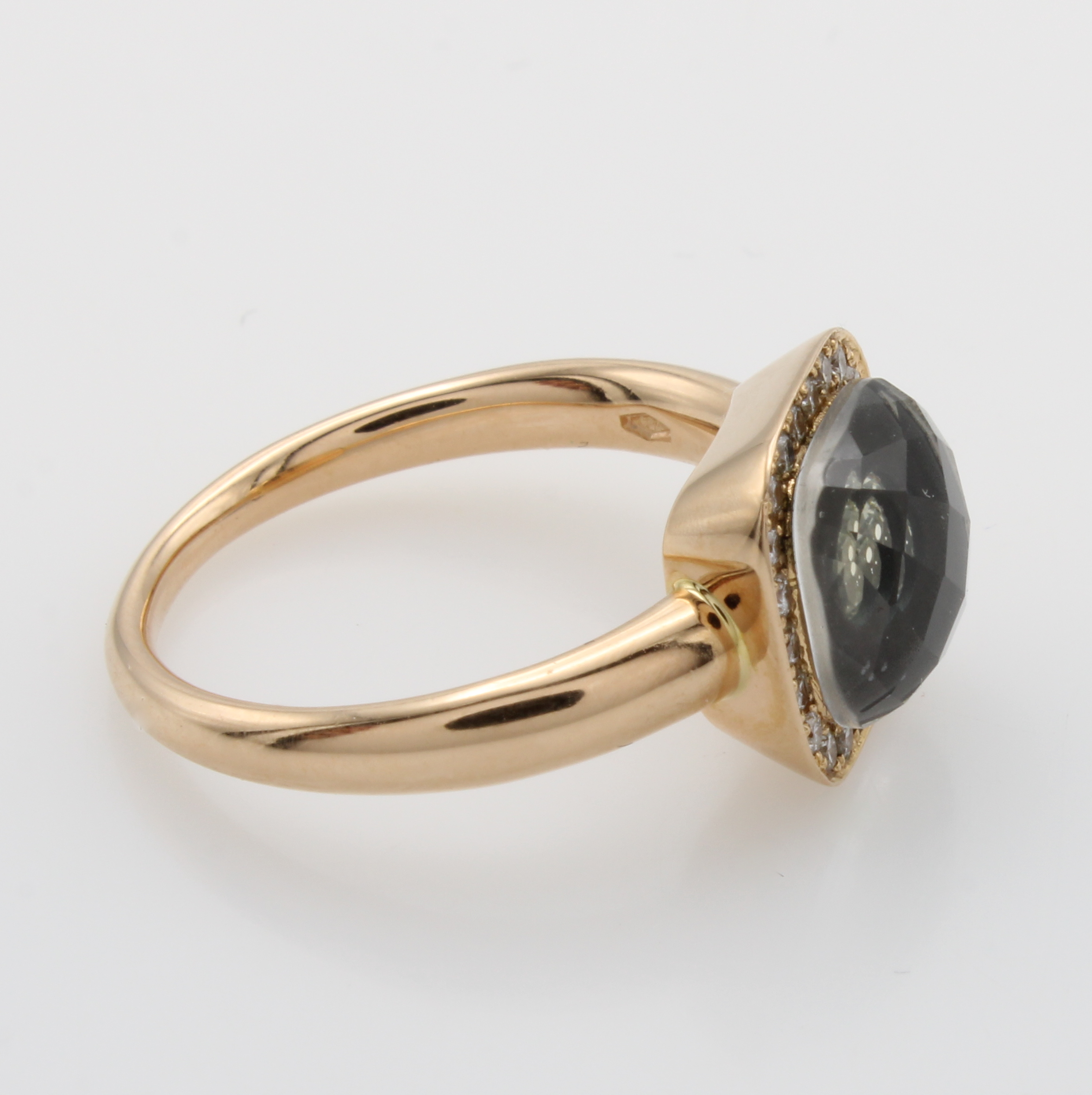 Ring mit Topas und Diamanten, RG 750/000, carréef. Ringkopf, facett. Topas (beh.), Solitär in Topas gef. u. Besatzdiam. zus. ca. 0.26 ct Weiß/si, RW ca. 54.5 Schätzpreis: 2380, - EUR