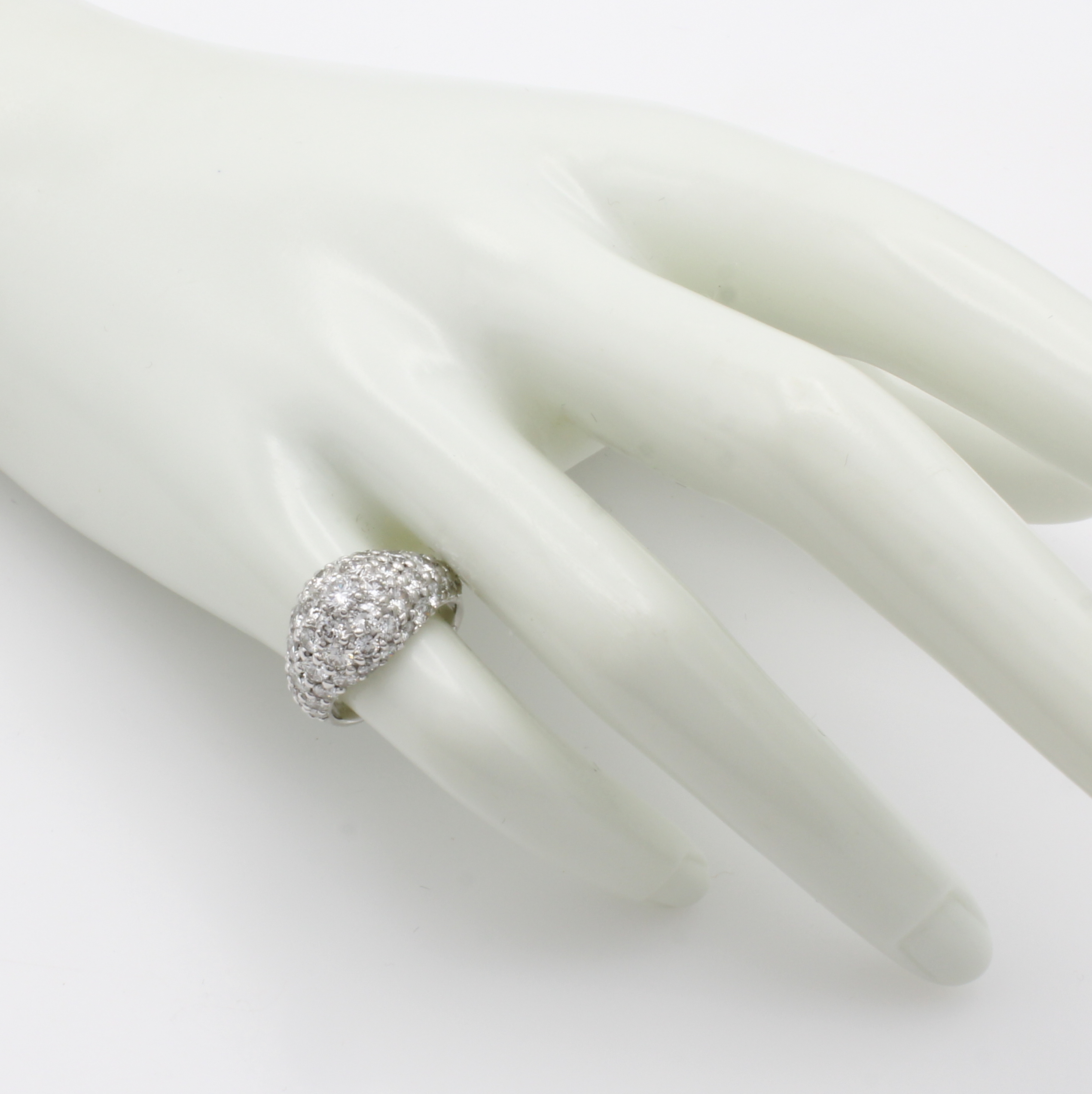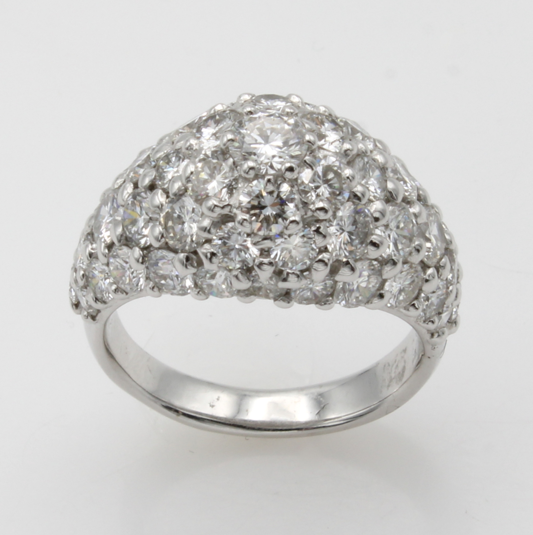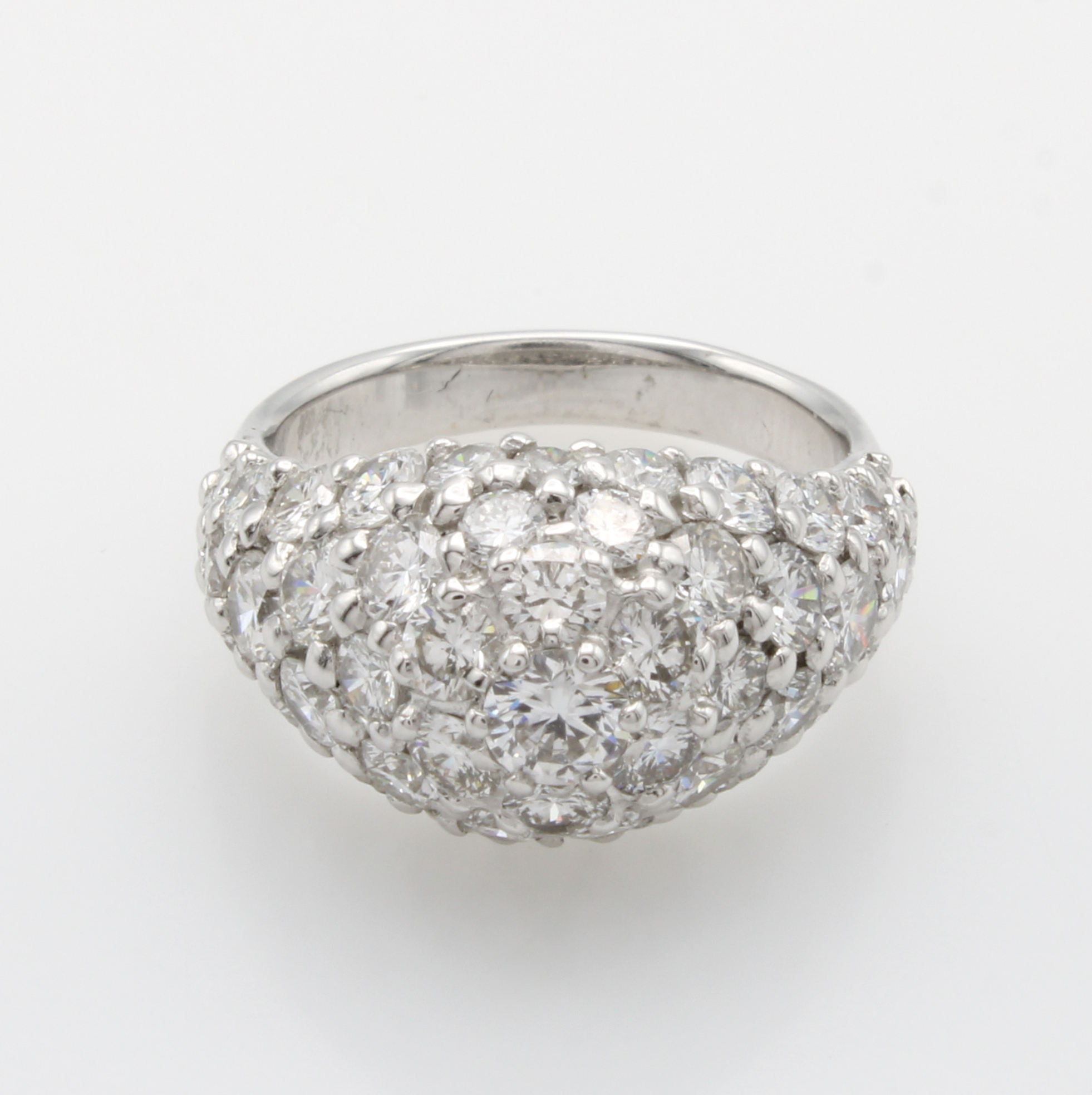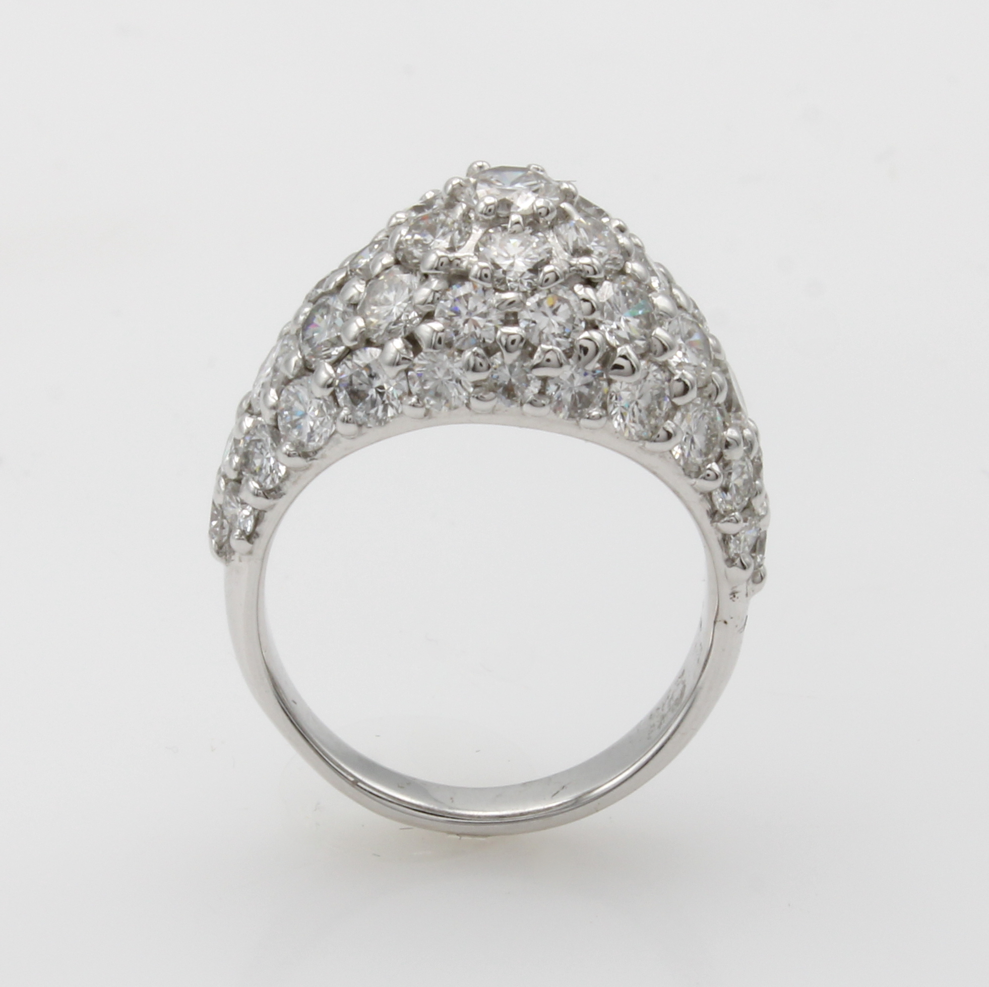 Ring mit Brillanten, WG 750/000, Ringkopf spitz zulaufend, Brill. zus. ca. 3.60 ct hochfeines Weiß-feines Weiß/vvs-vs, RW ca. 46 Schätzpreis: 6000, - EUR