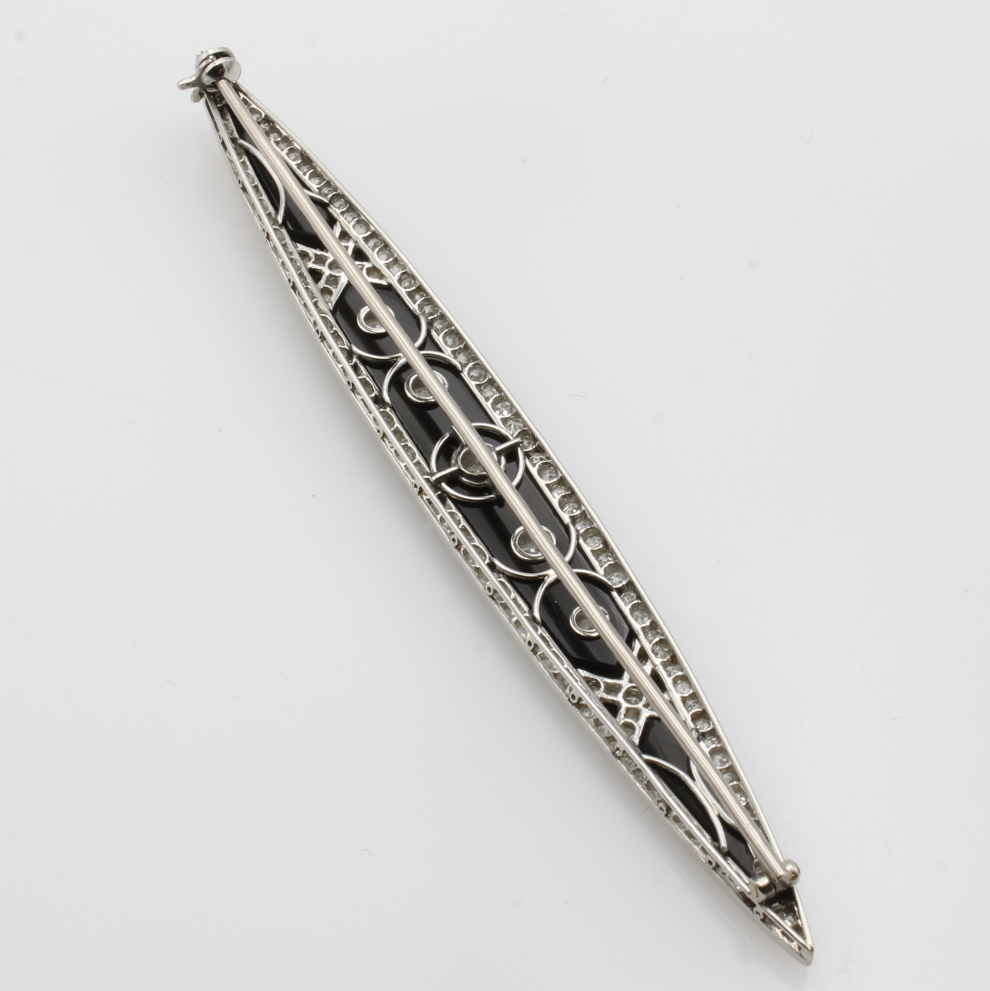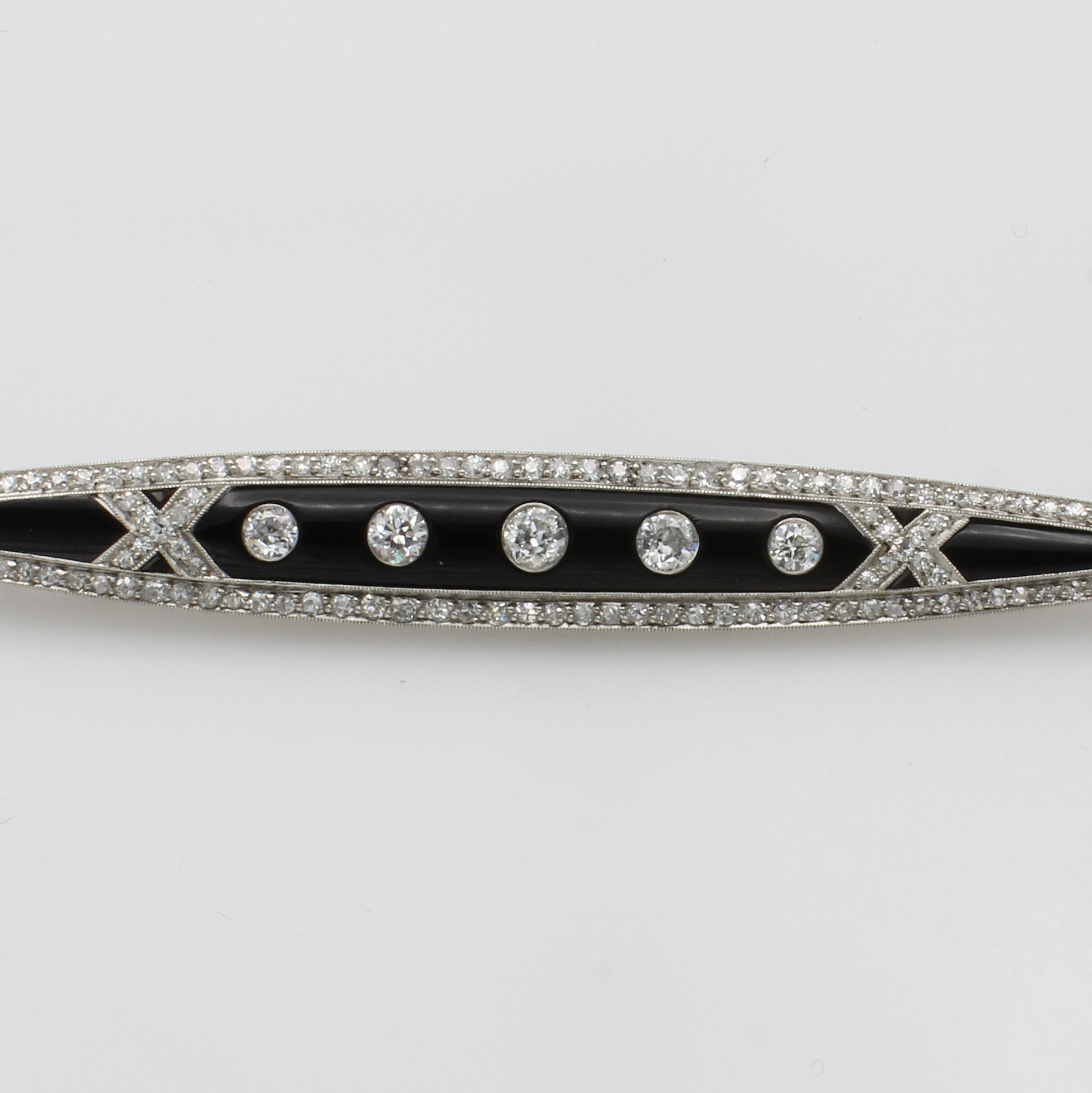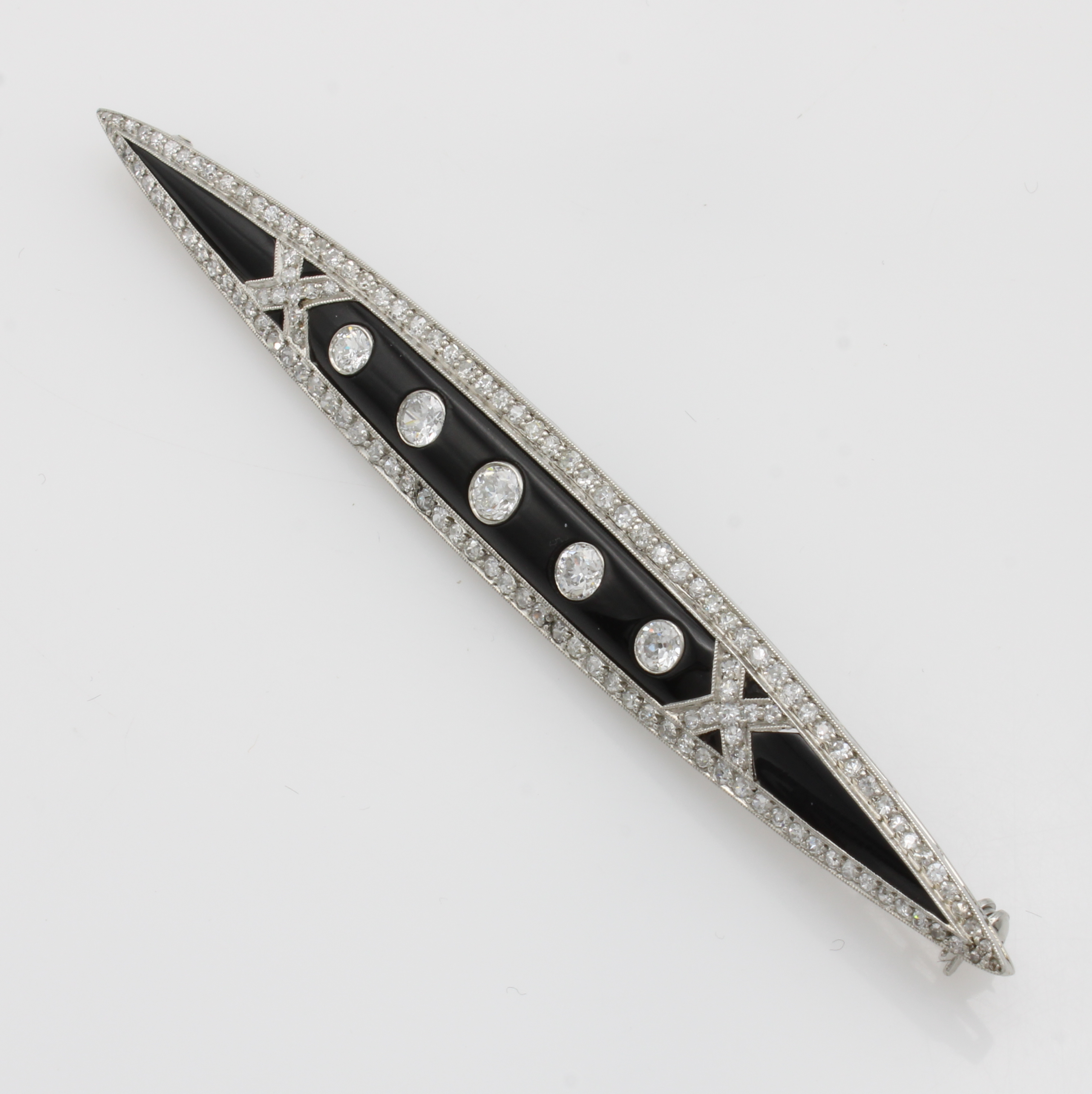 Art Deco Brosche mit Onyx und Diamanten, Platin 950/000, navettef. Onyx, Diam. zus. ca.2.50 ct feines Weiß/vs Schätzpreis: 11000, - EUR