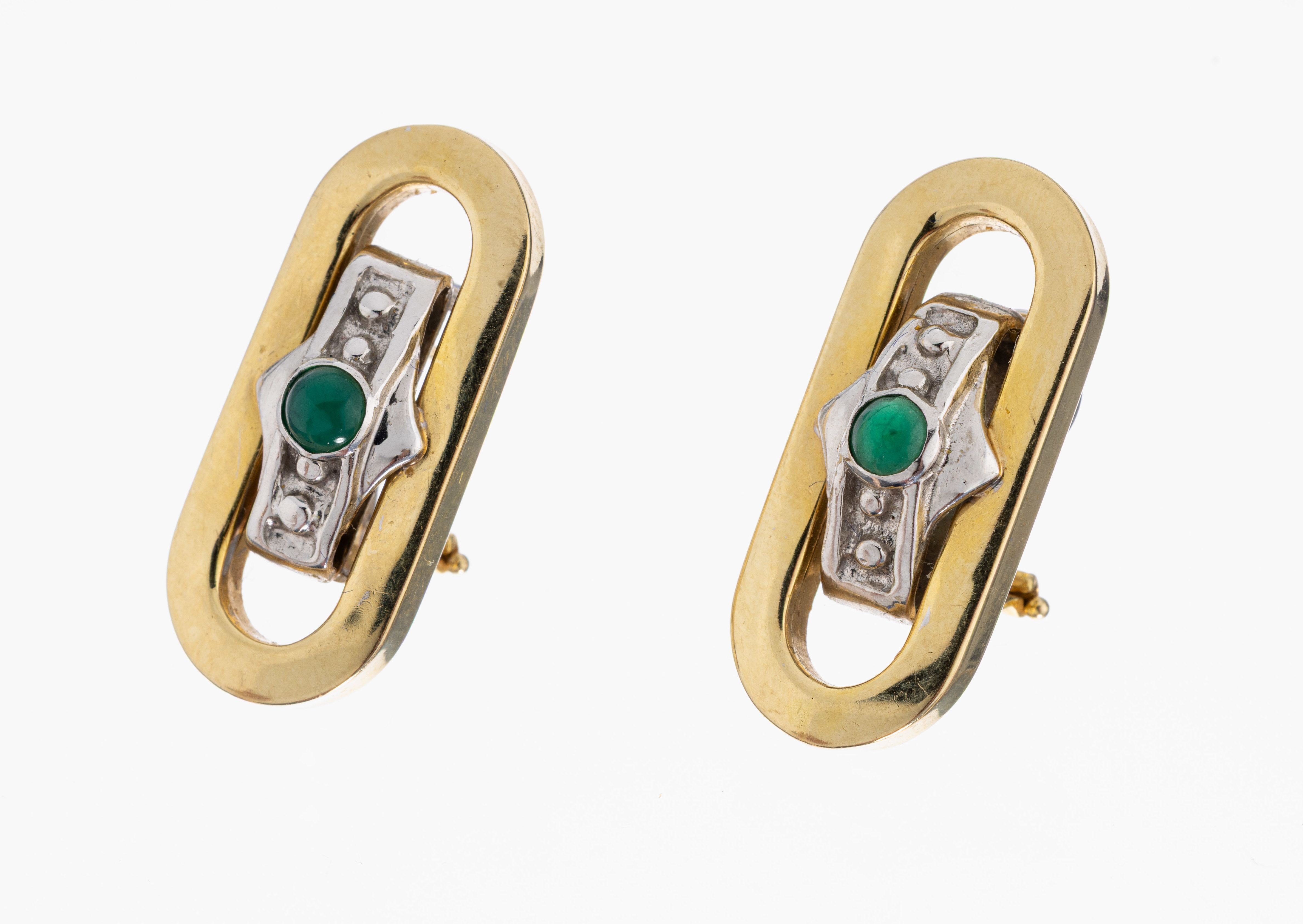 Ausgefallenes 14 kt Gold Ohrstecker, GG/WG 585/000, länglich oval, mittig 2 kl.