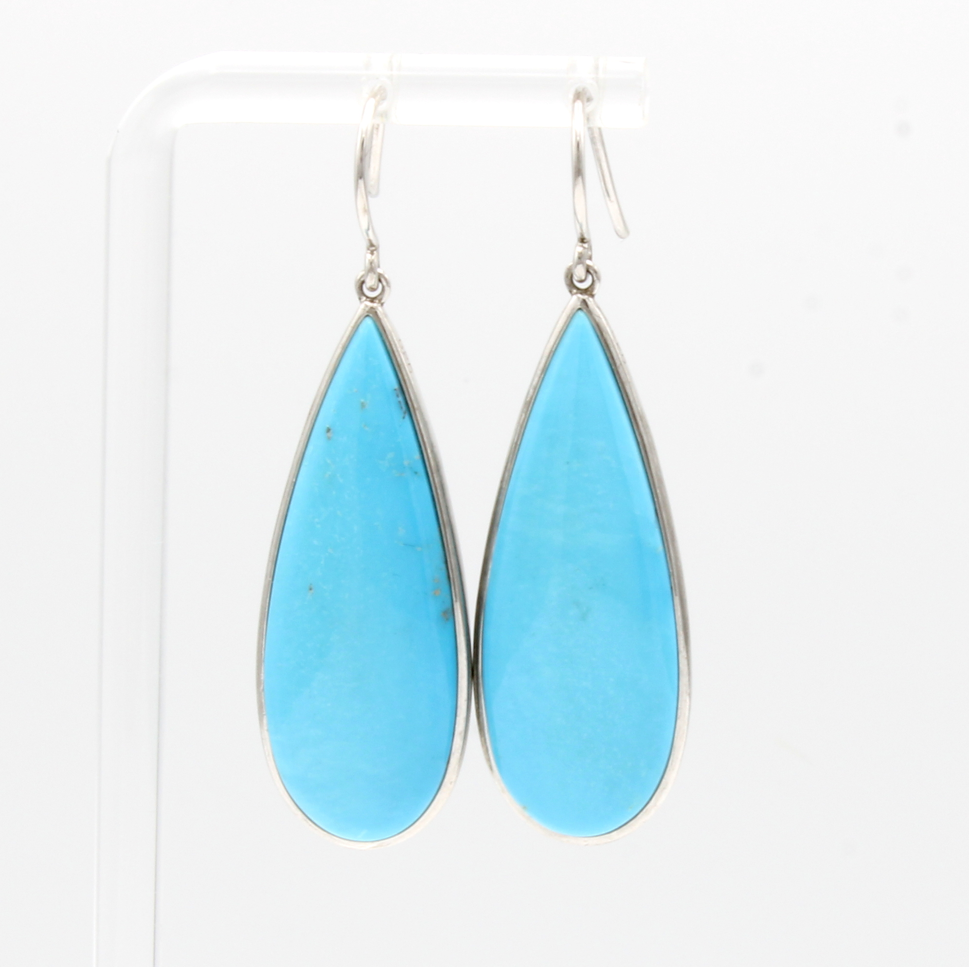Paar Ohrgehänge mit Türkisen, 925/000 Silber, Türkistropfen