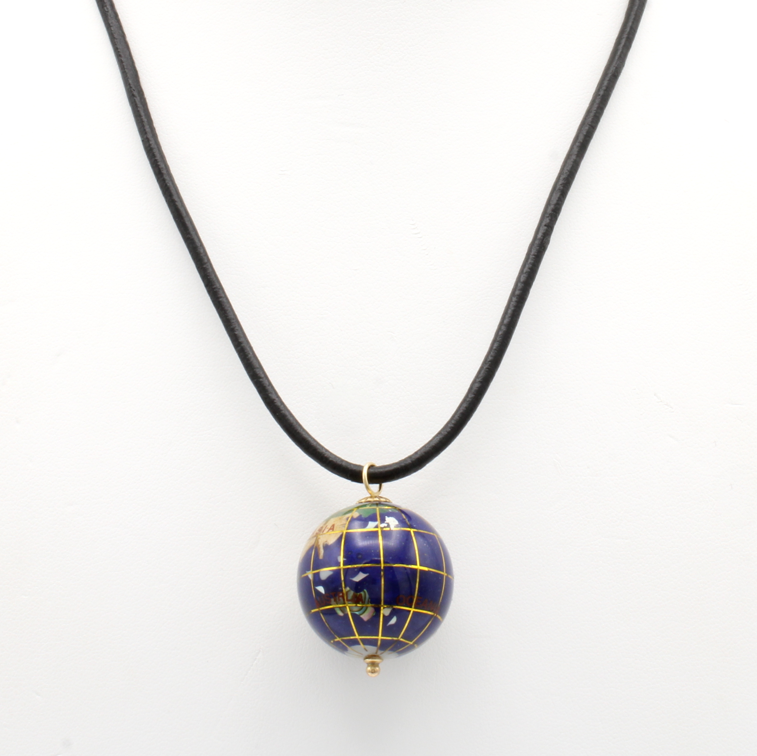 Lapislazulianhänger an Kunststoffkette, Weltkugel, D. ca. 25 mm, L. ca. 46 cm
