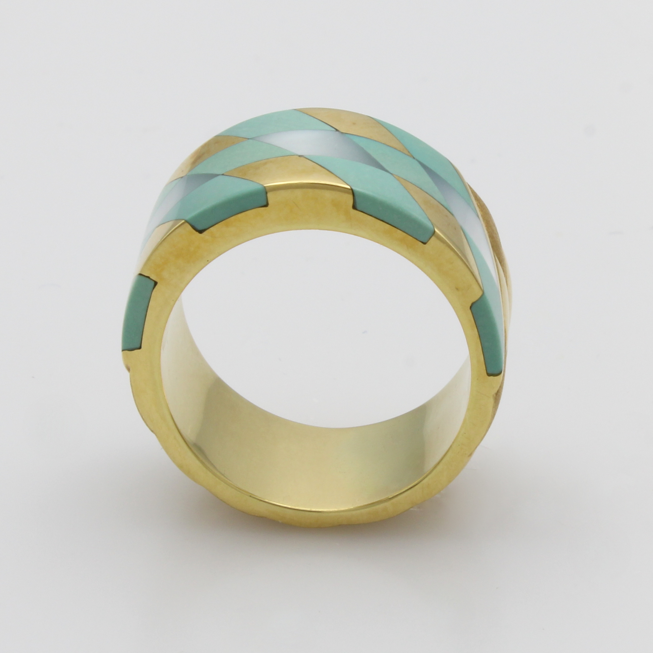 Ring mit Türkisen und Perlmutt, GG 750/000, ca. 54 Schätzpreis: 1350, - EUR