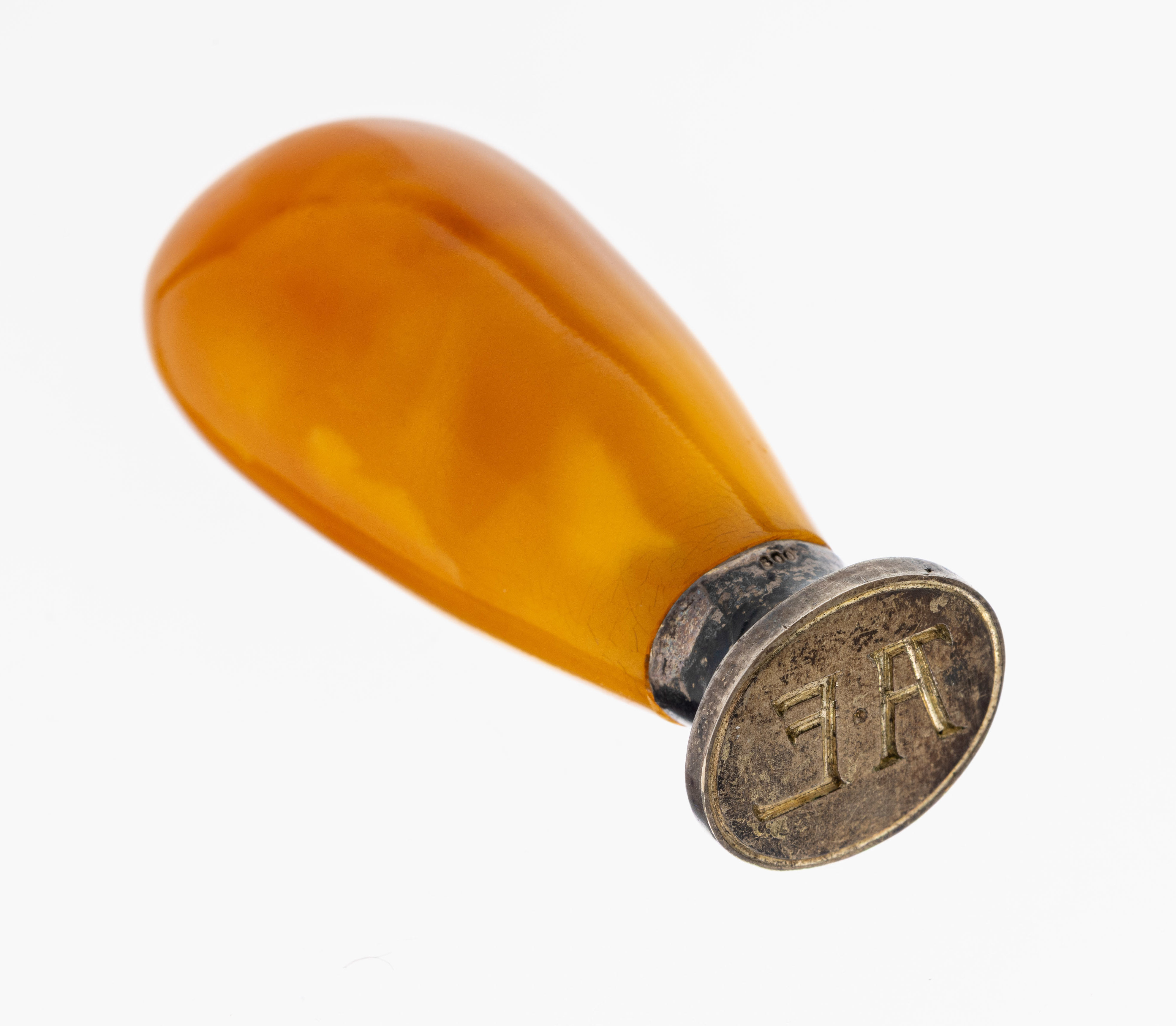 Bernstein-Petschaft, um 1900, Handgabe aus einem Stück Butterscotch Bernstein, von