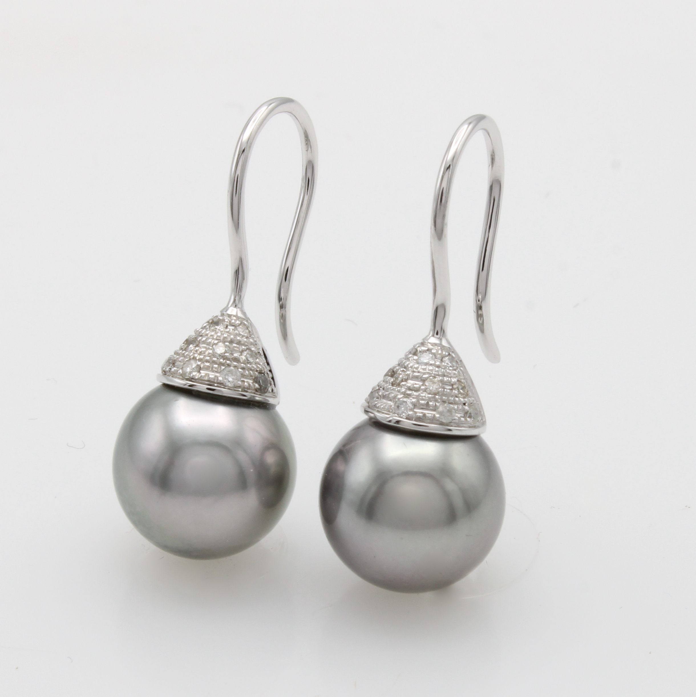 Paar Ohrhaken mit Tahitiperlen und Diamanten, WG 585/000, Diam. zus. ca. 0.15 ct Weiß/si, Perld. ca. 10-10.5 mm Schätzpreis: 1600, - EUR