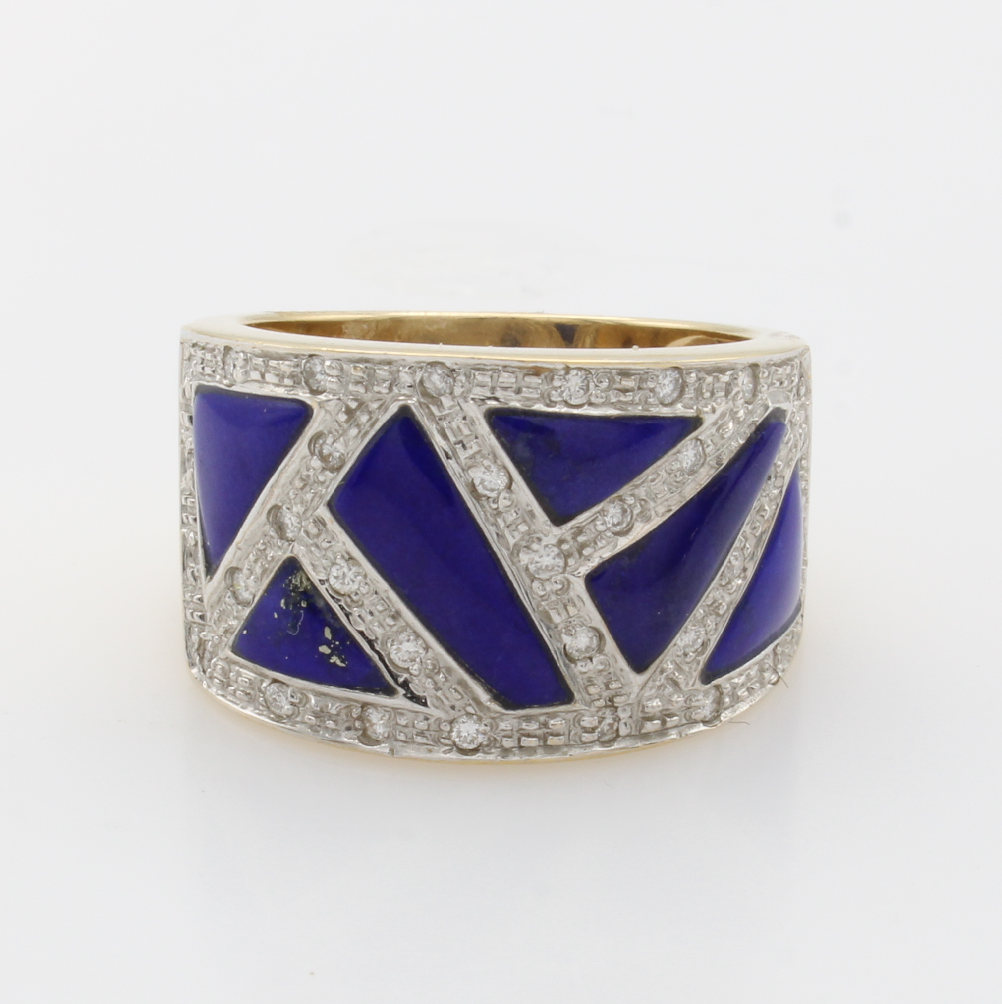 Ring mit Lapislazuli und Brillanten, GG 585/000, Brill. zus. ca. 0.20 ct Weiß/p, Lapislazulidreiecke, RW ca. 53 Schätzpreis: 1250, - EUR