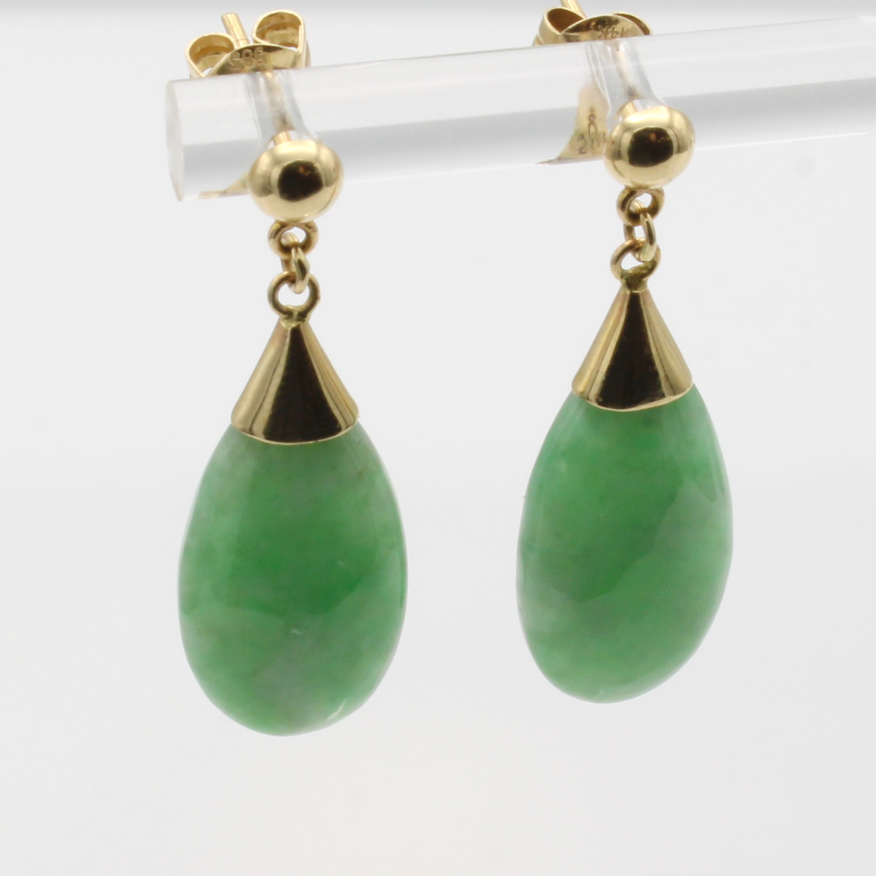 Paar Ohrstecker mit Jade, GG 585/000, 2 tropfenf. Jade ca. 20x10 mm Schätzpreis: 380, - EUR