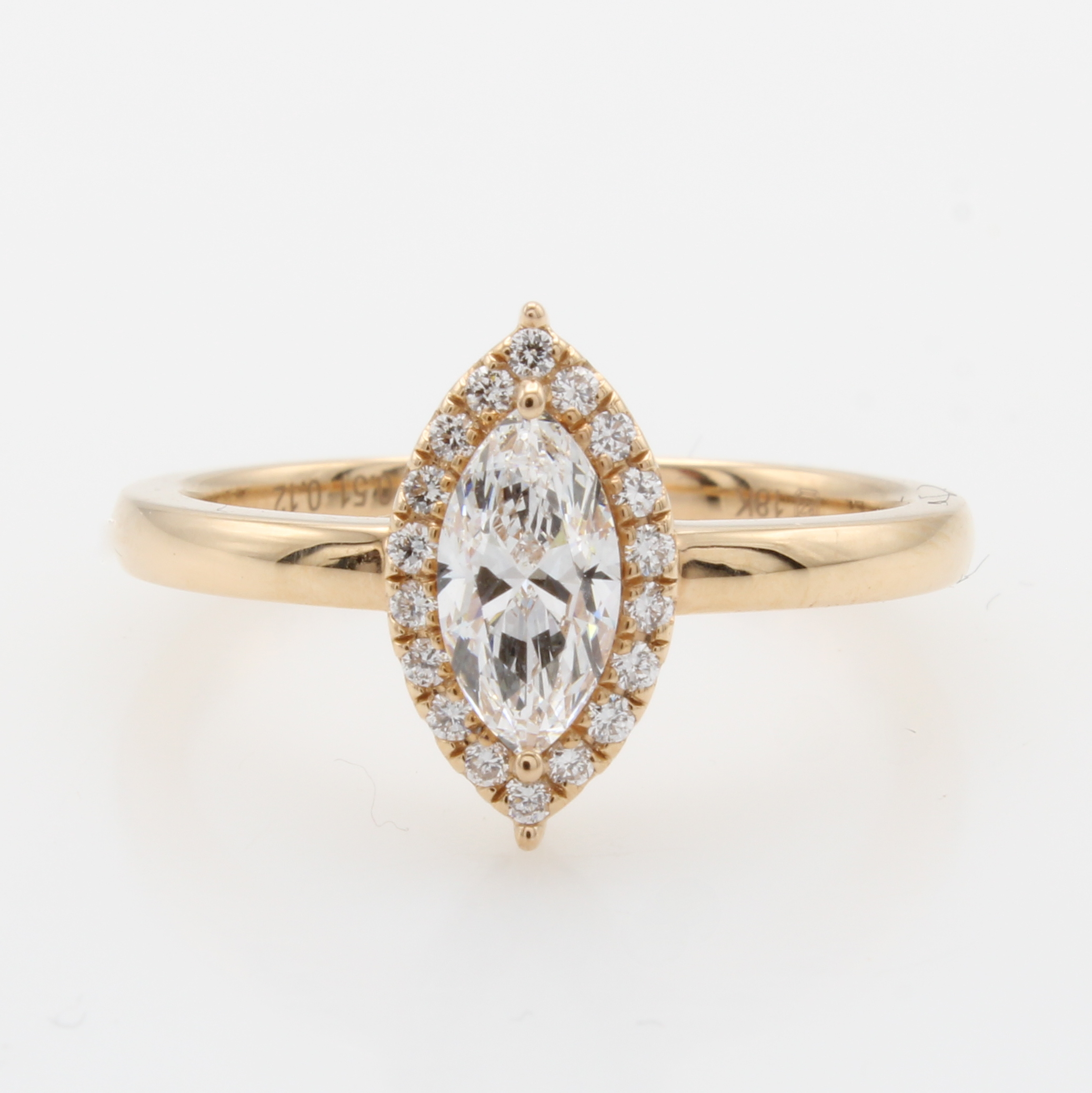 Schiffchenring mit Diamant und Brillanten, RG 750/000, Diam.-Navette 0.51 ct hochfeines Weiß(D)/lupenrein mit GIA- Expertise u. Brill. ca. 0.63 ct feines Weiß/si, RW ca. 55 Schätzpreis: 5850, - EUR