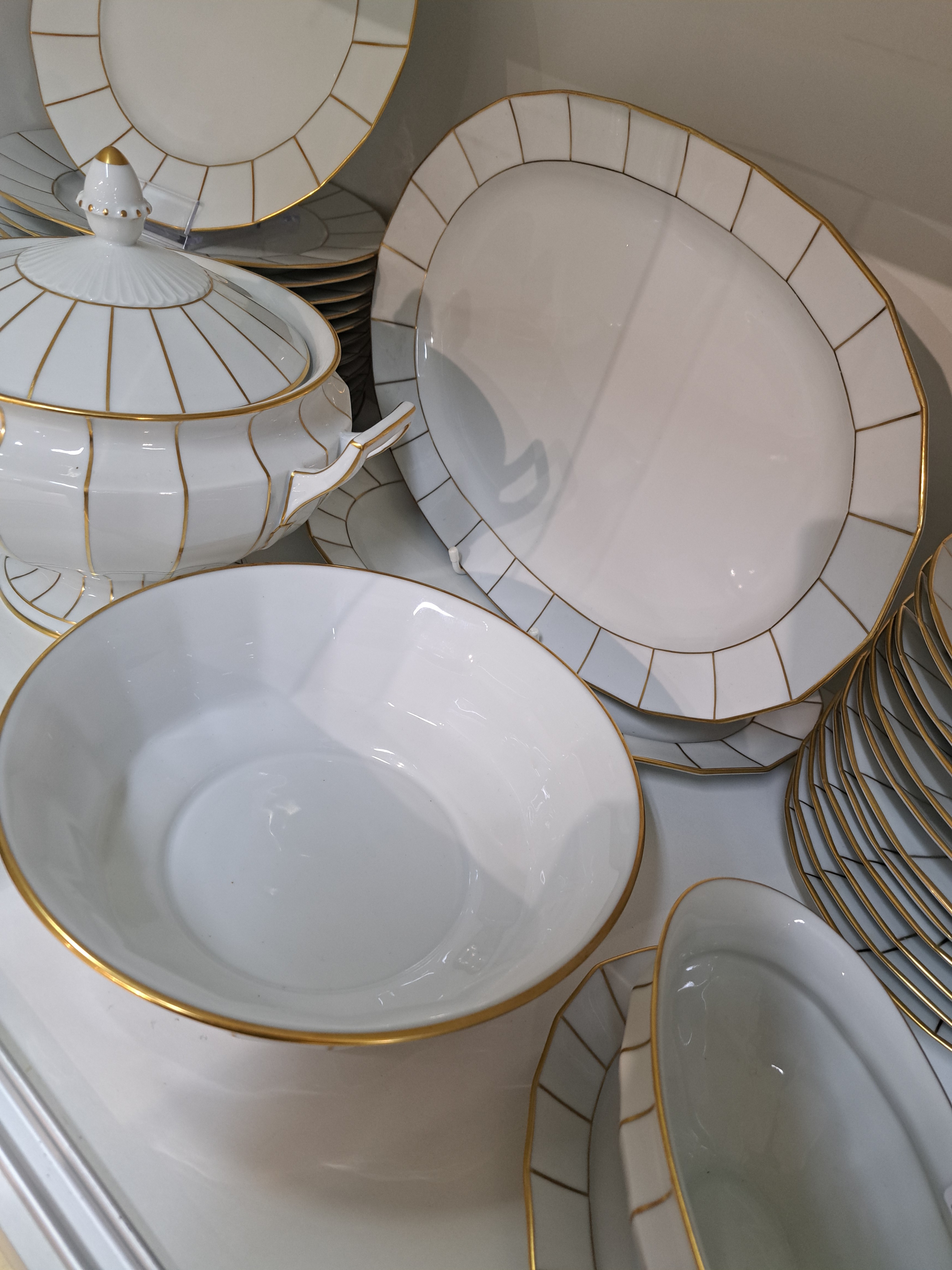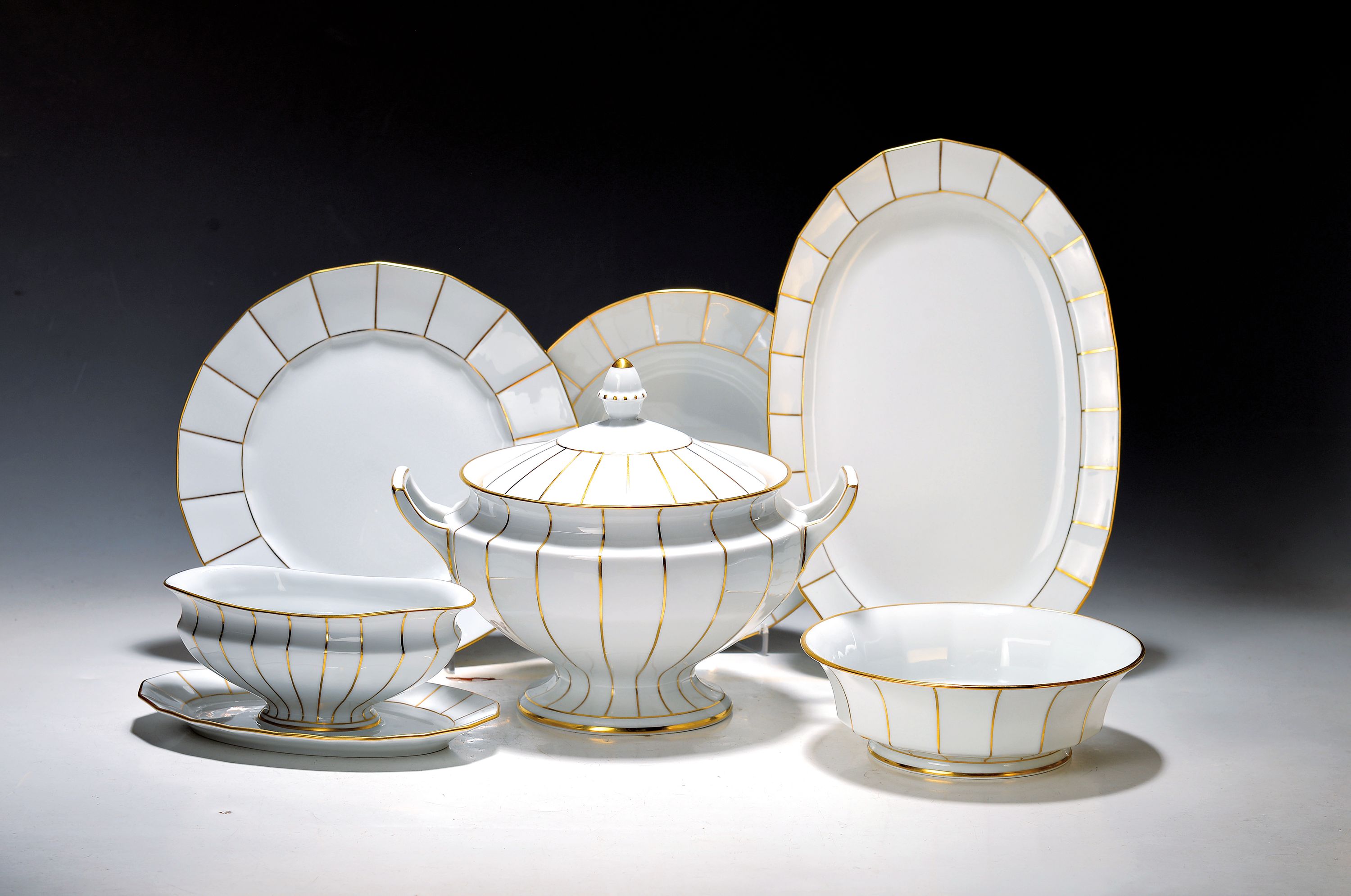 Speiseservice für 12 Personen, Form Greque, Fürstenberg, 20. Jh., Porzellan, reiche