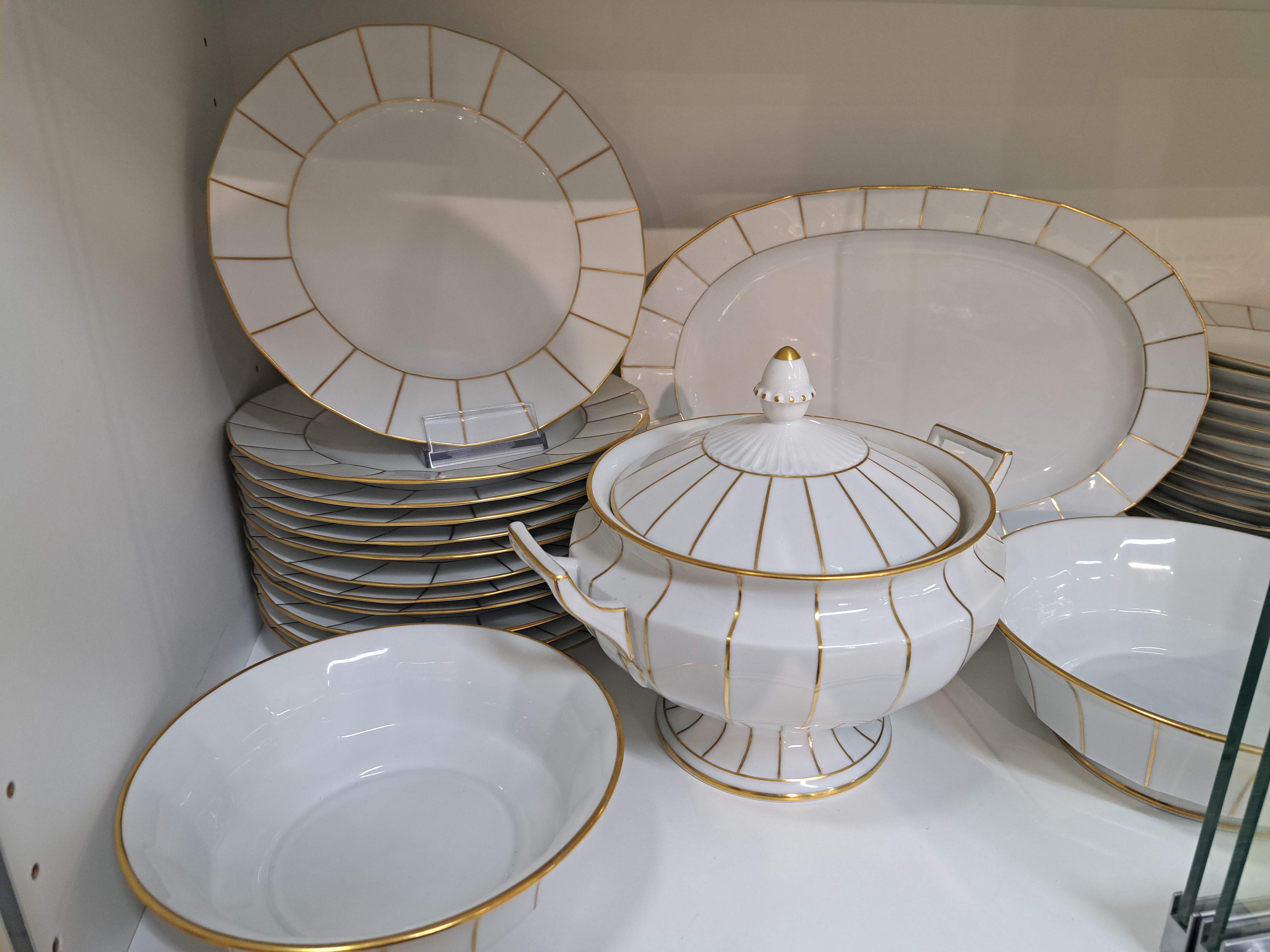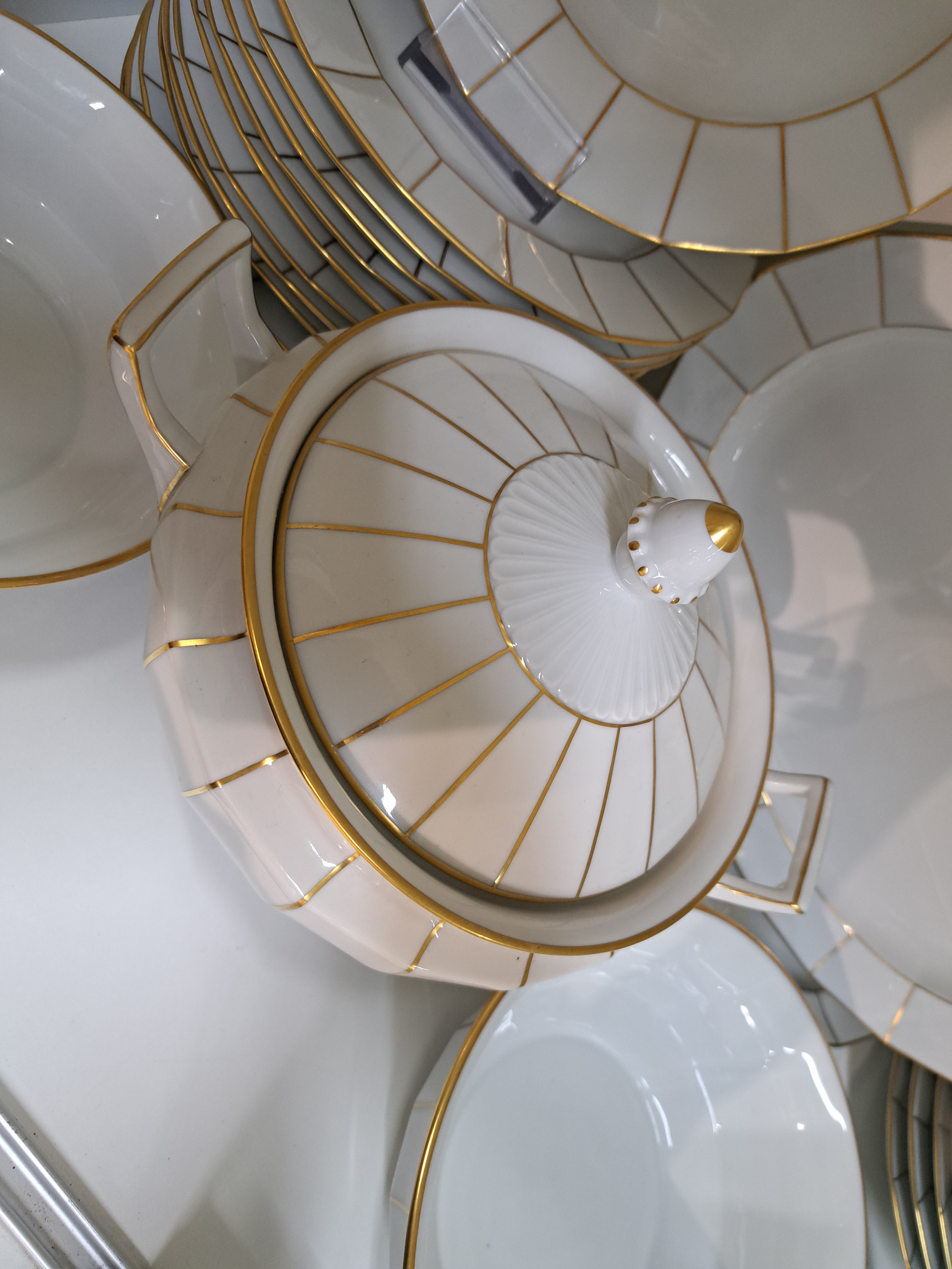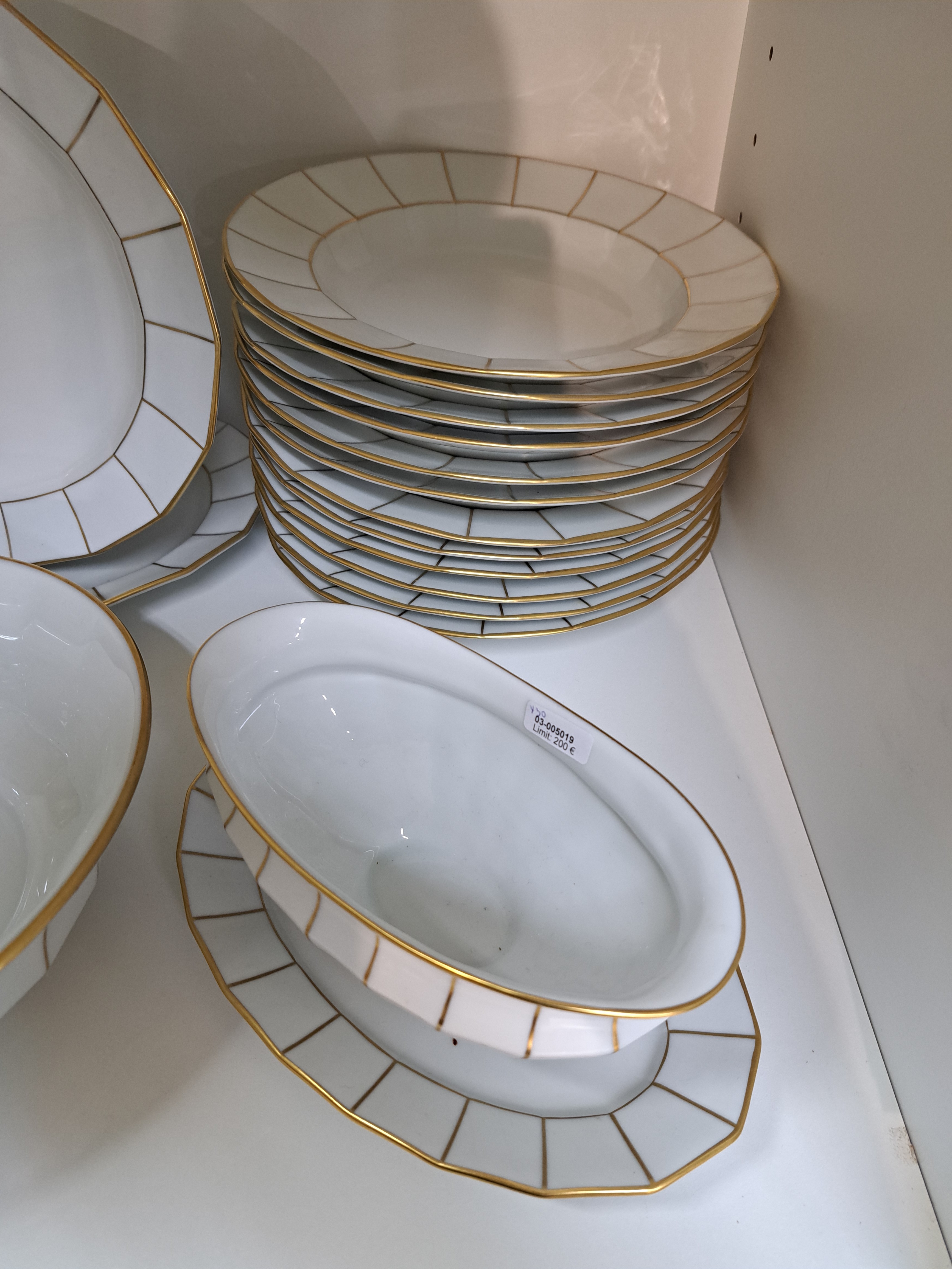 Goldstaffage, 12 flache und 12 tiefe Teller, Sauciere, 2 Beilagenschüsseln, 2 ovale