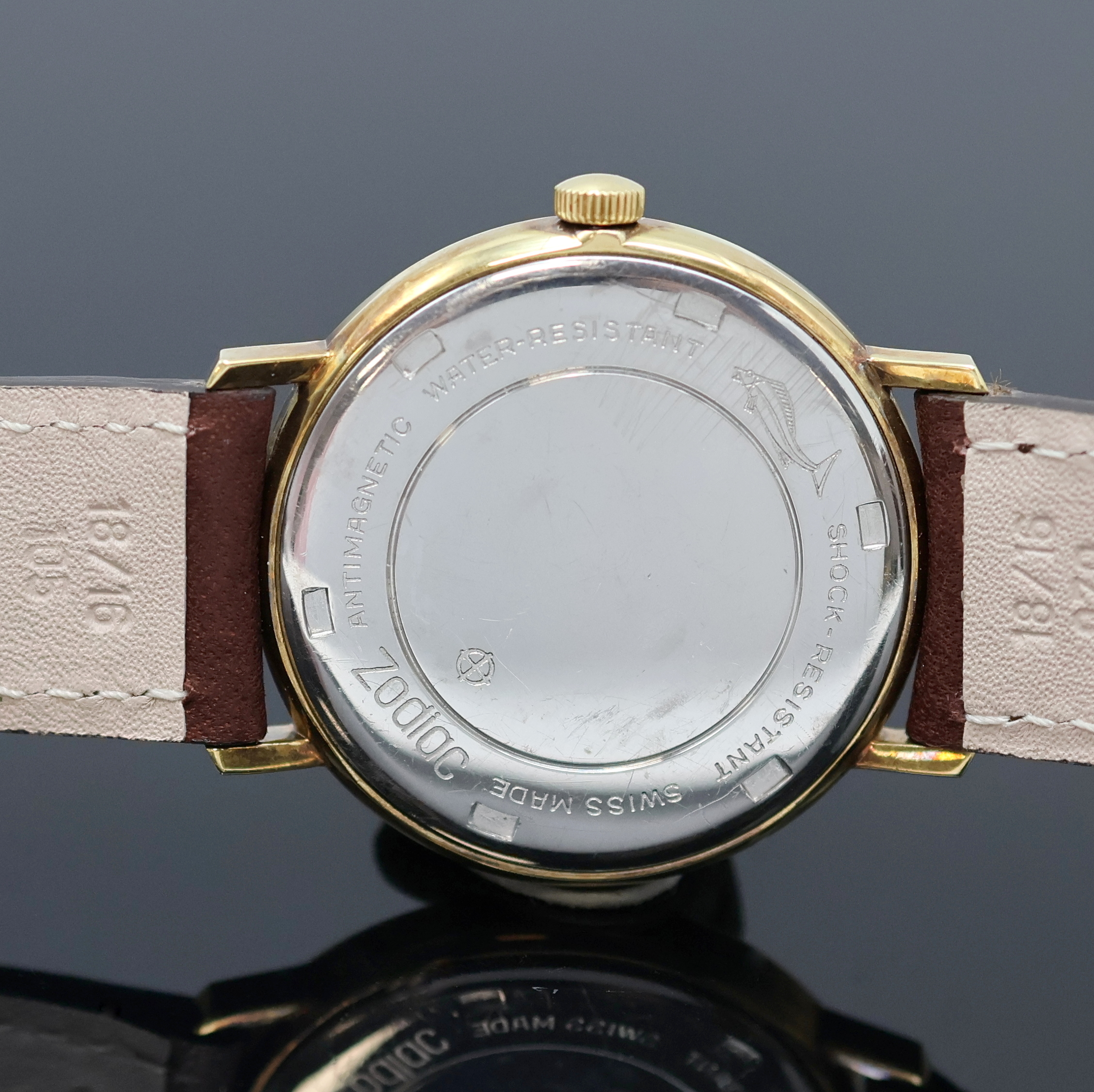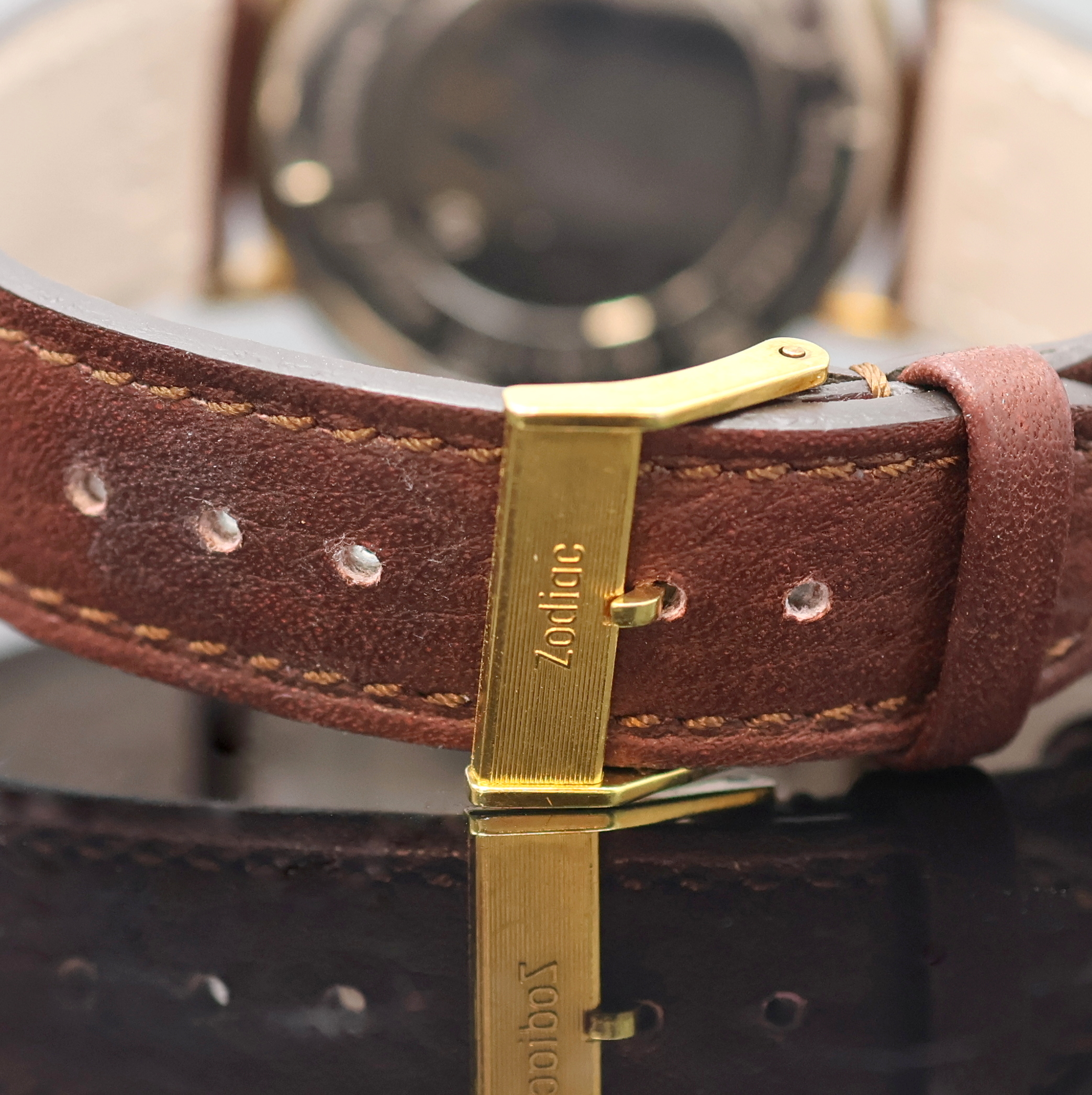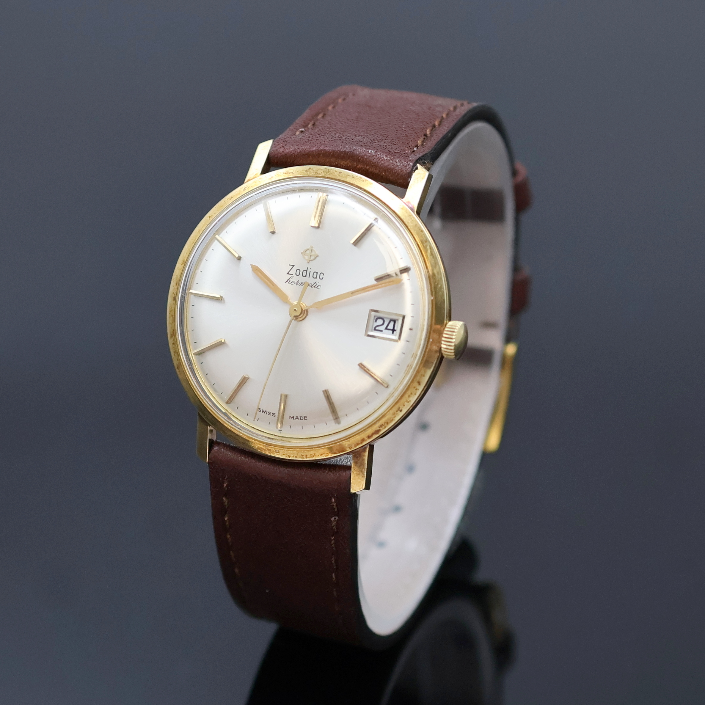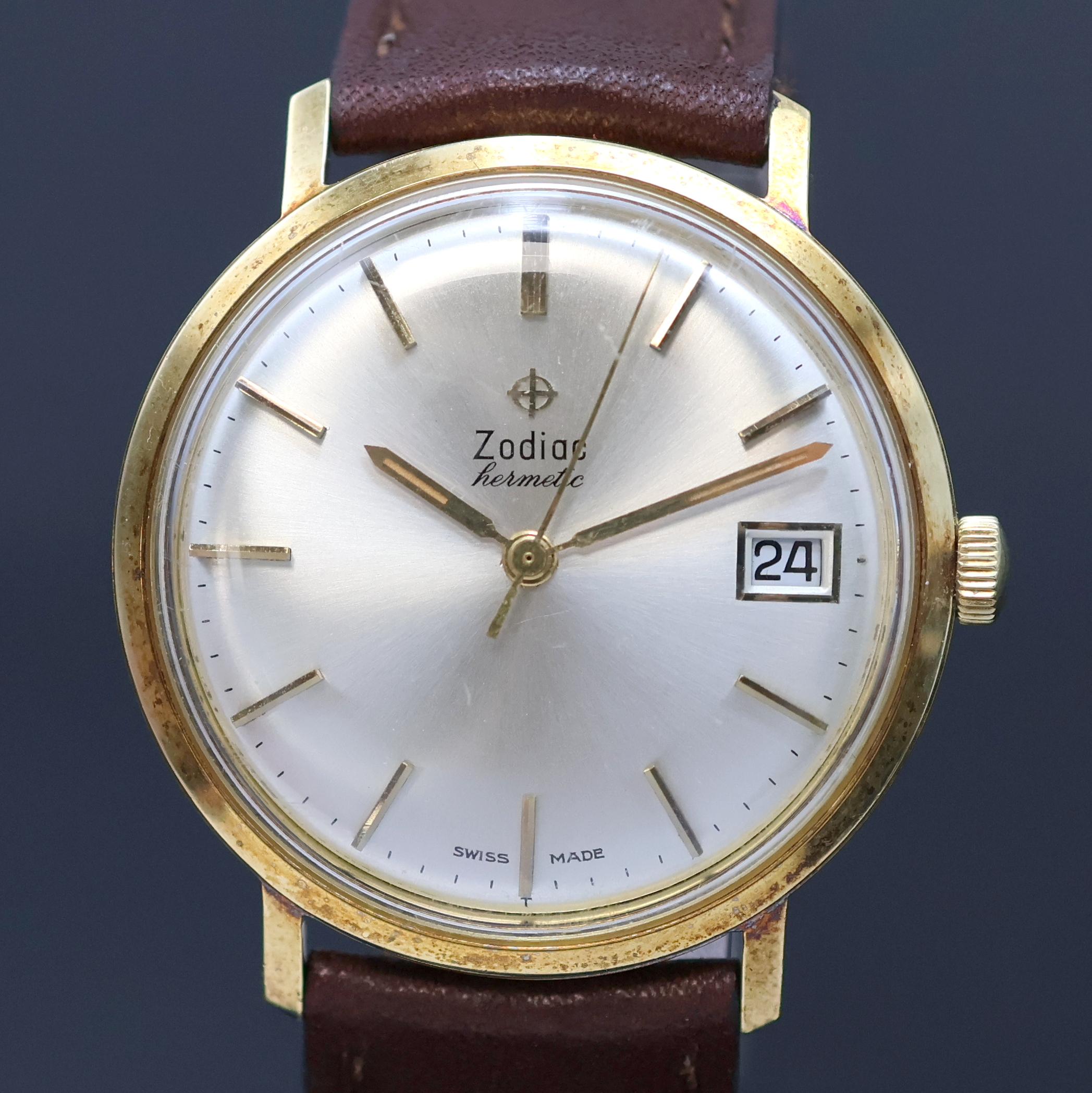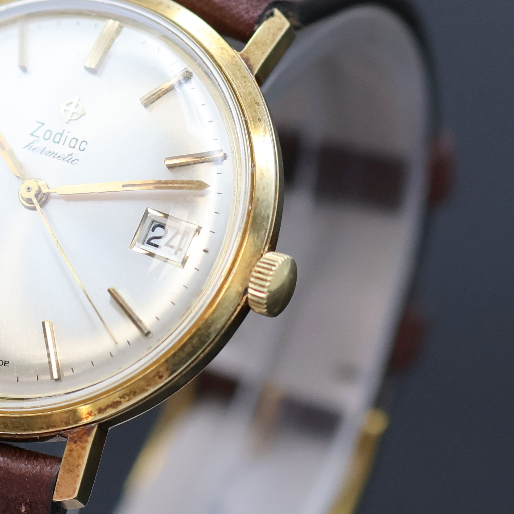 ZODIAC Hermetic vergoldete Armbanduhr, Schweiz um 1960, Handaufzug, neutr. Lederband