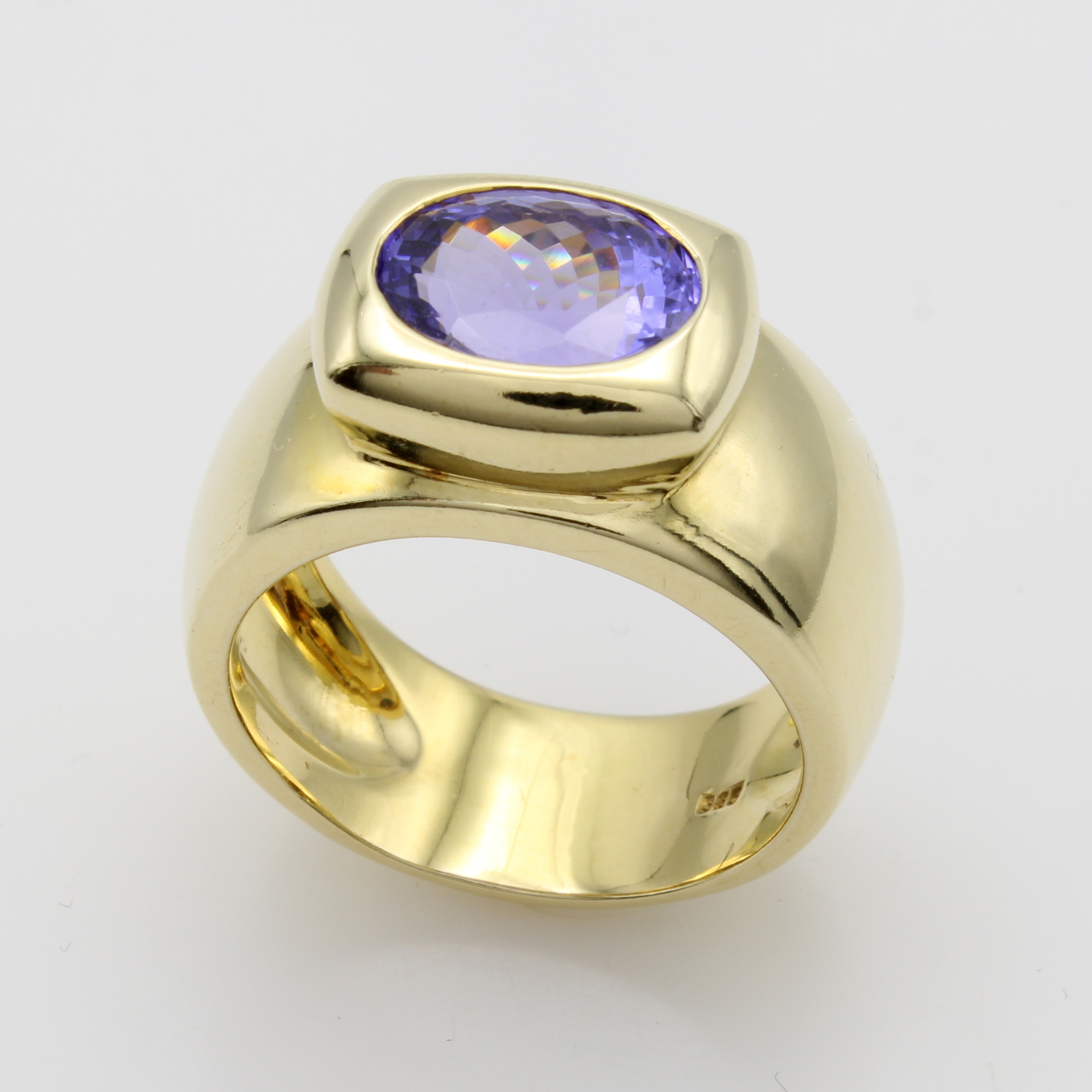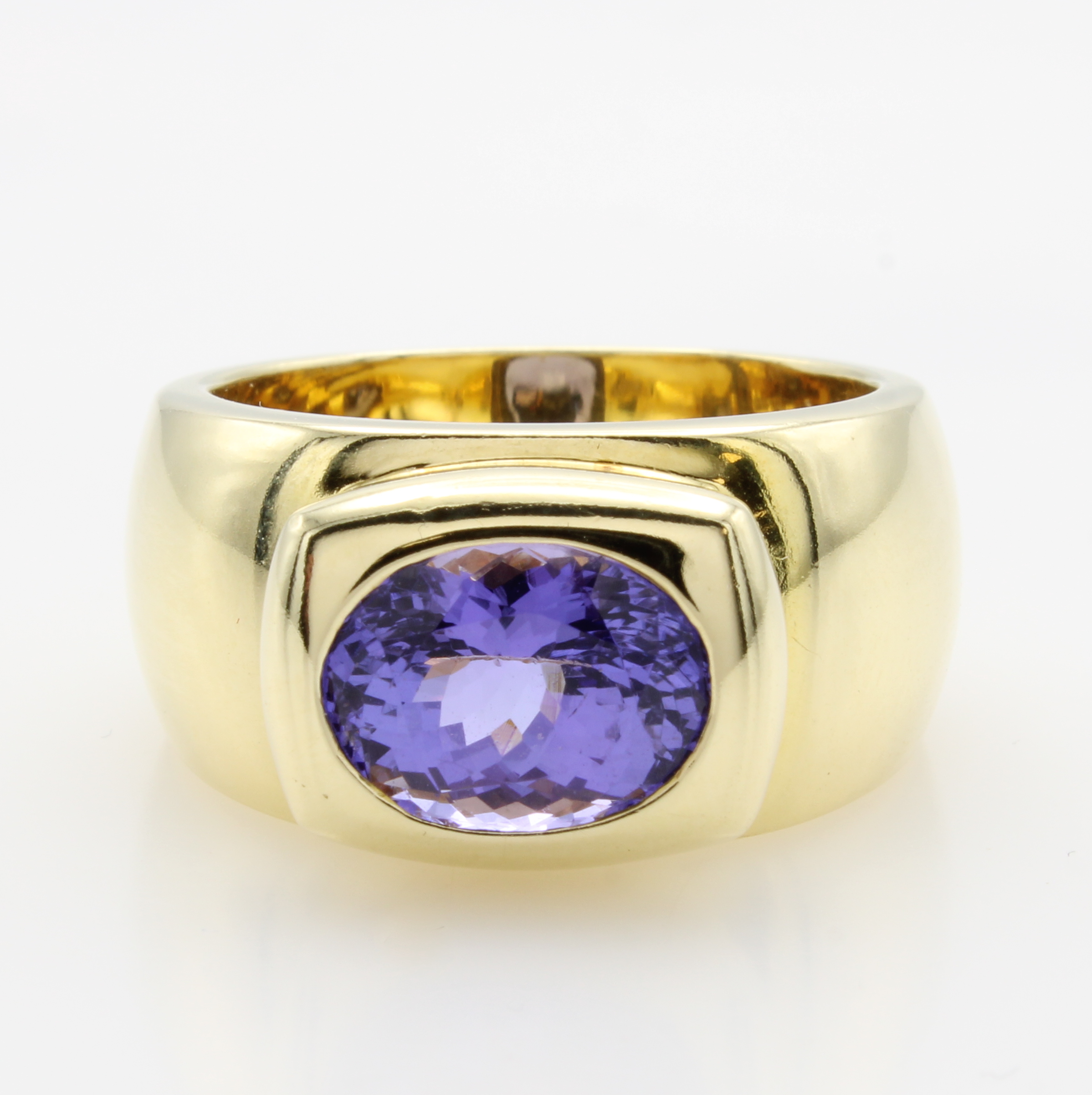 Ring mit Tansanit, GG 585/000, ovaler Tansanit in rechteckiger Fassung ca. 4.45 ct, RW ca. 59 Schätzpreis: 7620, - EUR