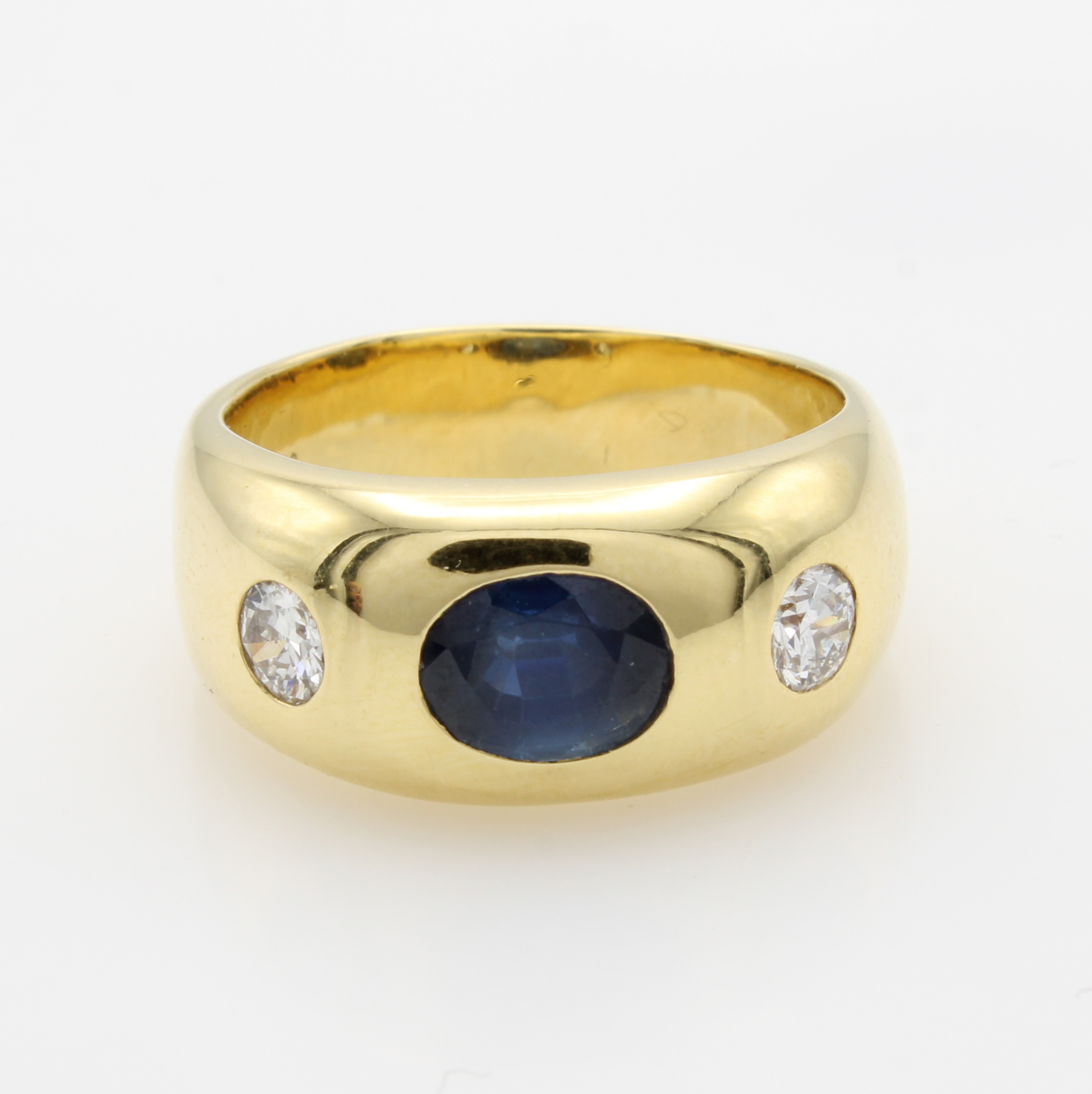 Bandring mit Saphir und Brillanten, GG 750/ 000, ovaler, facett. Saphir ca. 2.34 ct, 2 Brill. zus. ca. 0.26 ct get./p, RW ca. 59 Schätzpreis: 8900, - EUR
