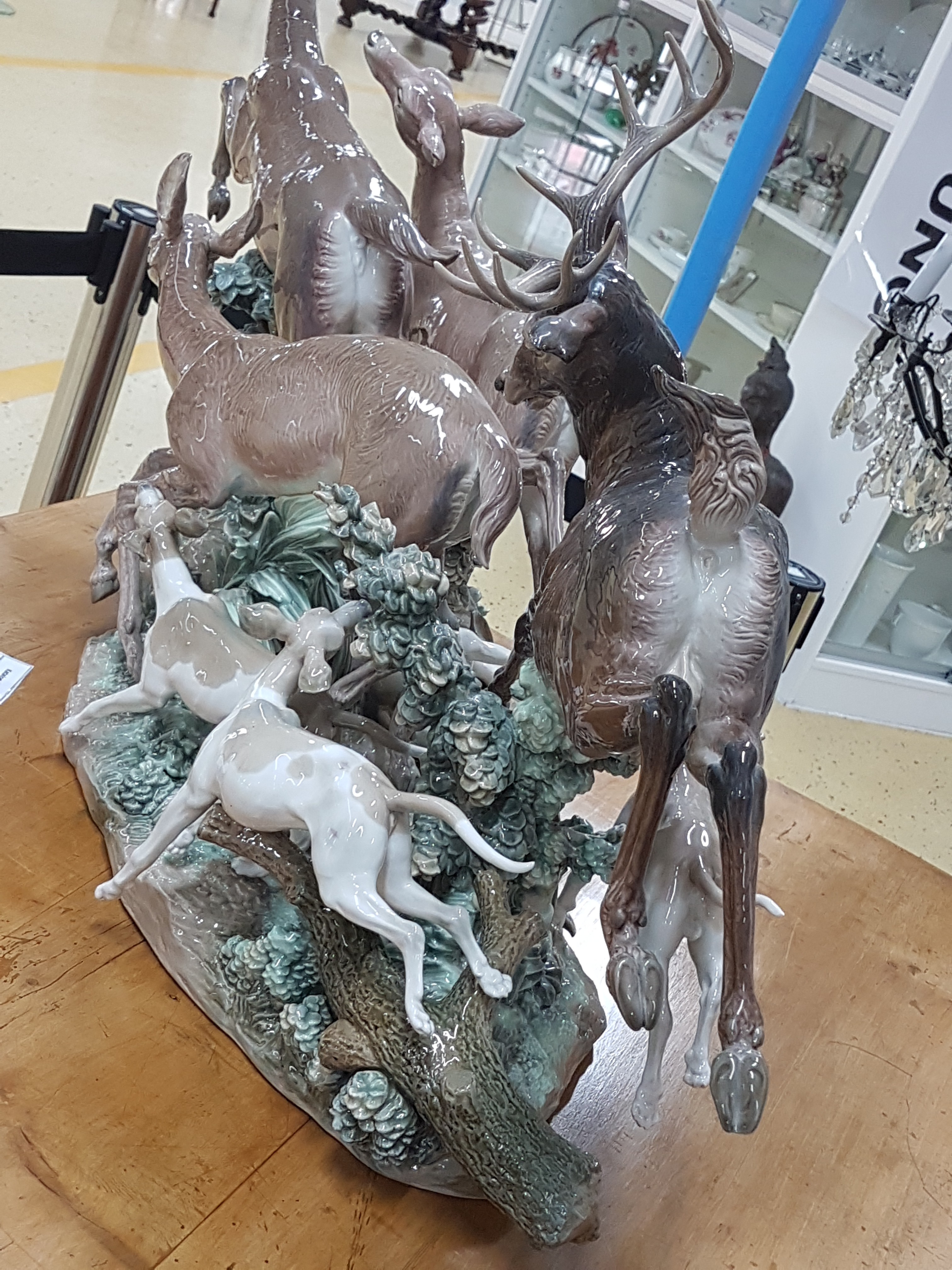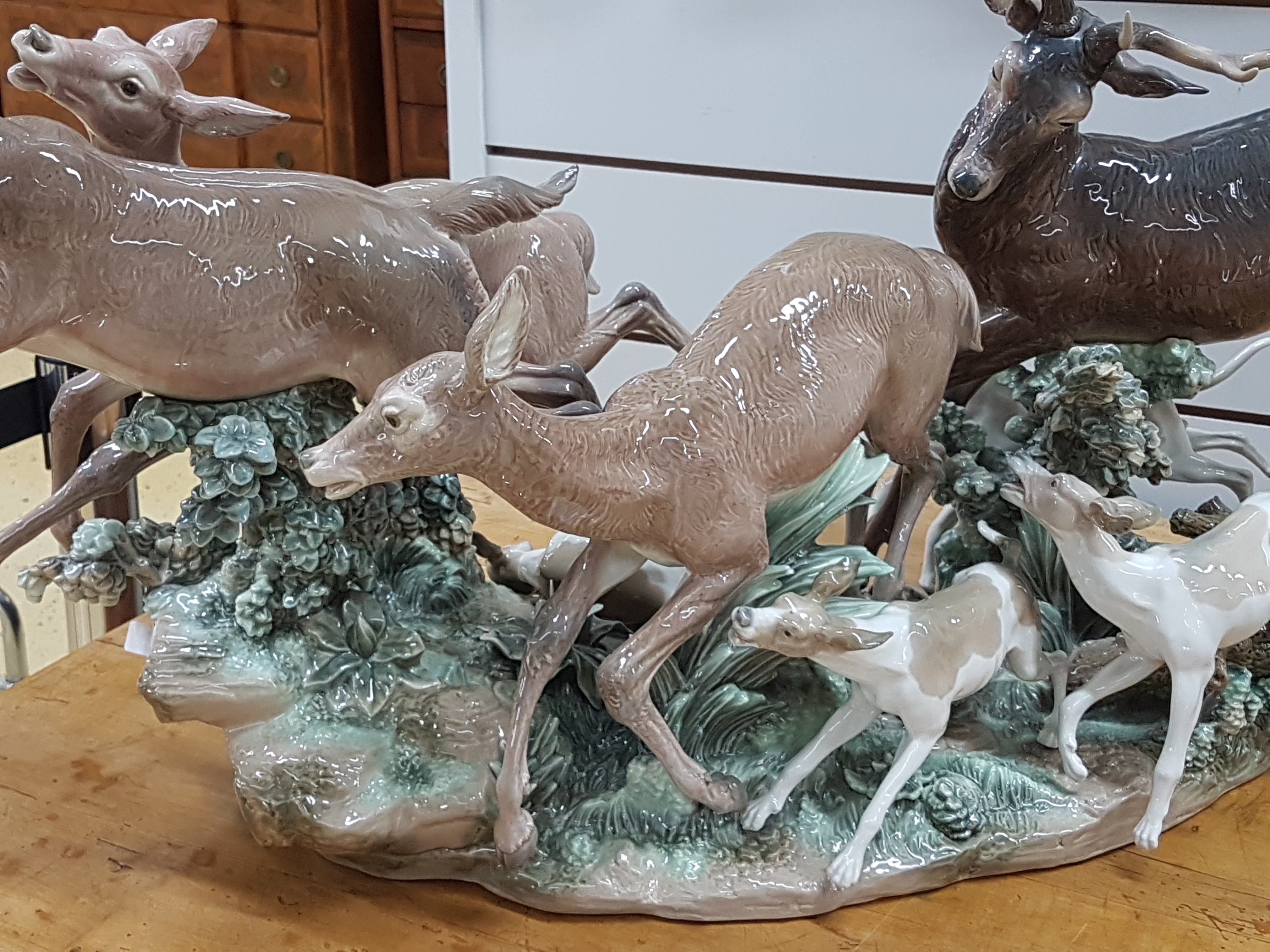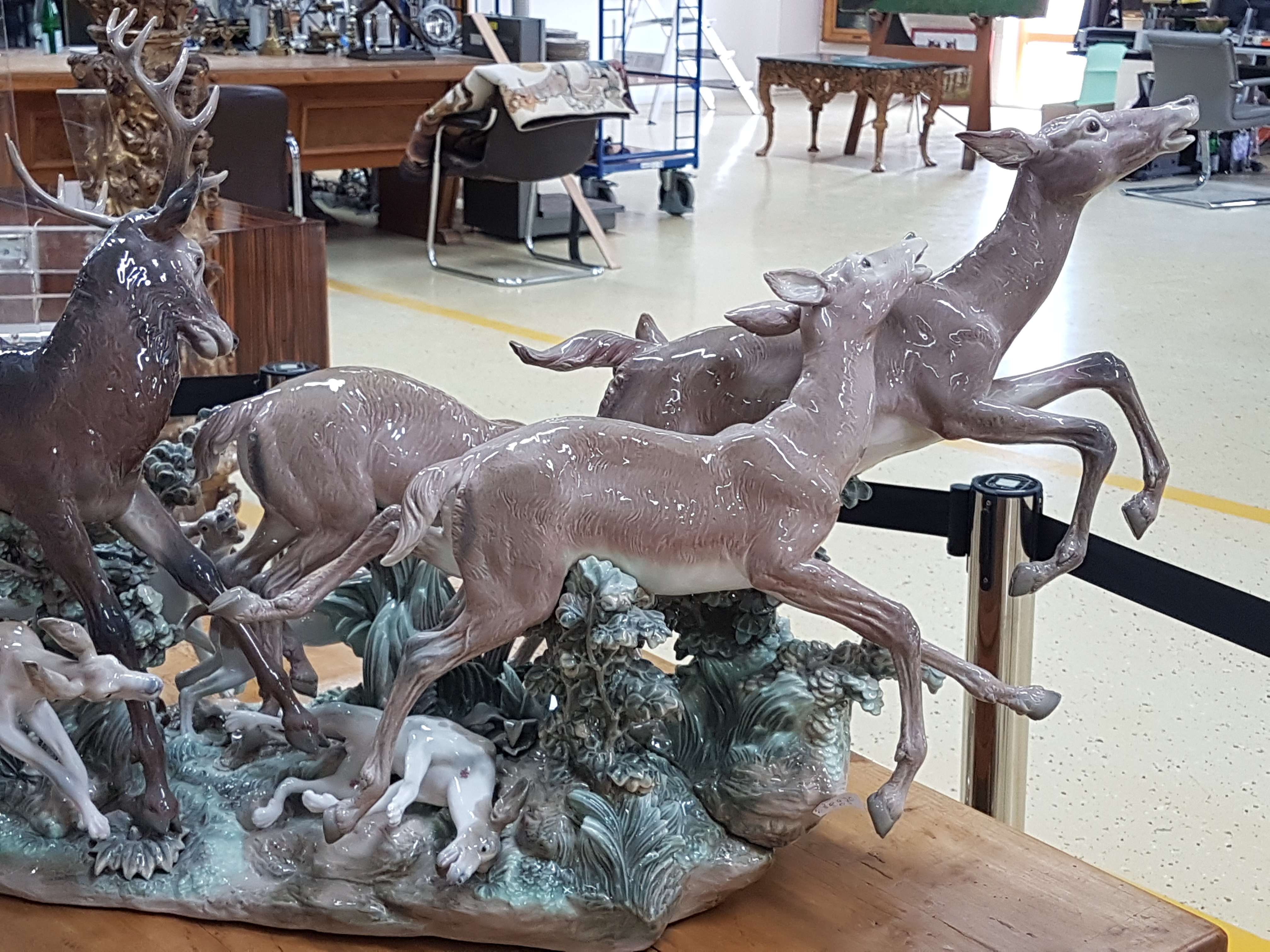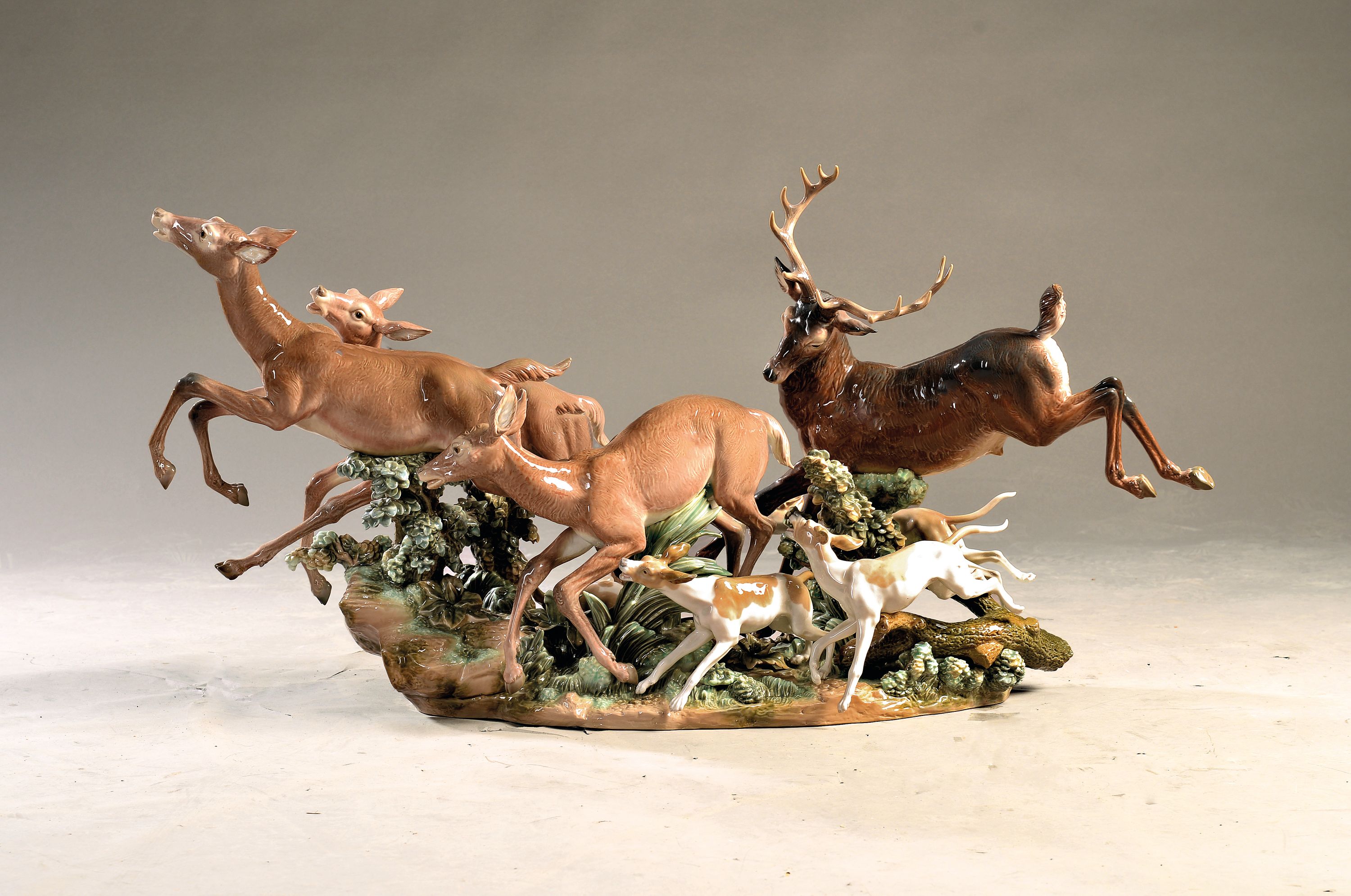 No. 68 von 750 Exemplaren, vollplastisch gearbeitet, Hirsch mit 4 Hirschkühen, gejagt