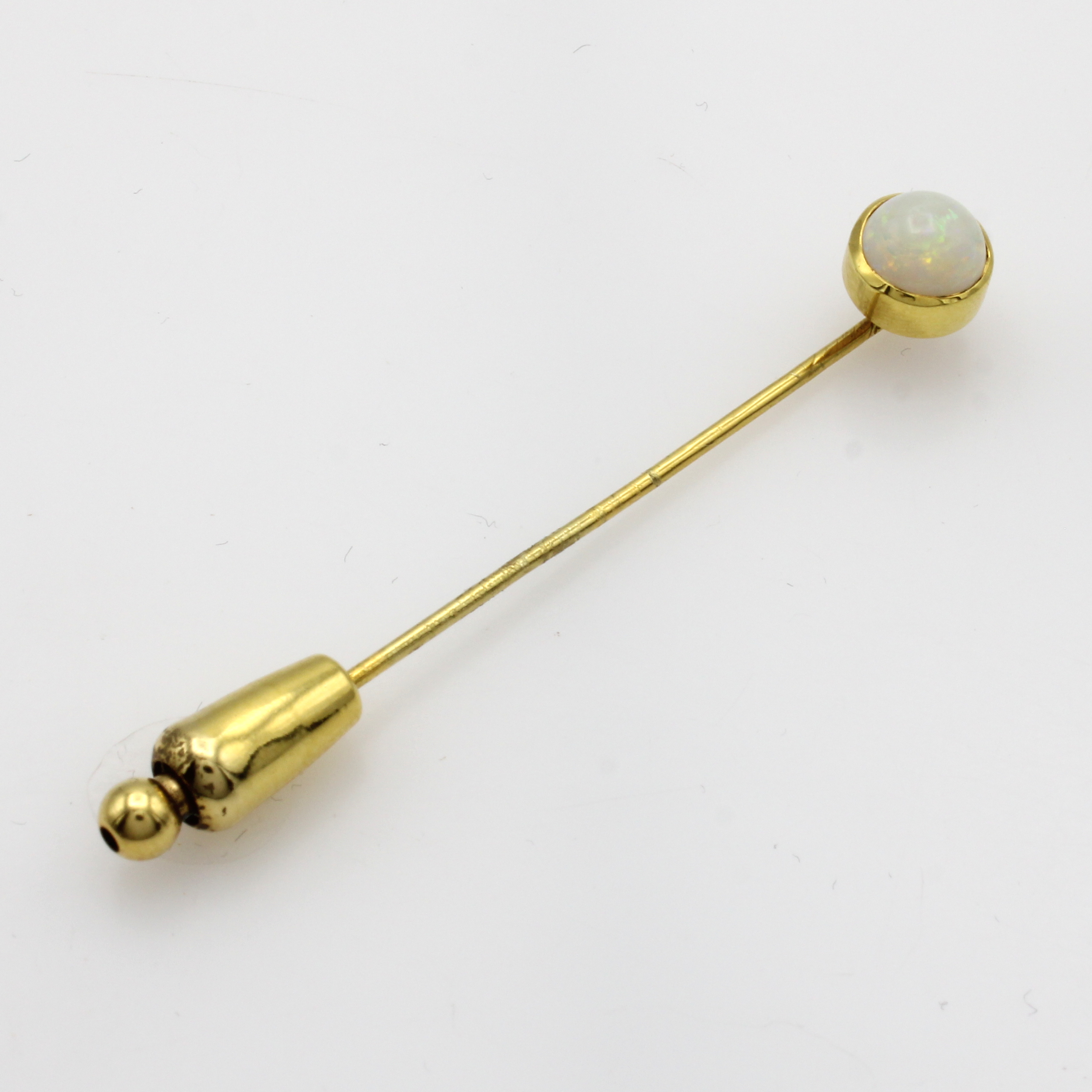 Krawattennadel mit Opal, GG 585/000, Opal ca. 0.5 ct, Schließe verg. Schätzpreis: 1150, - EUR