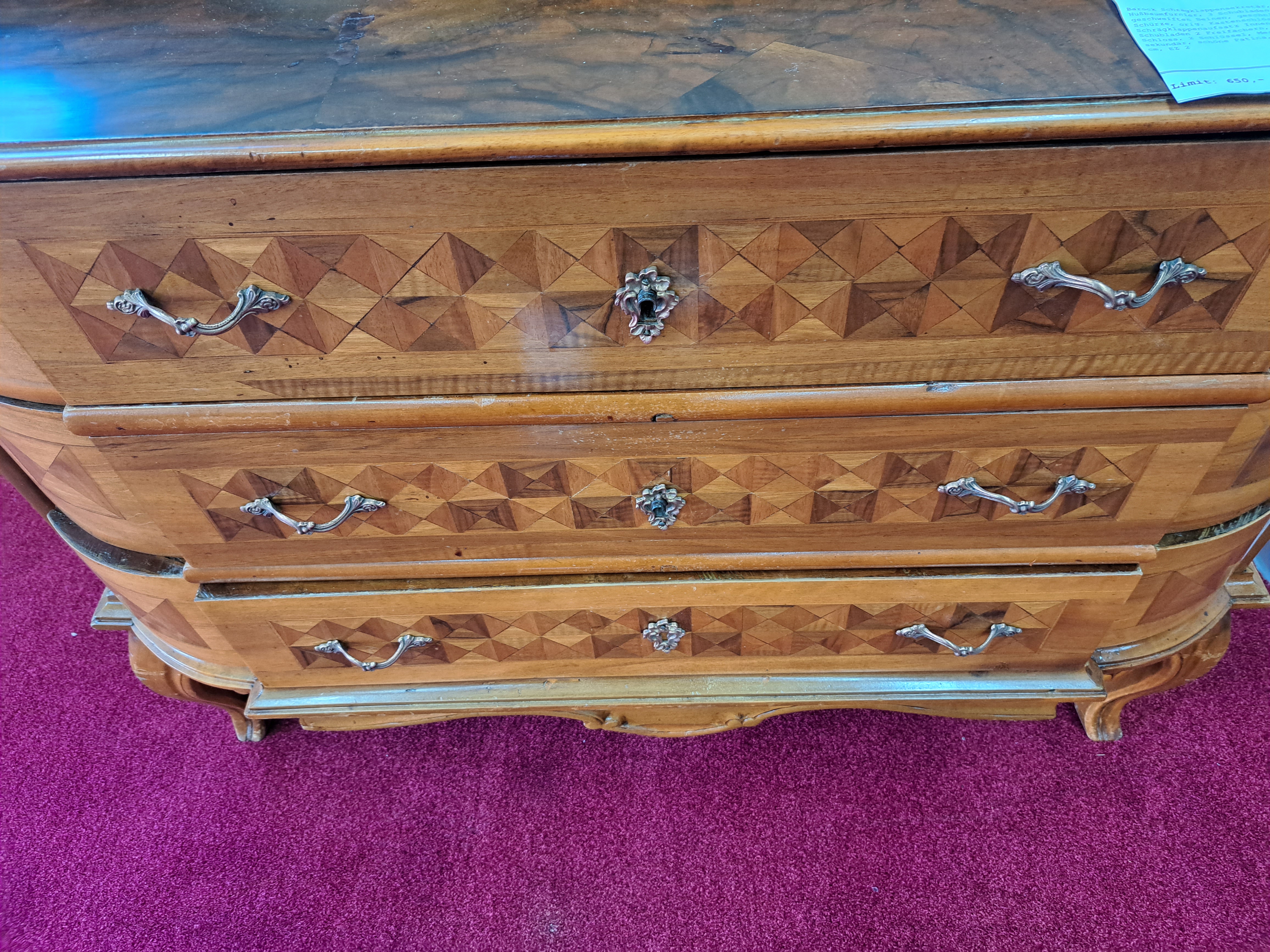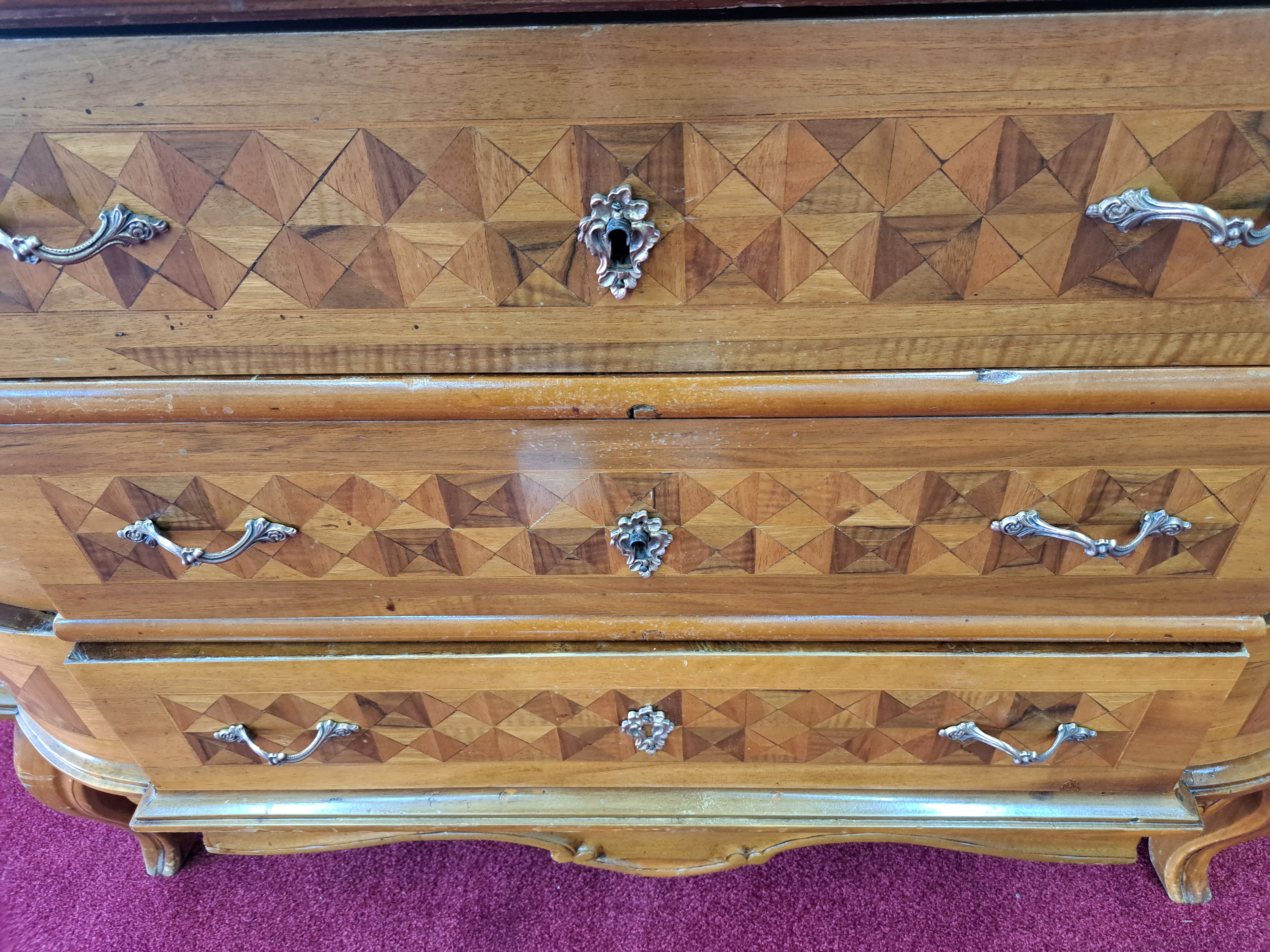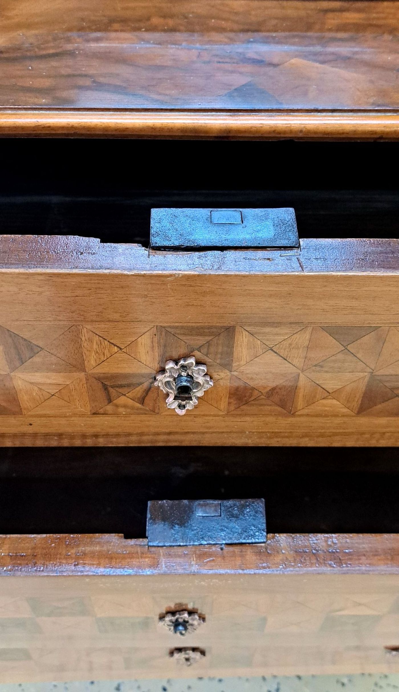 mit 4 Schubladen 2 Freifächern, orig. Schloss, 2 Schlüssel, Messingbeschläge sekundär,