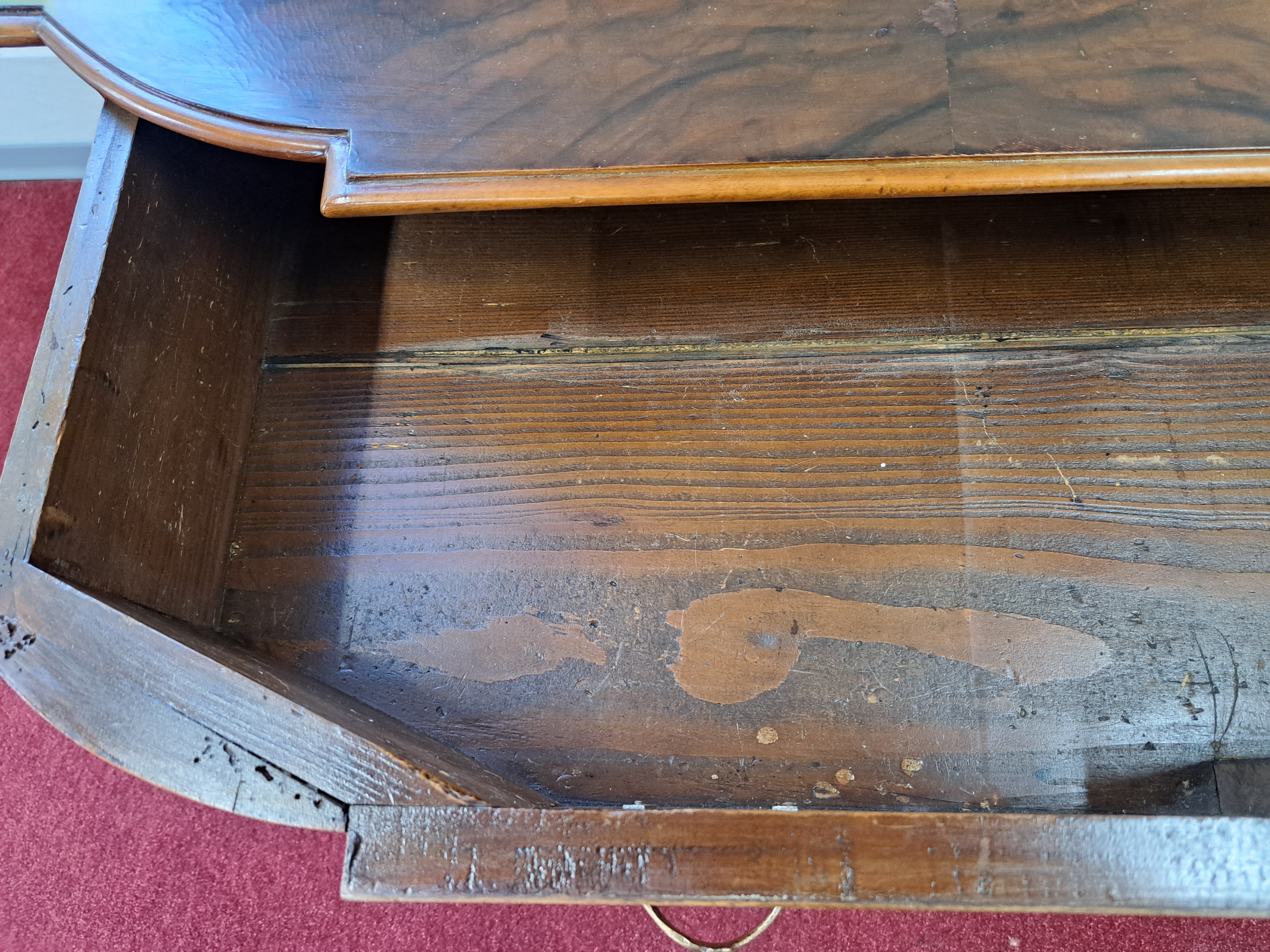 Barock Schrägklappensekretär, 1750/60, Nußbaumfurnier, 3 Schubladen auf geschweiften