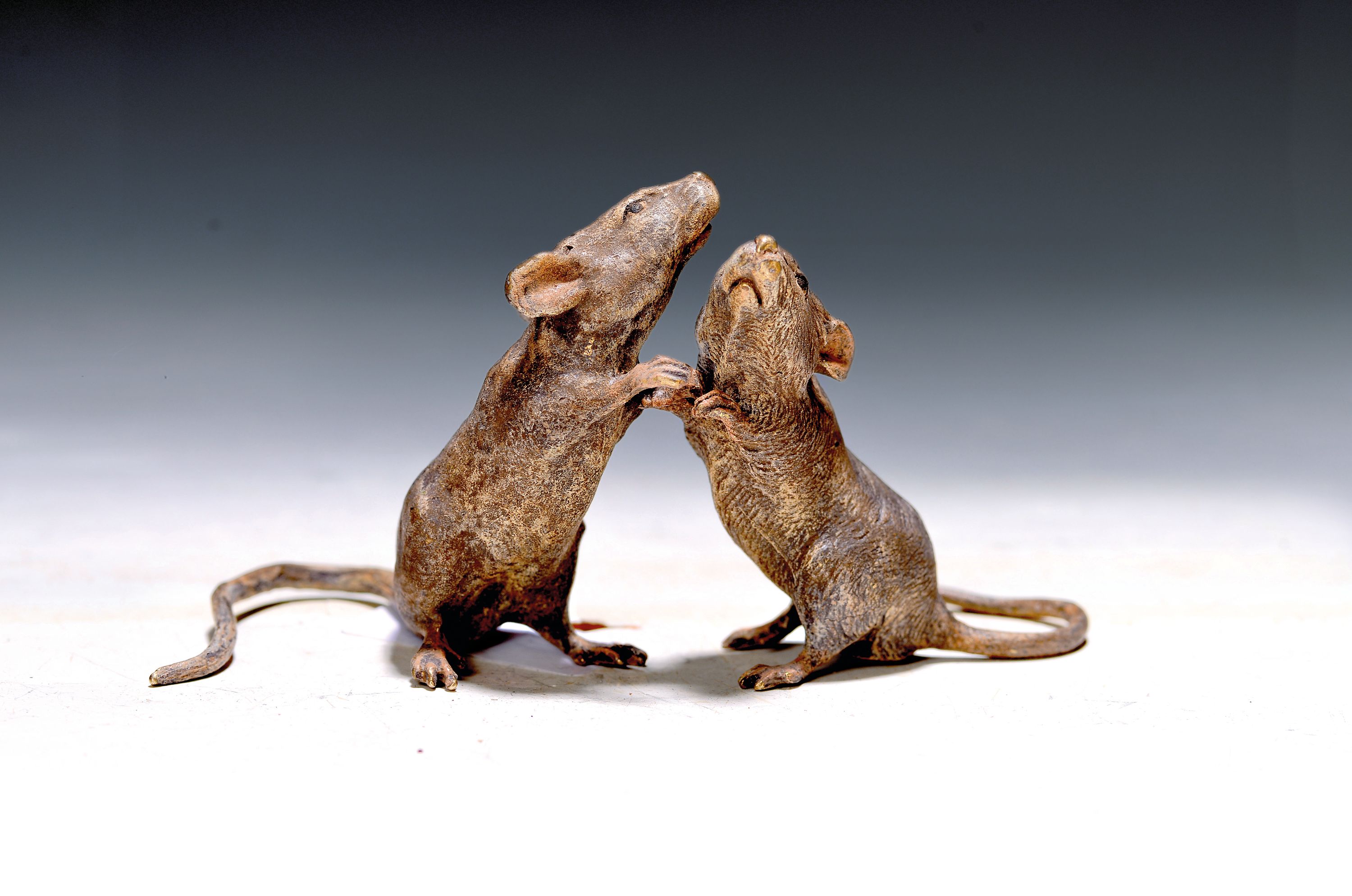 Grosses Rattenpaar, Wiener Bronze, sign. Franz Bergmann, bunt staffiert, ca. 7x12