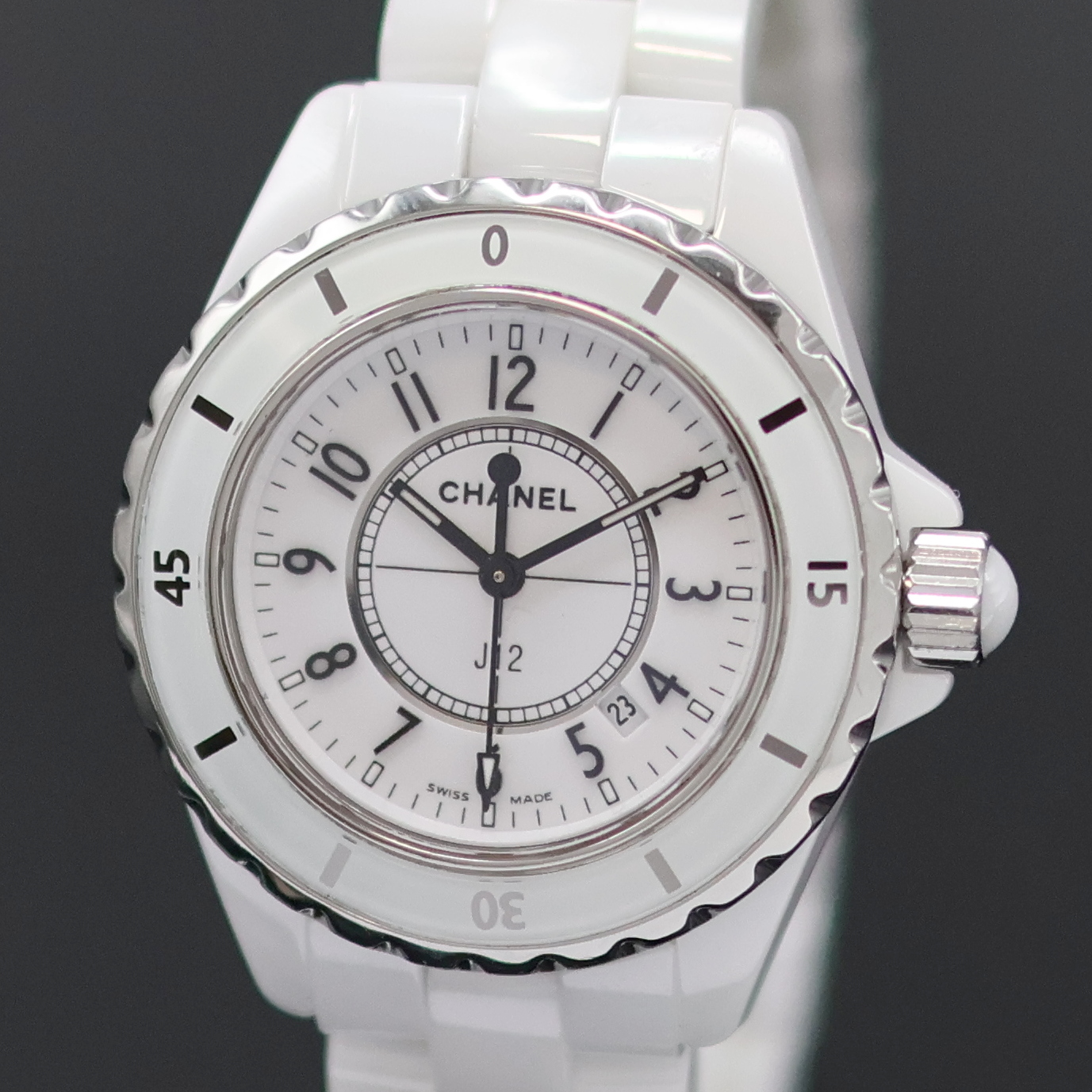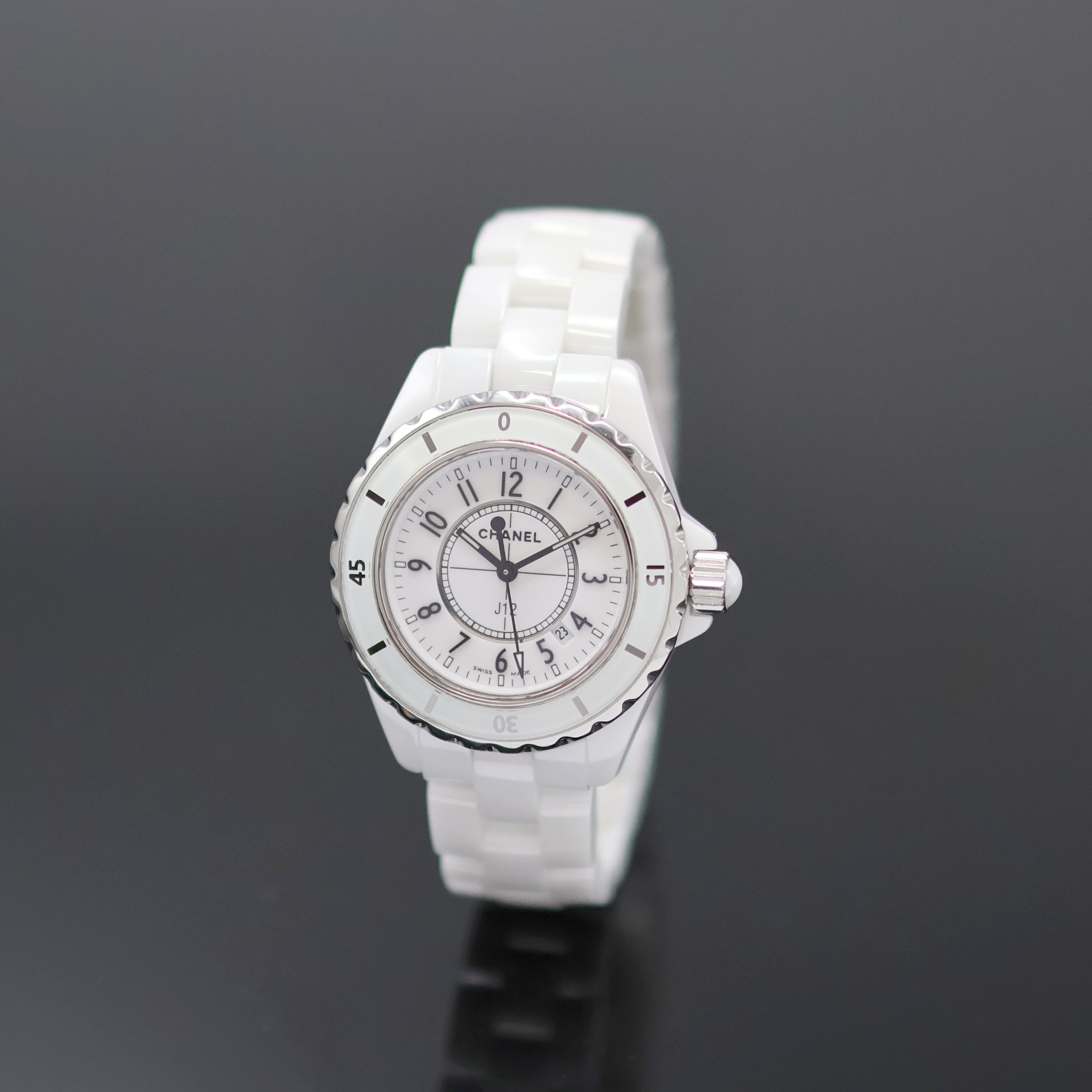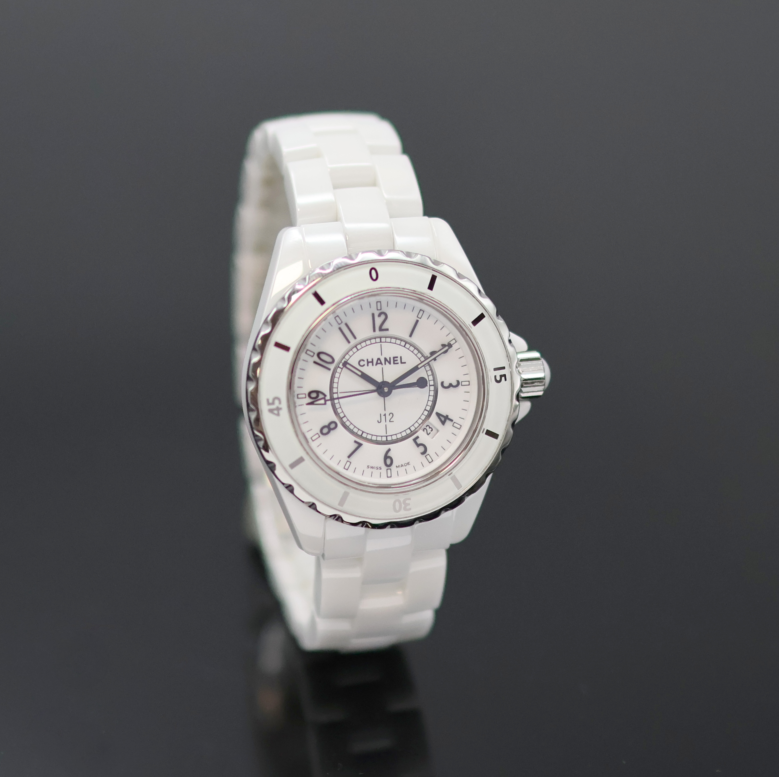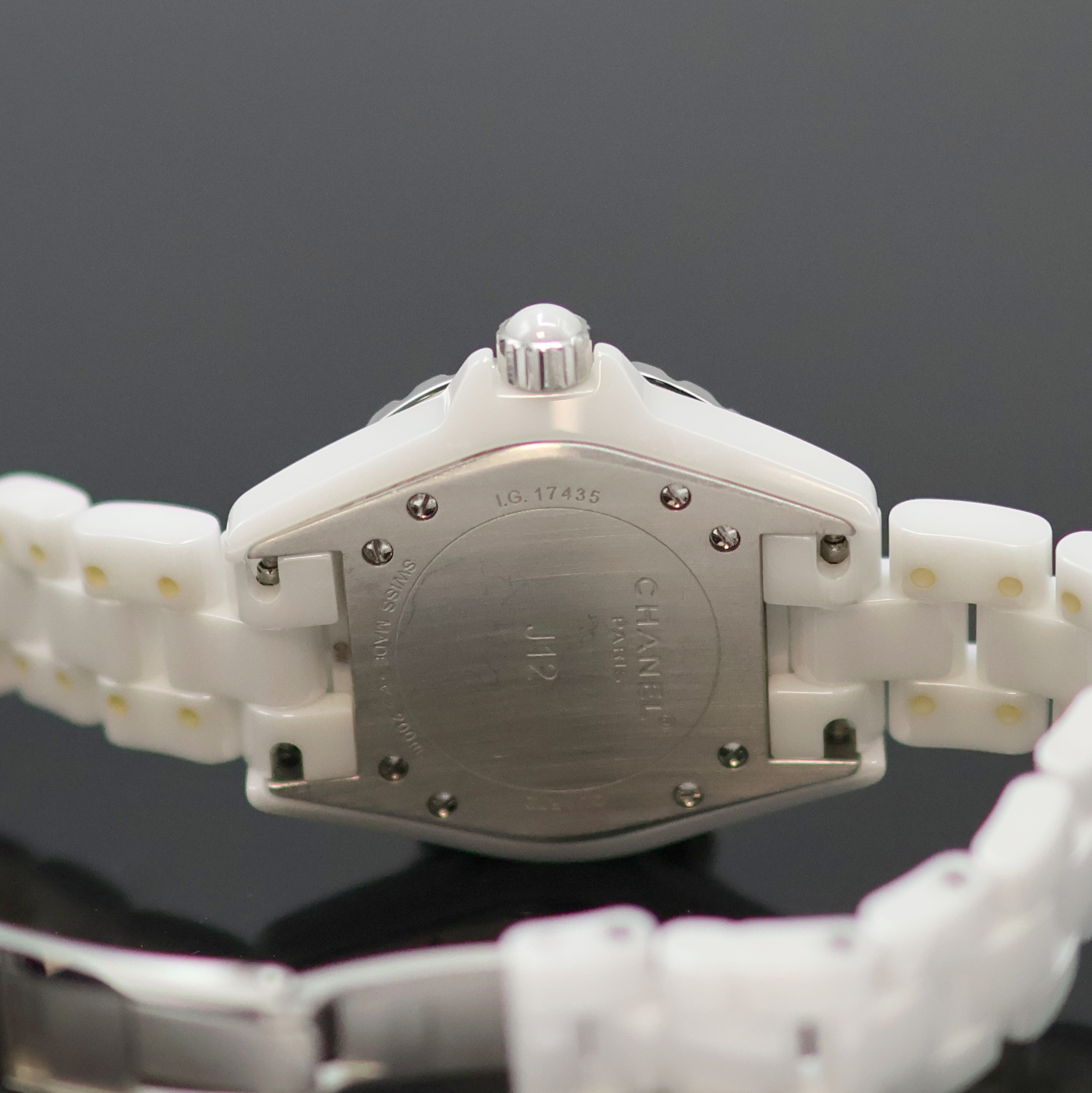 CHANEL J12 Damenarmbanduhr, quarz, weißes Keramikgeh. inkl. Gliederband m. dopp.