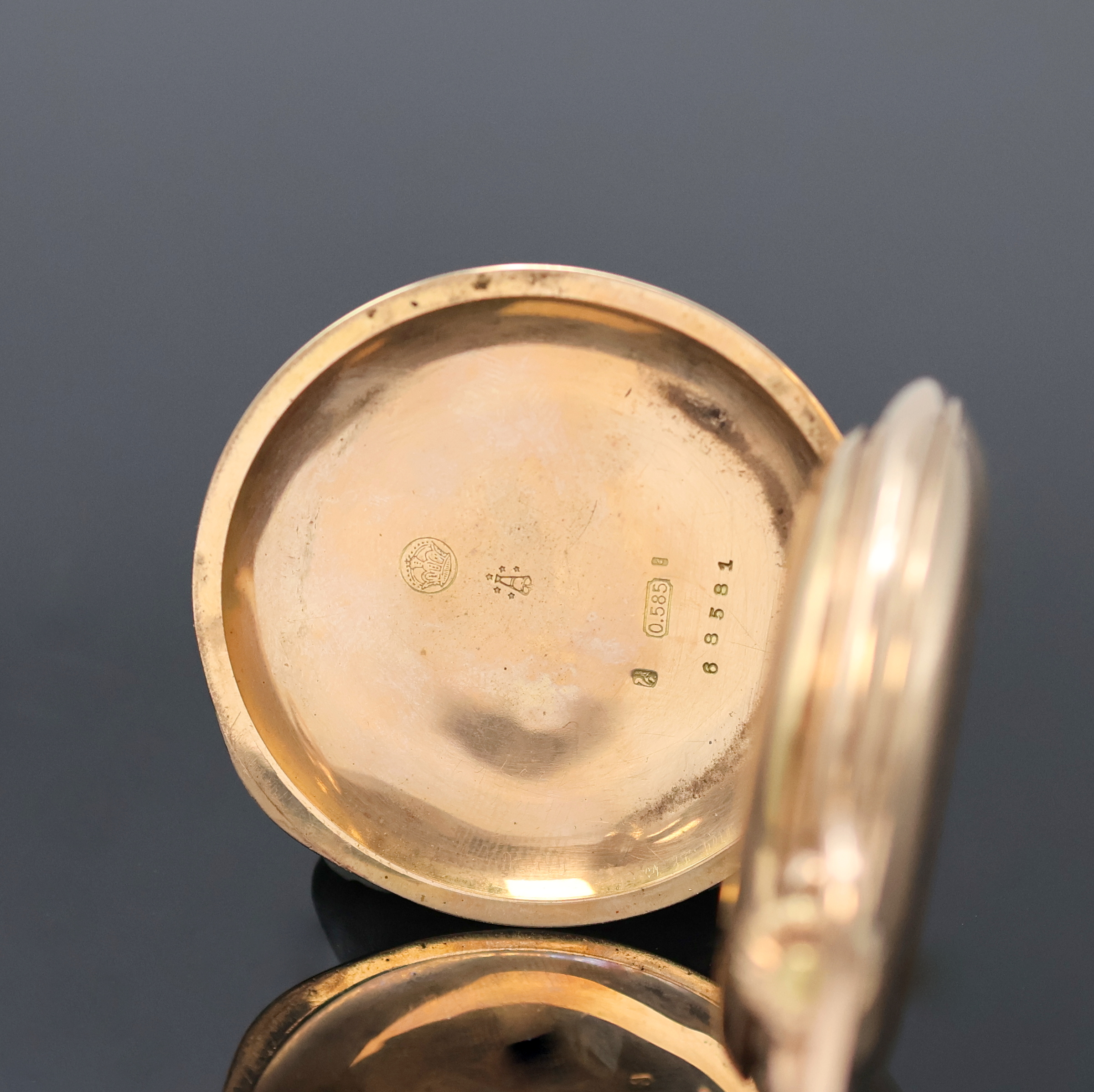 GEBRÜDER ELLINGHAUSEN Berlin / UNION GLOCKE Savonette in RG 585/000, Schweiz um