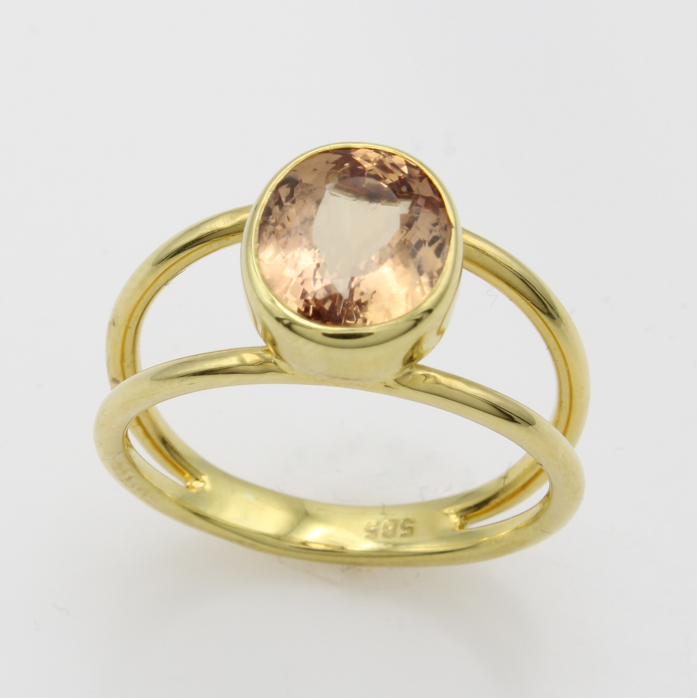Ring mit Topas, GG 585/000, ovaler, rosa- brauner Topas ca. 3.4 ct, 2-rhg. Schiene, RW 57 Schätzpreis: 1780, - EUR