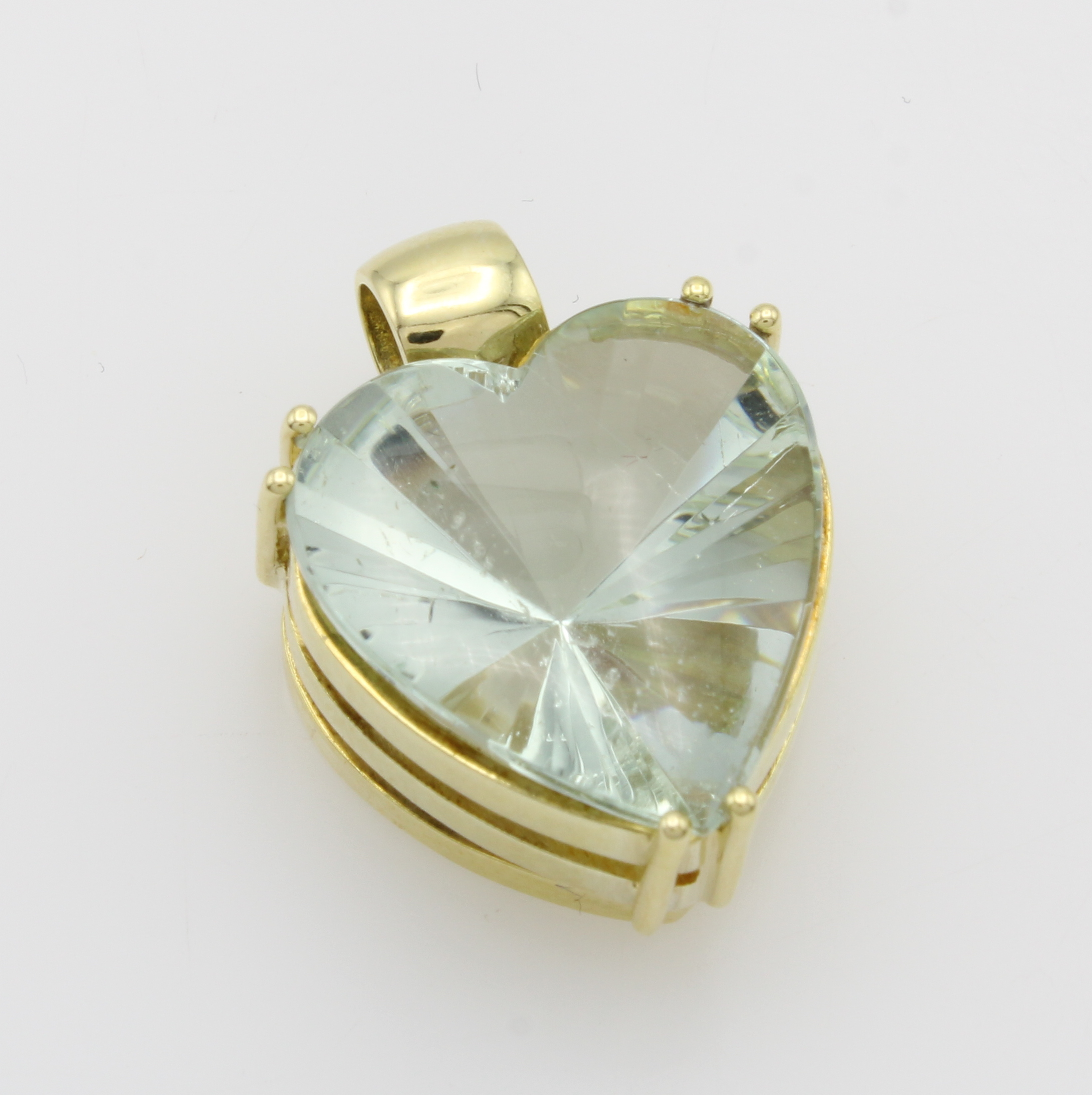 Anhänger mit Beryll, GG 585/000, herzf., blau-grüner Beryll im Buff-Top ca. 12.6 ct Schätzpreis: 2700, - EUR