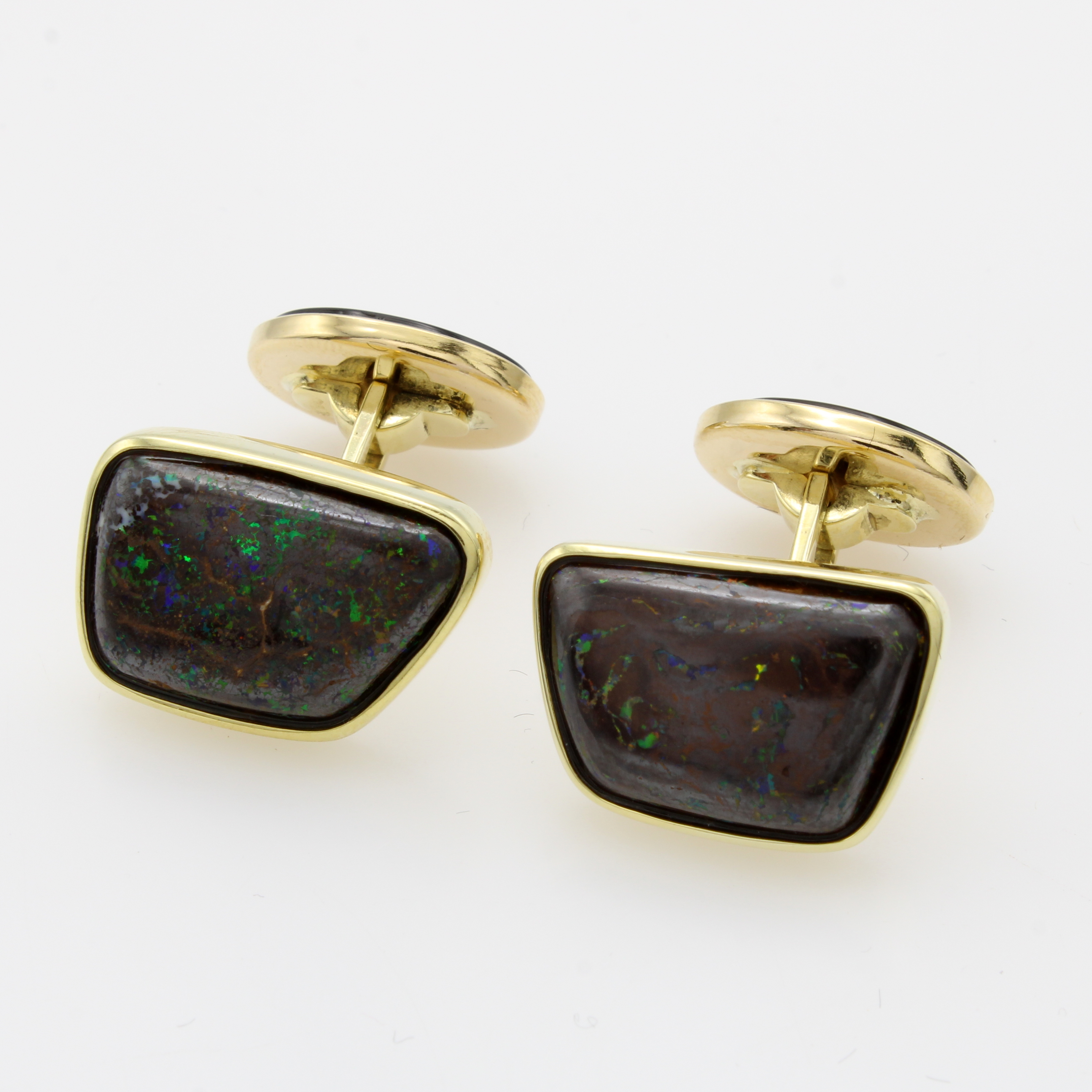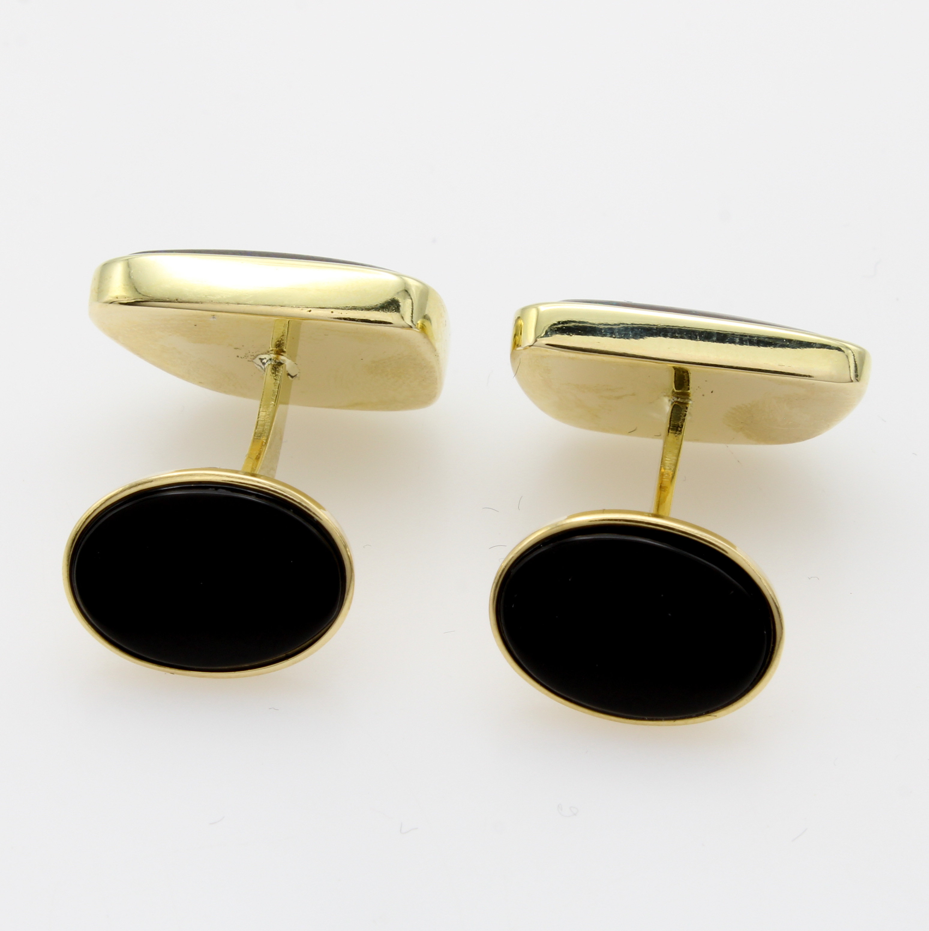 Paar Manschettenknöpfe mit Opalen und Onyxen, GG 585/000, 2 Opale zus. ca. 18 ct, 2 ovale Onyxe Schätzpreis: 4980, - EUR