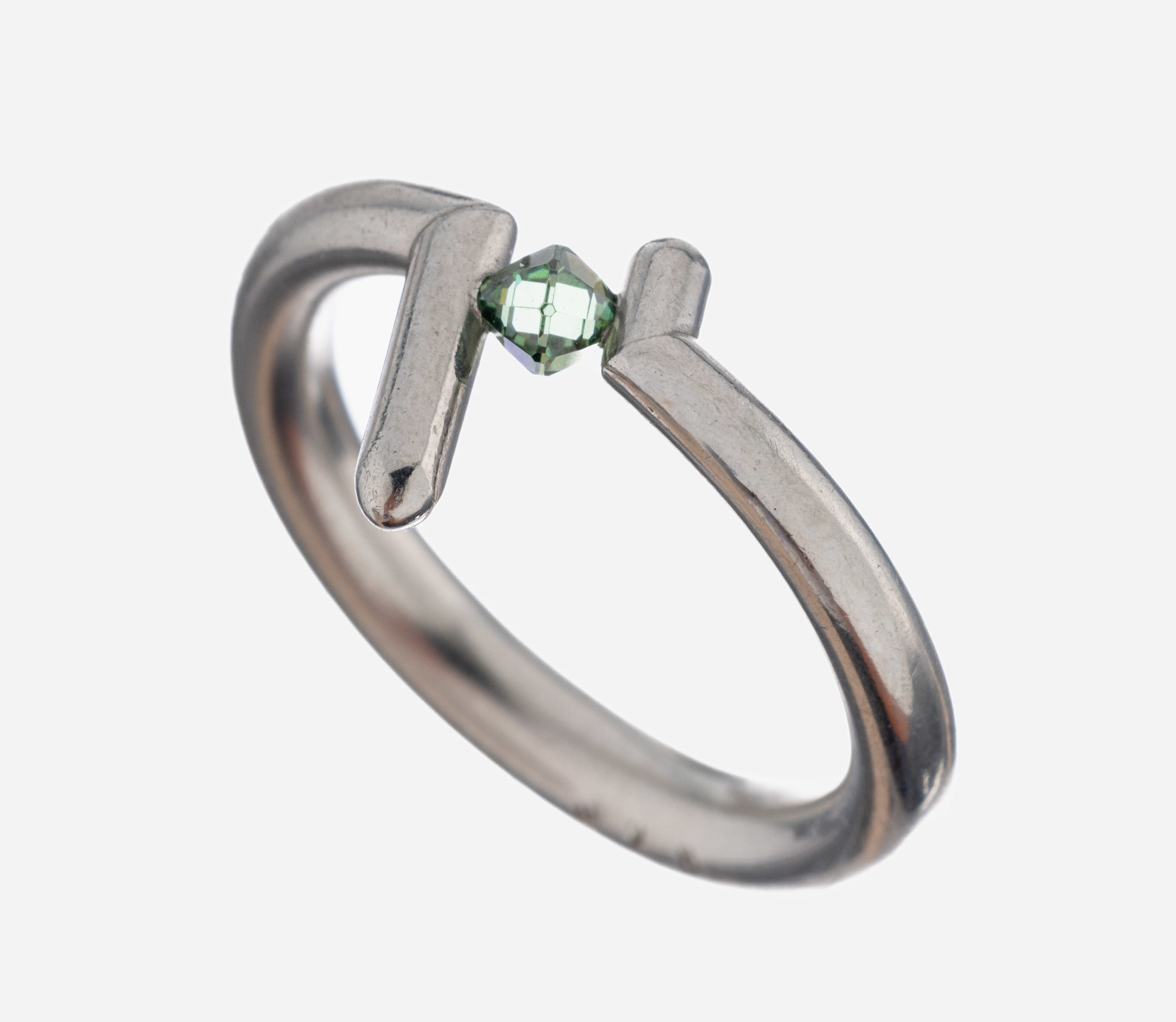 Platin Diamant-Ring, facett. blauer Diamant(beh.), RW 55, ca. 9.6 g, lt. Einlieferer Einzelanfertigung