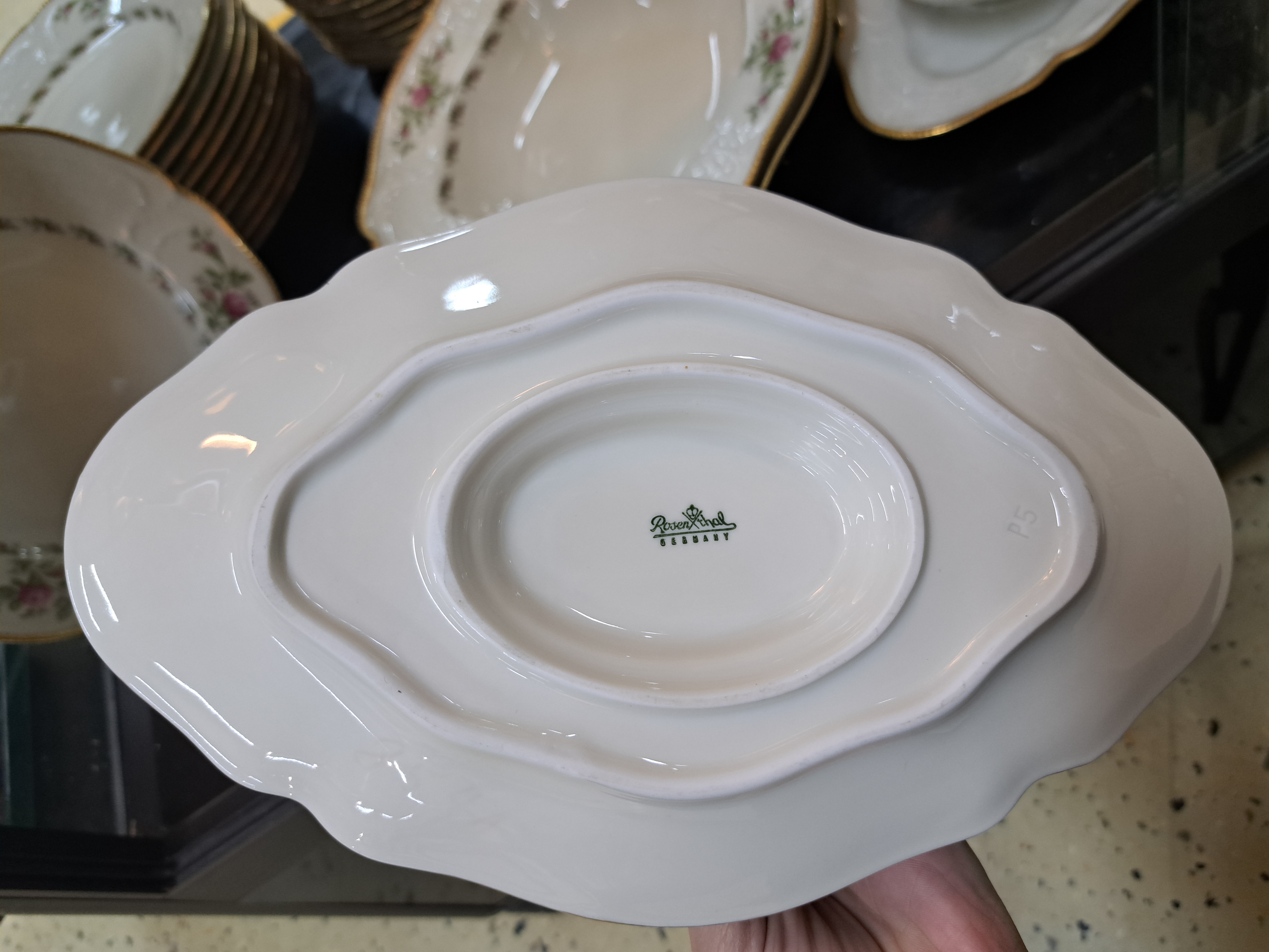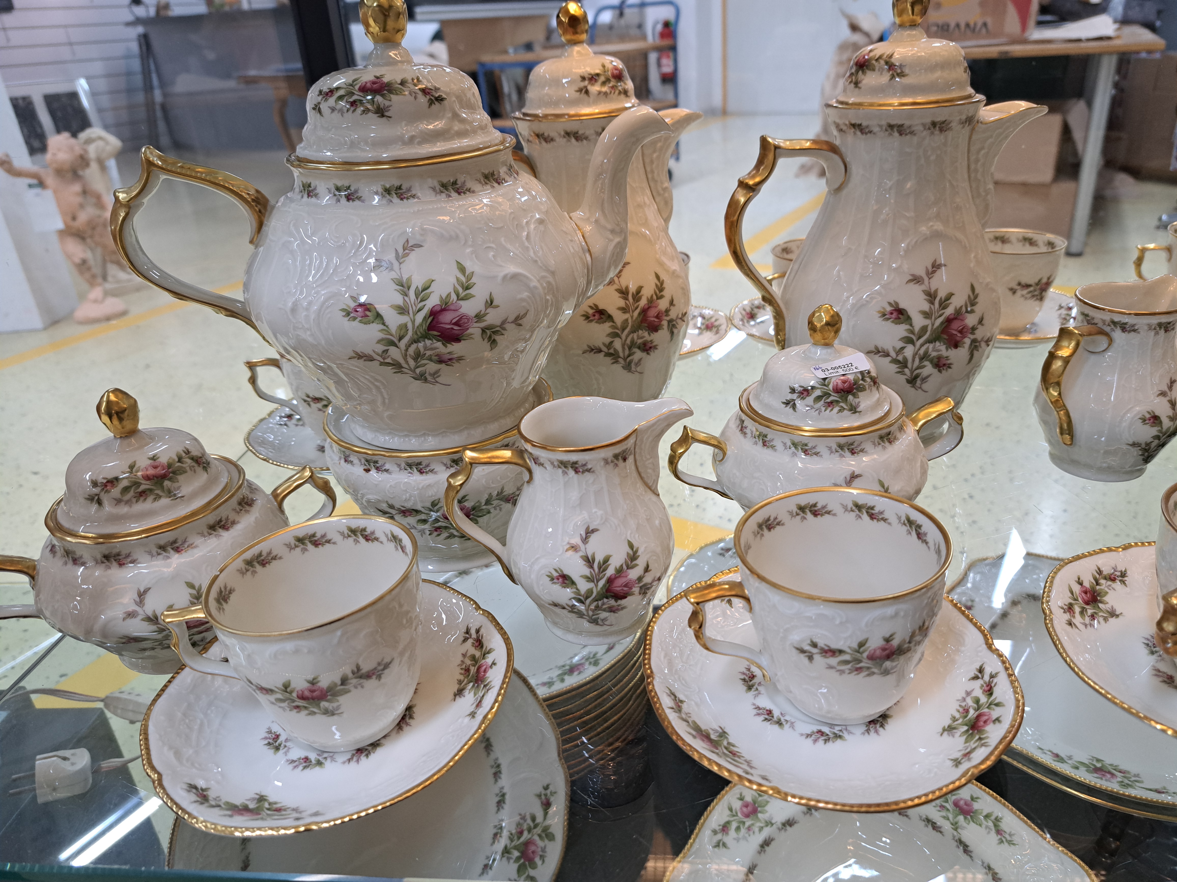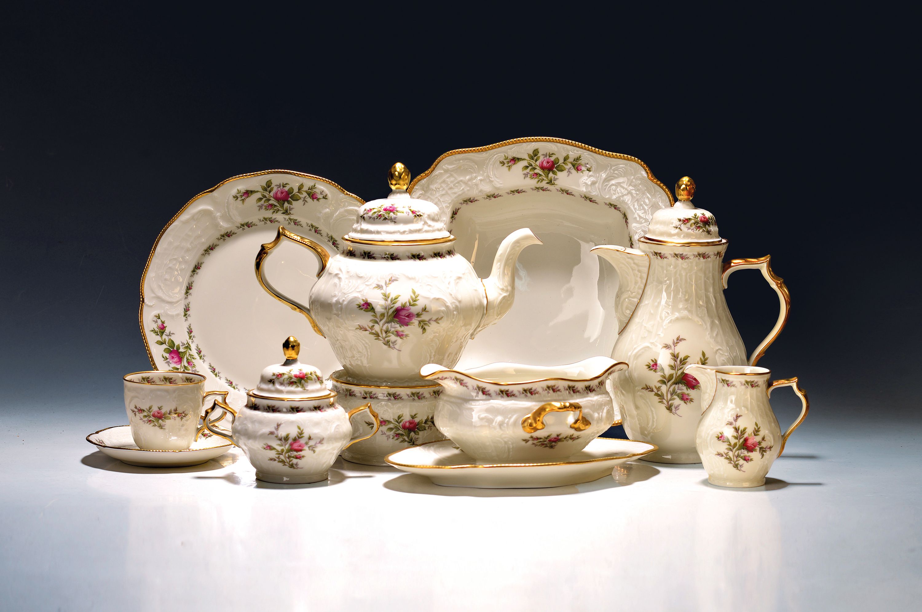 Kaffee- und Speiseservice, Rosenthal, Modell Moliere Moosrose, mit Goldstaffage,