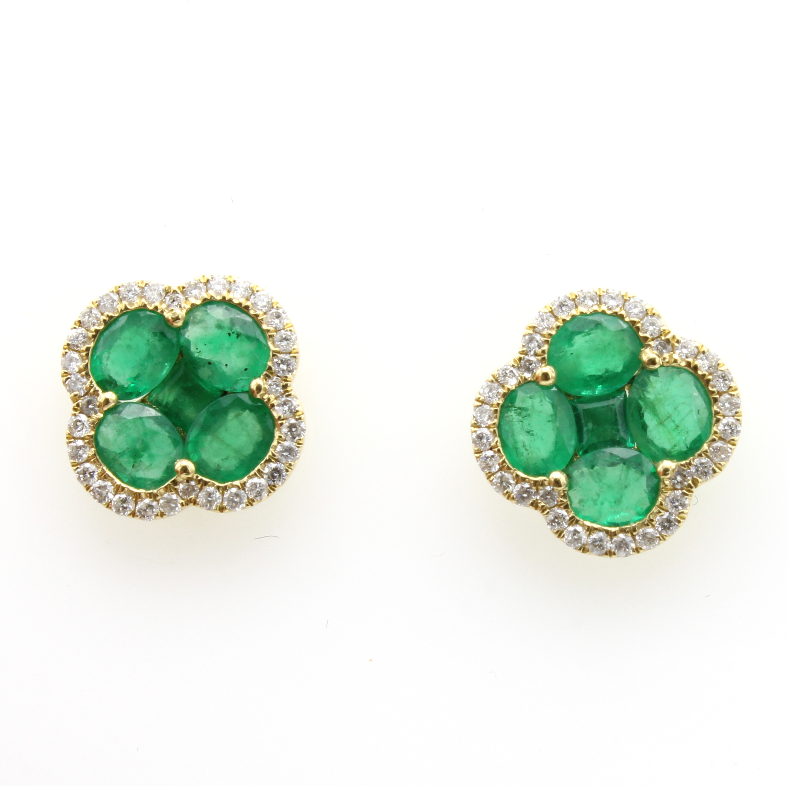Paar Ohrstecker mit Smaragden und Brillanten, GG 750/000, 10 Smaragde zus. ca. 2.30 ct, 64 Brill. zus. ca. 0.36 ct Weiß/p Schätzpreis: 2900, - EUR
