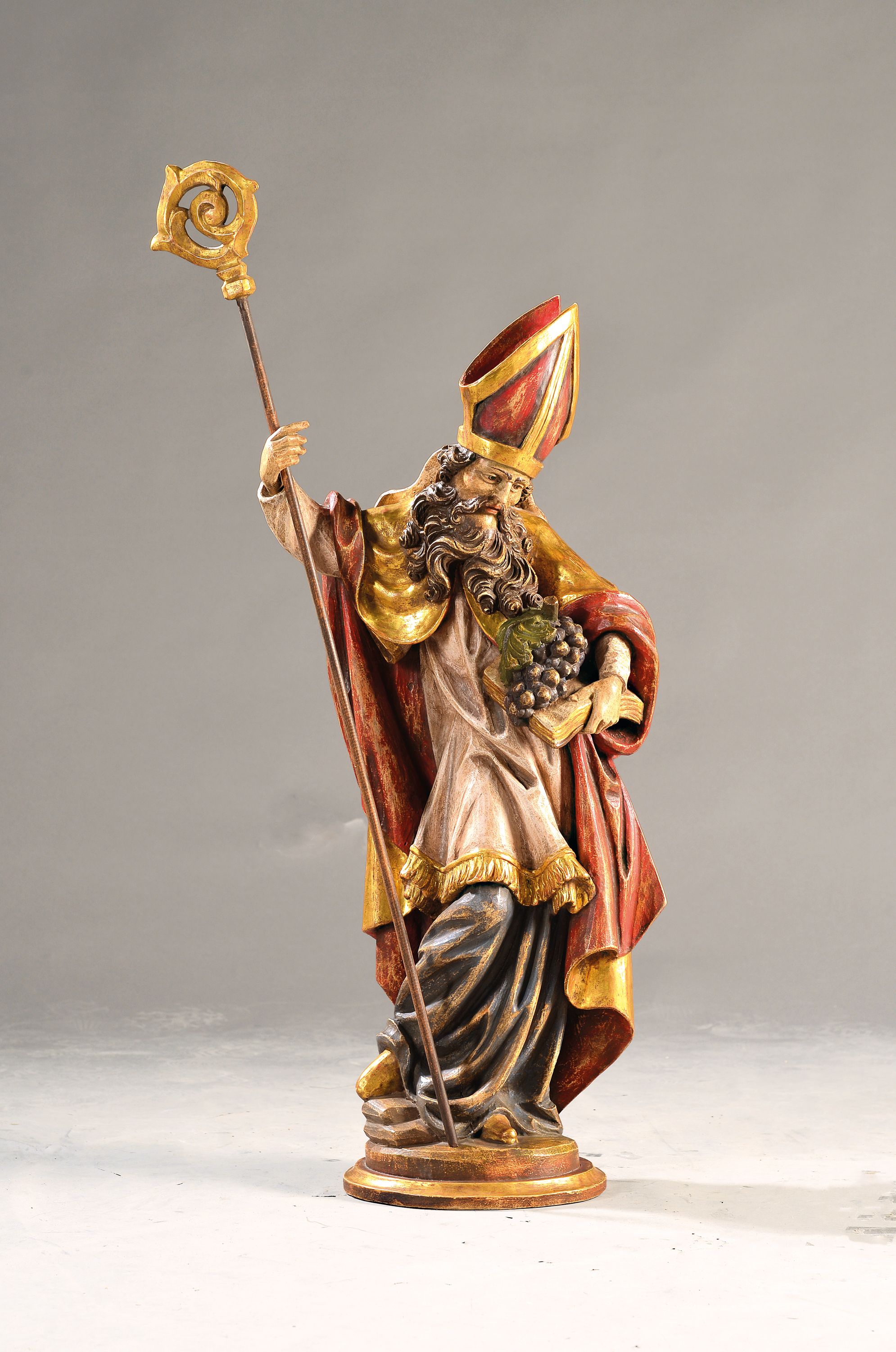 Skulptur des Hl. Urban, Schutzpatron der Winzer, Südtirol, 20. Jh., Lindenholz geschnitzt,