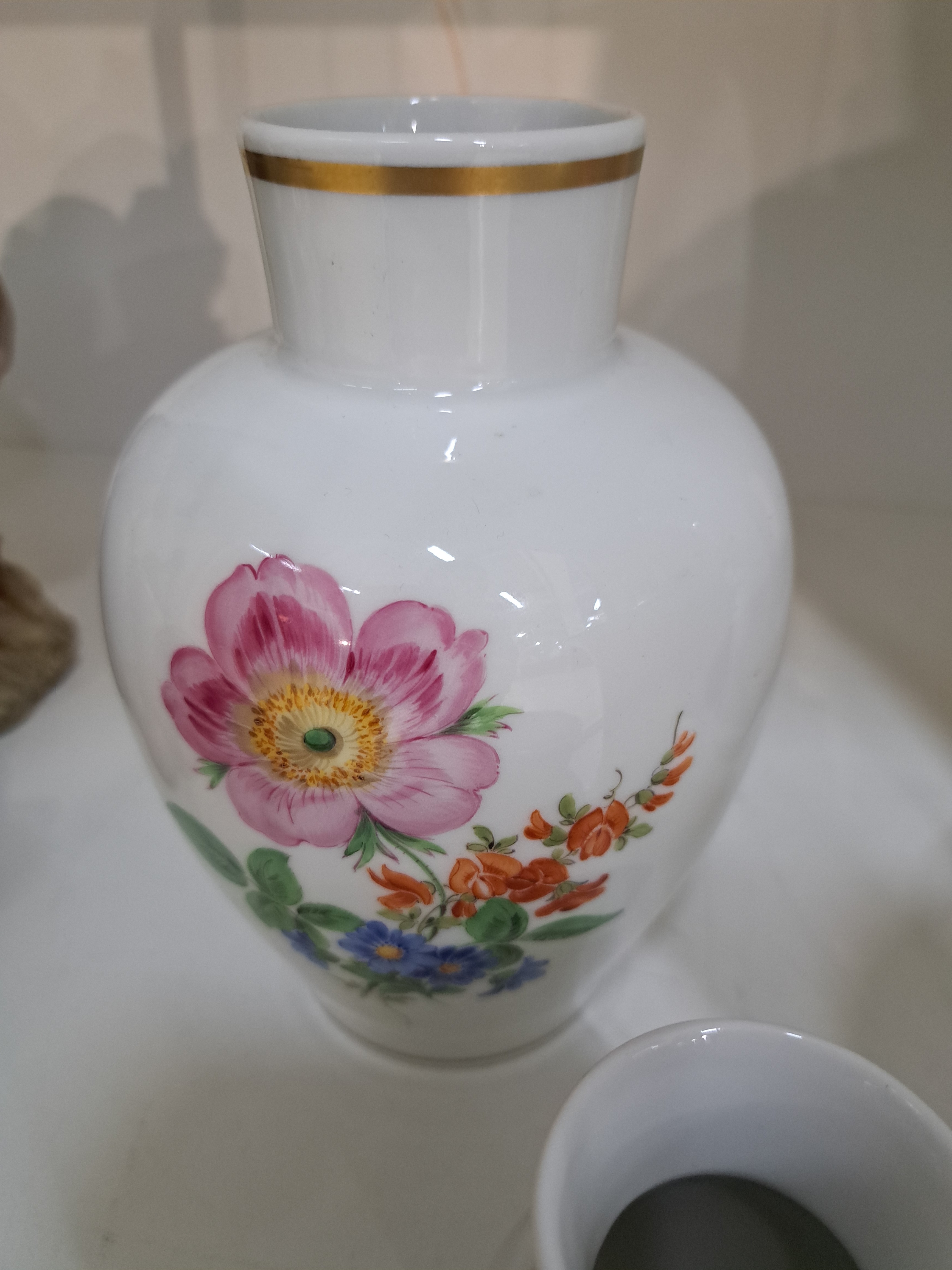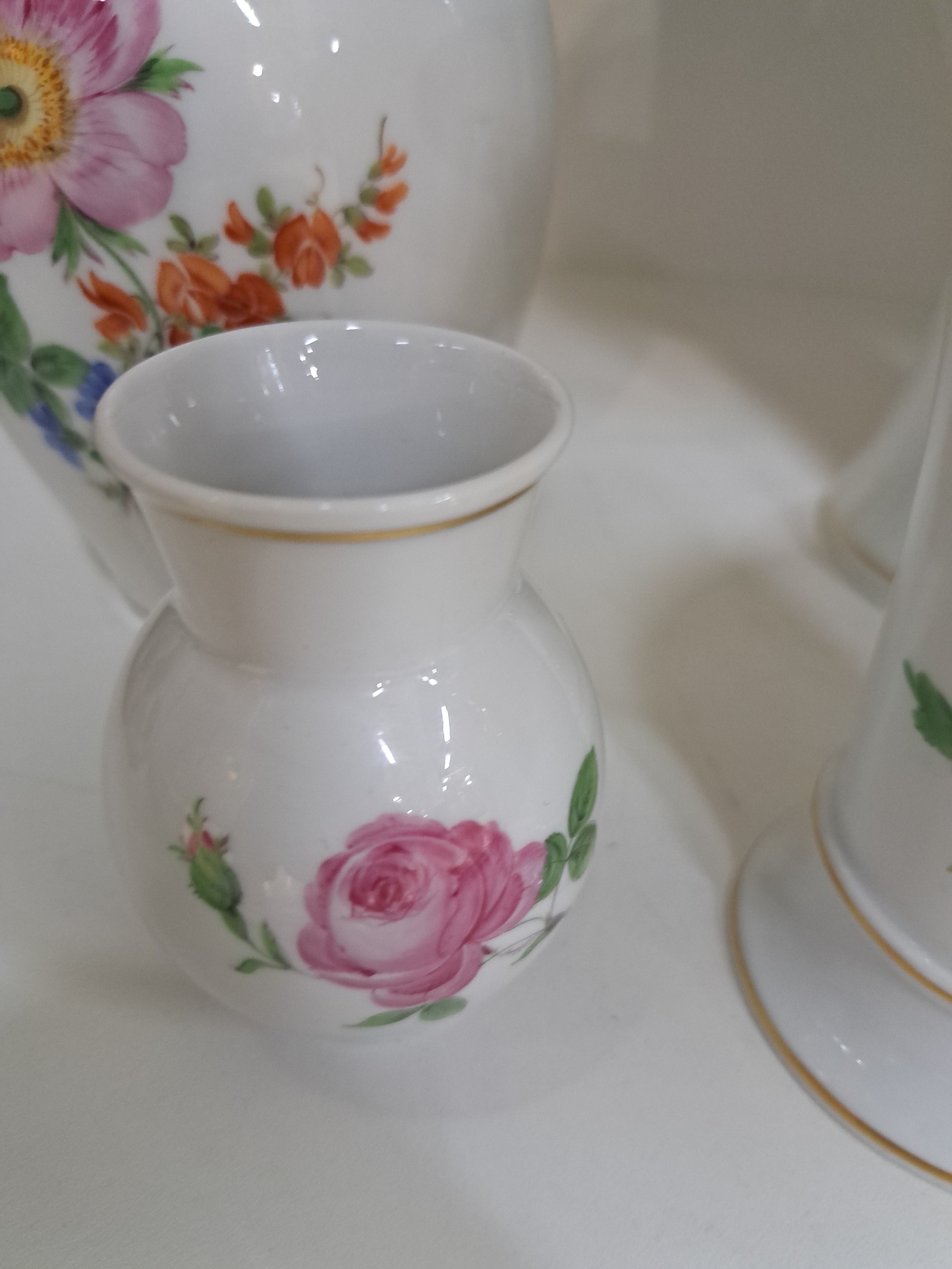 5 Ziervasen mit Blumenmalerei, Meissen, 20.Jh., Porzellan, 2.Wahl: Trichtervase,