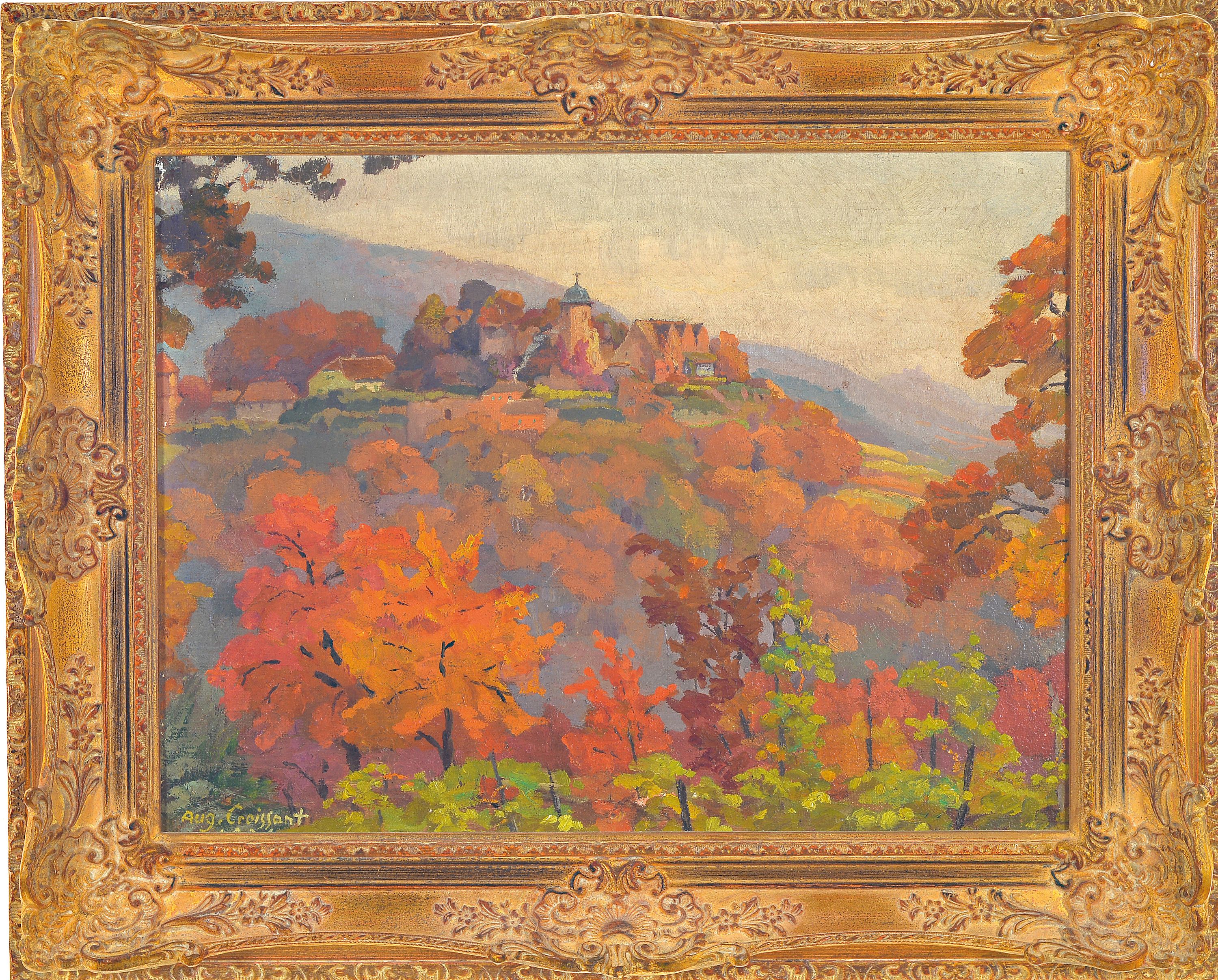 August Croissant, 1870-1941 Landau, Herbstliche Landschaft mit Blick auf die Kropsburg,