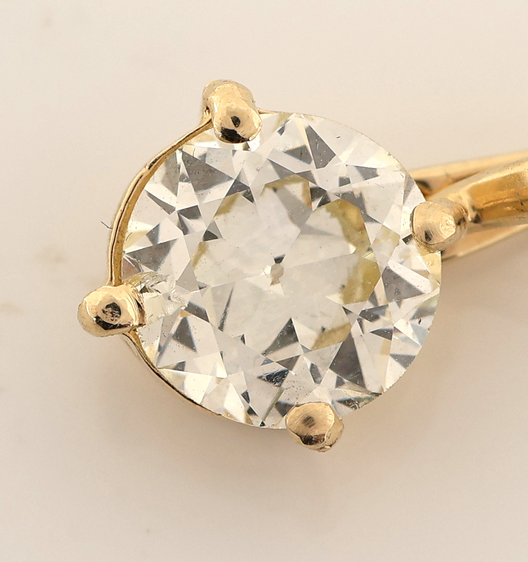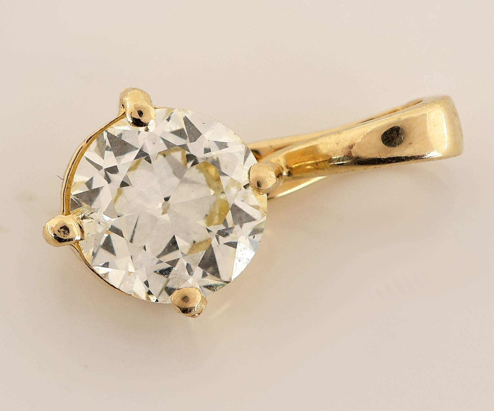 14 kt Gold Diamant-Clipanhänger, GG 585/000, schlicht, Altschliffdiamant ca. 1.41 ct get./si, Stein besch. (Ausbruch an Krappe), ca. 1.1 g