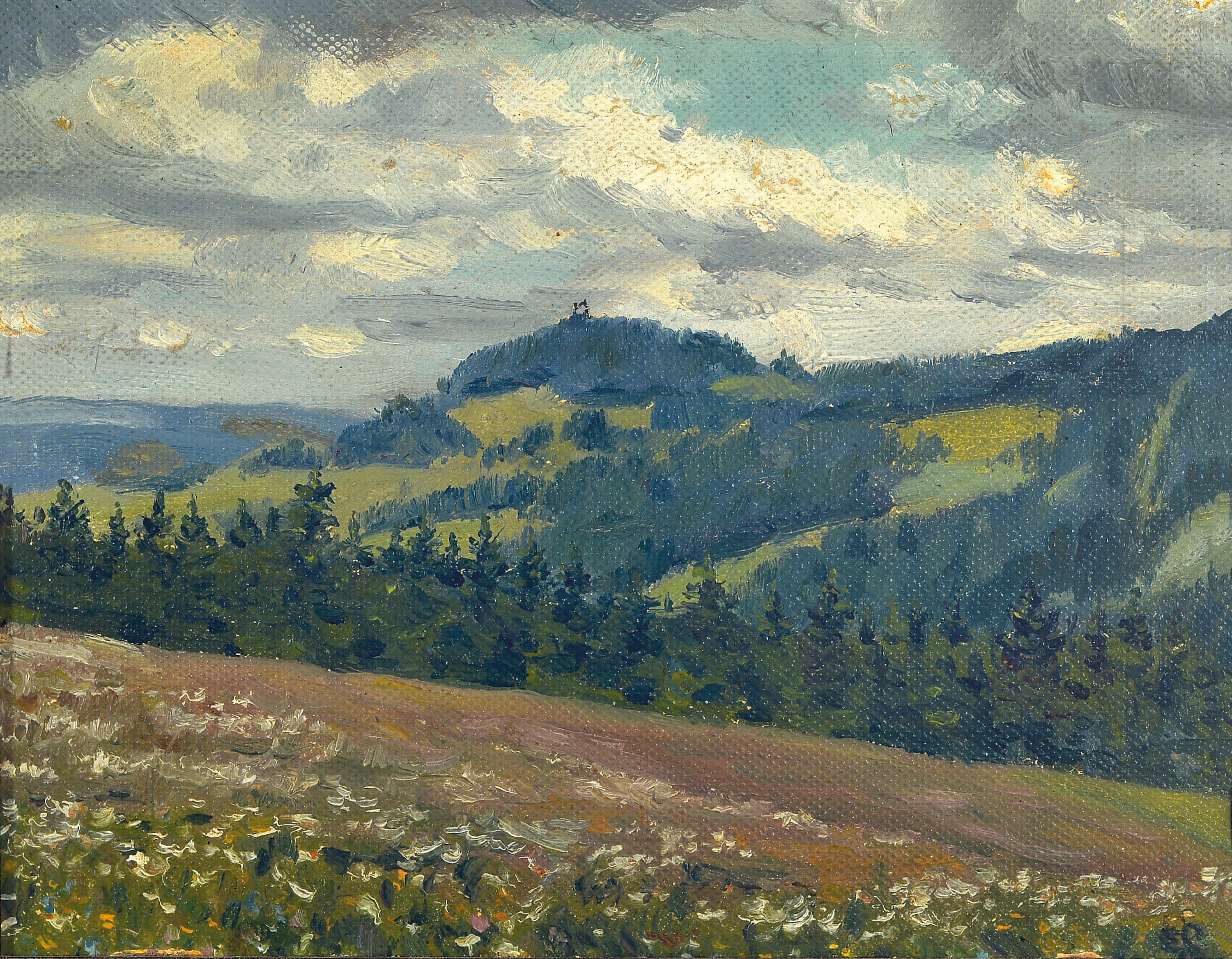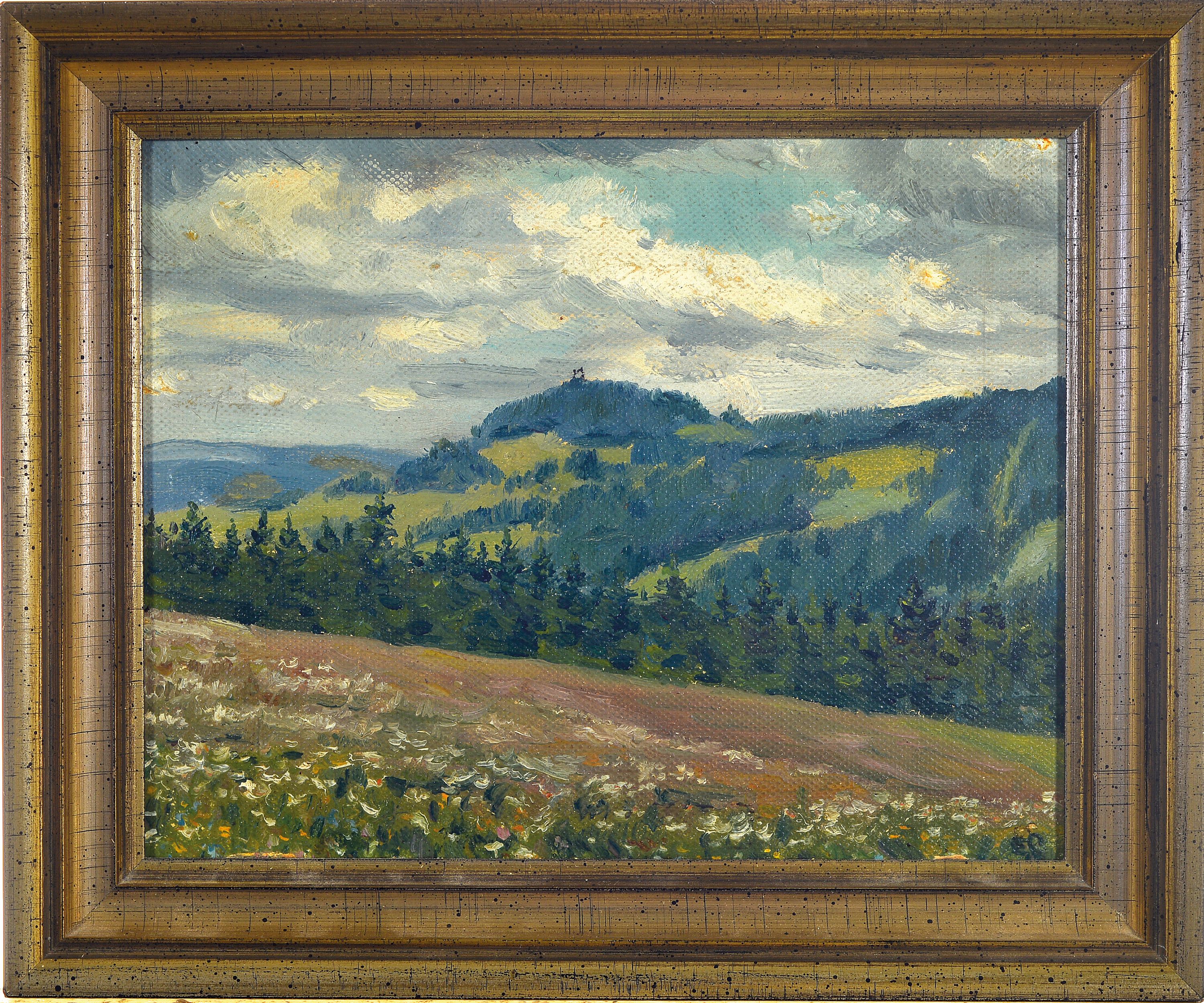 Eugen Croissant, 1898 Landau-1976 Breitbrunn, Landschaft bei Lindelbrunn, Öl/Malkarton,