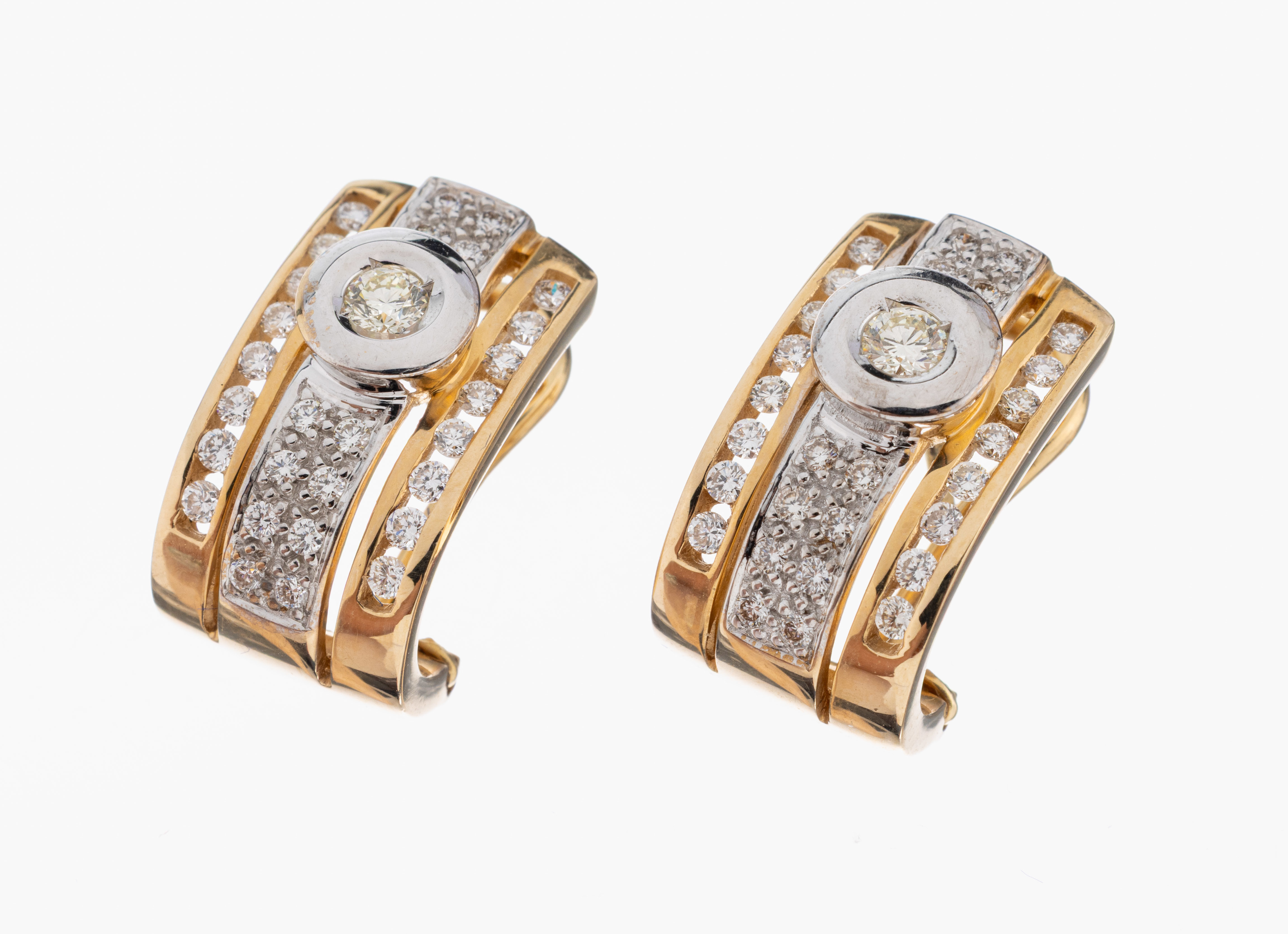 Paar 14 kt Gold Brillant-Ohrstecker, GG 585/000, 2 Brillanten zus. ca. 0.10 ct get.Weiß/vs,