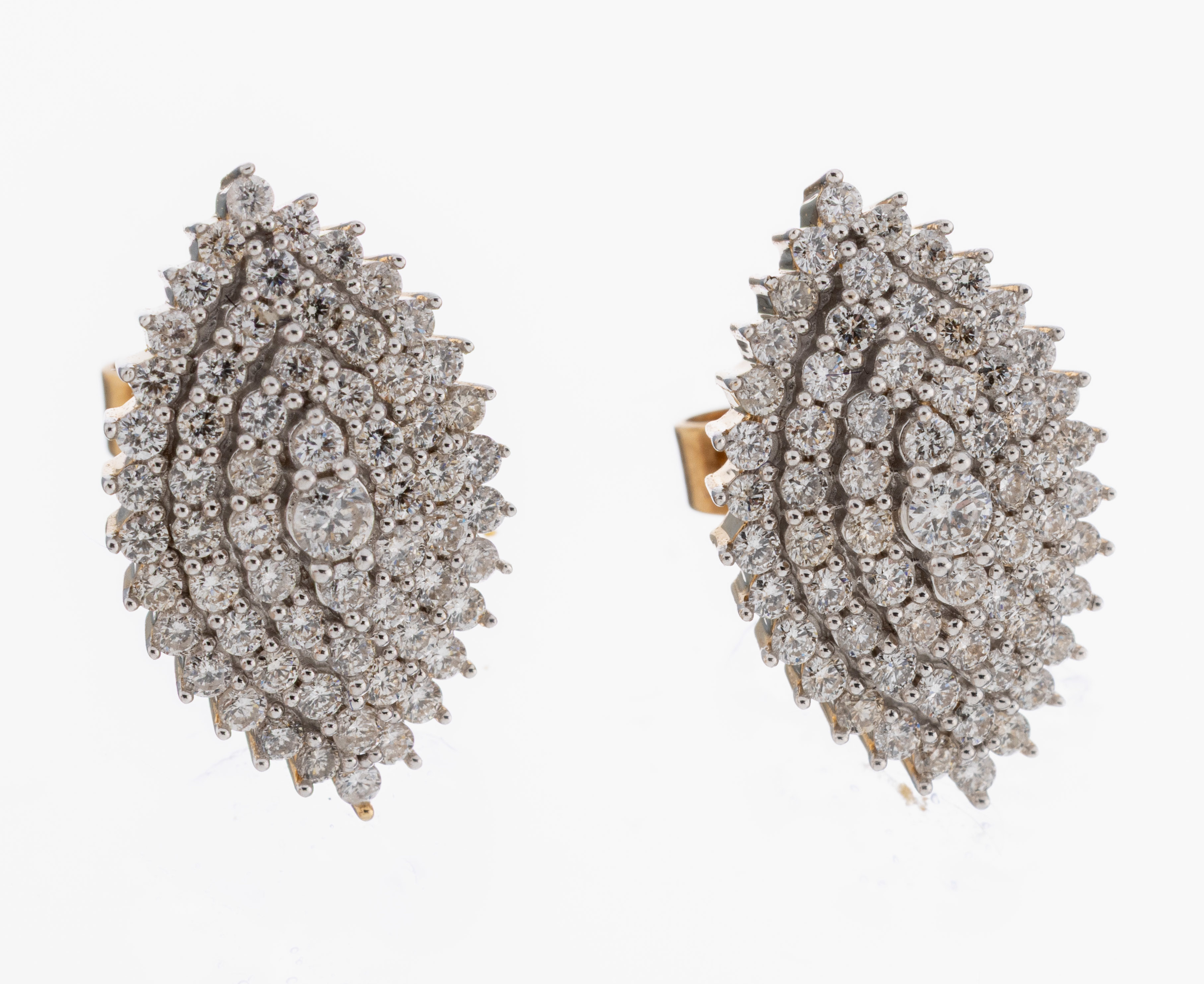 Paar 14 kt Gold Brillant-Ohrstecker, GG/WG 585/000, Navetteform, Brillanten zus.