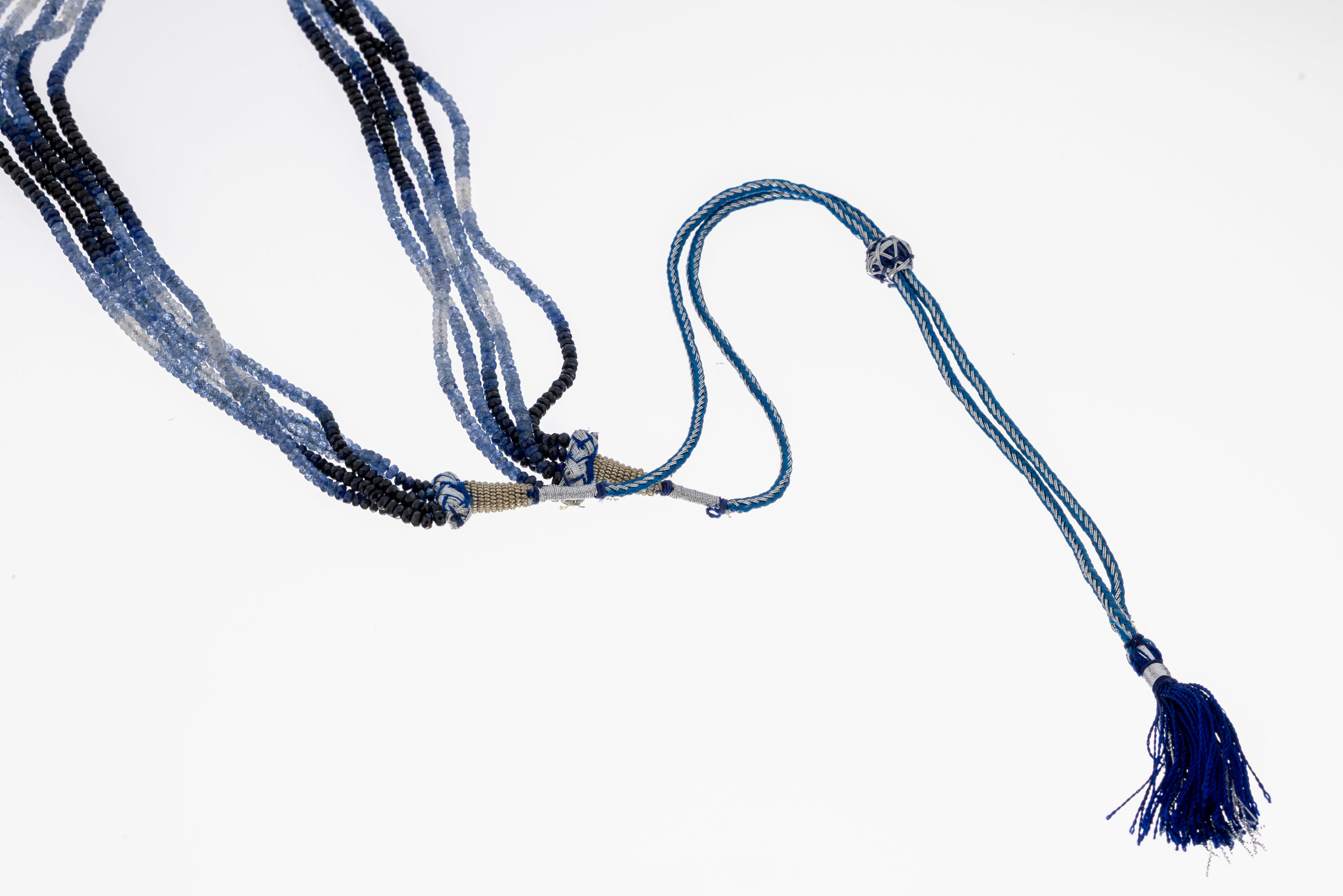 Saphir-Collier, wohl Indien, 5-rhg., facett. Saphire im Farbverlauf von hell- bis