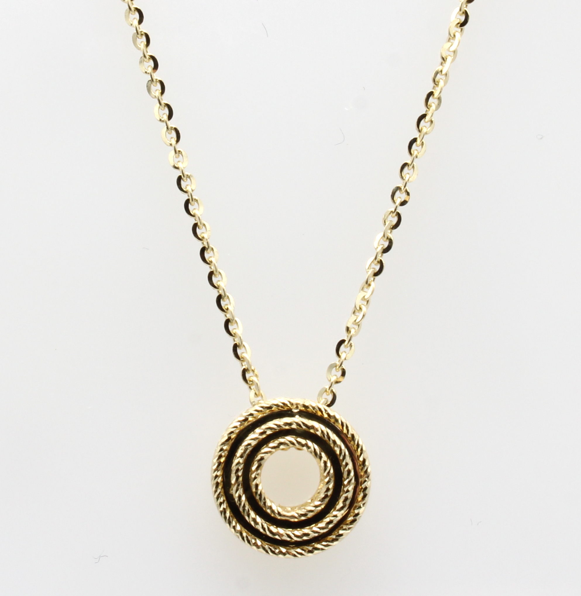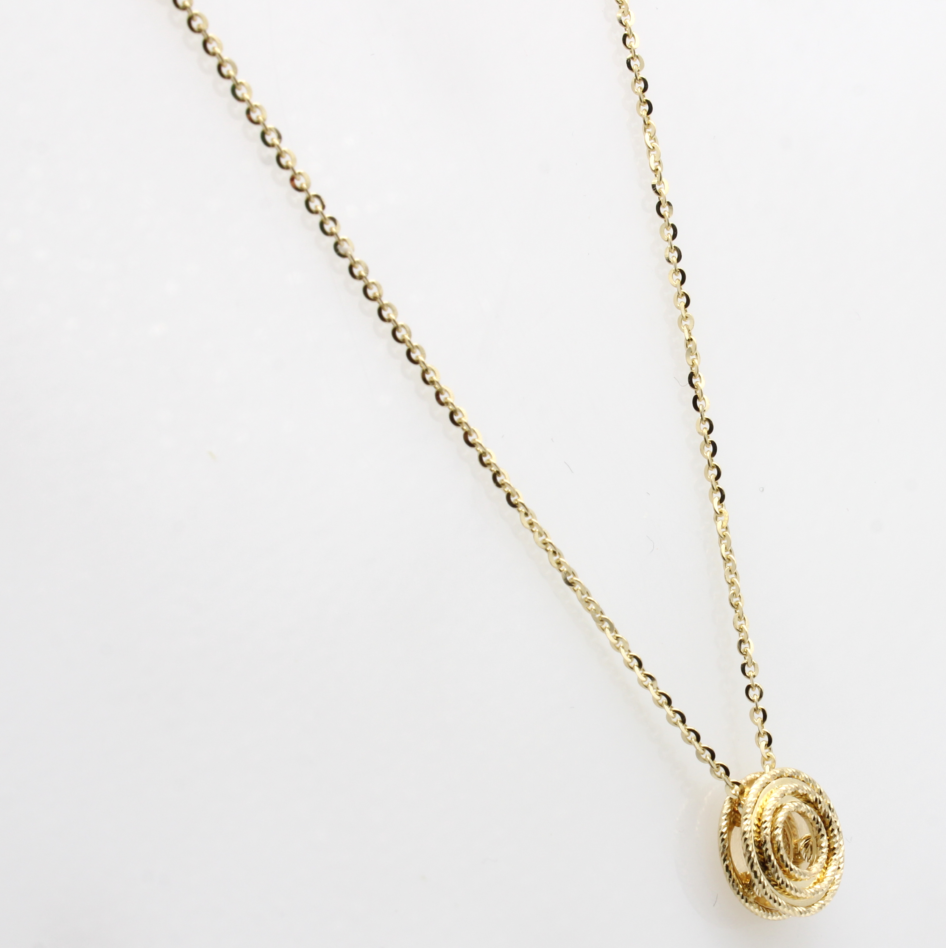 Anhänger an Kette, GG 585/000, runder Anhänger, strukturiert, in L. ca. 42-45 cm tragbar