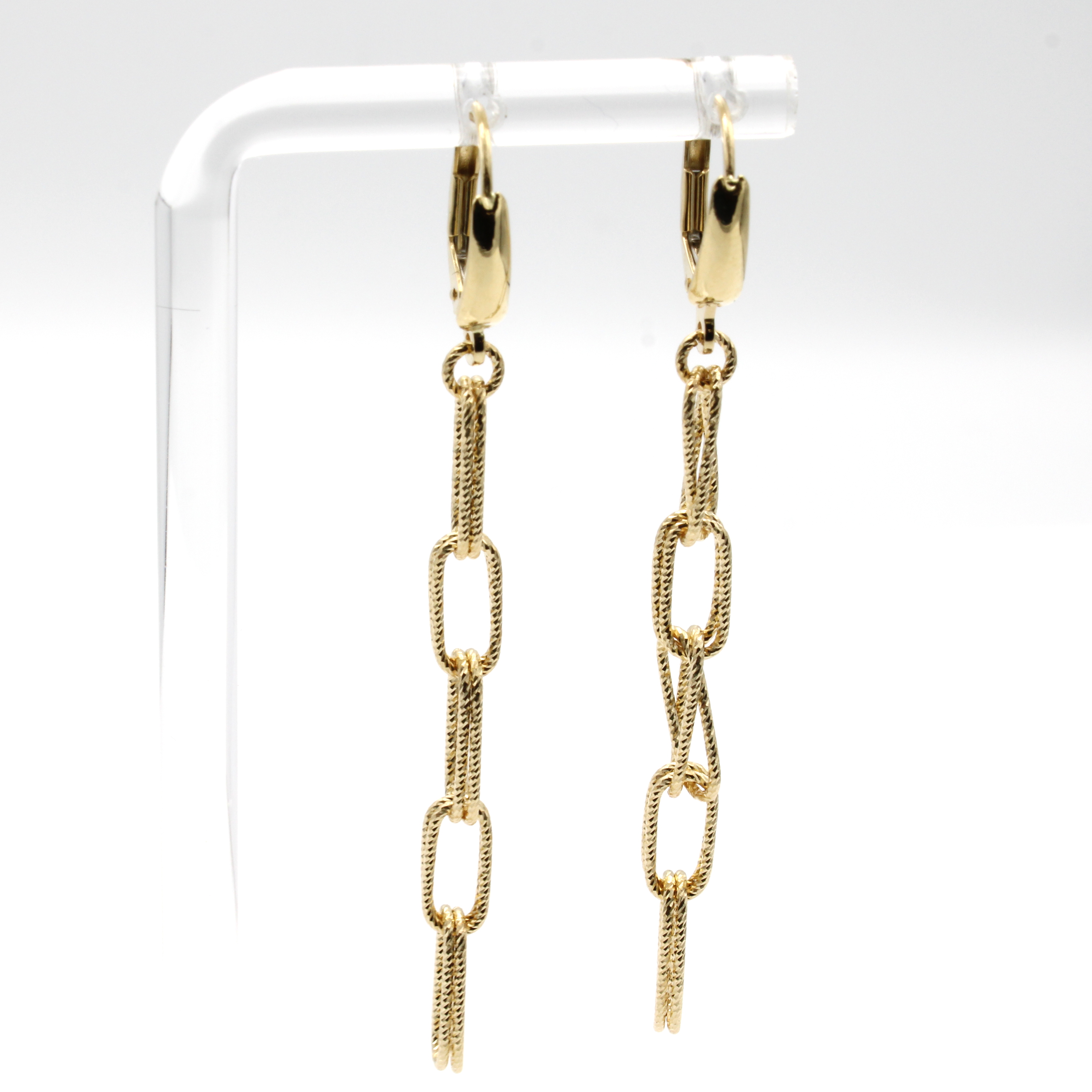 Paar Ohrgehänge, GG 585/000, ovale Glieder, strukturiert