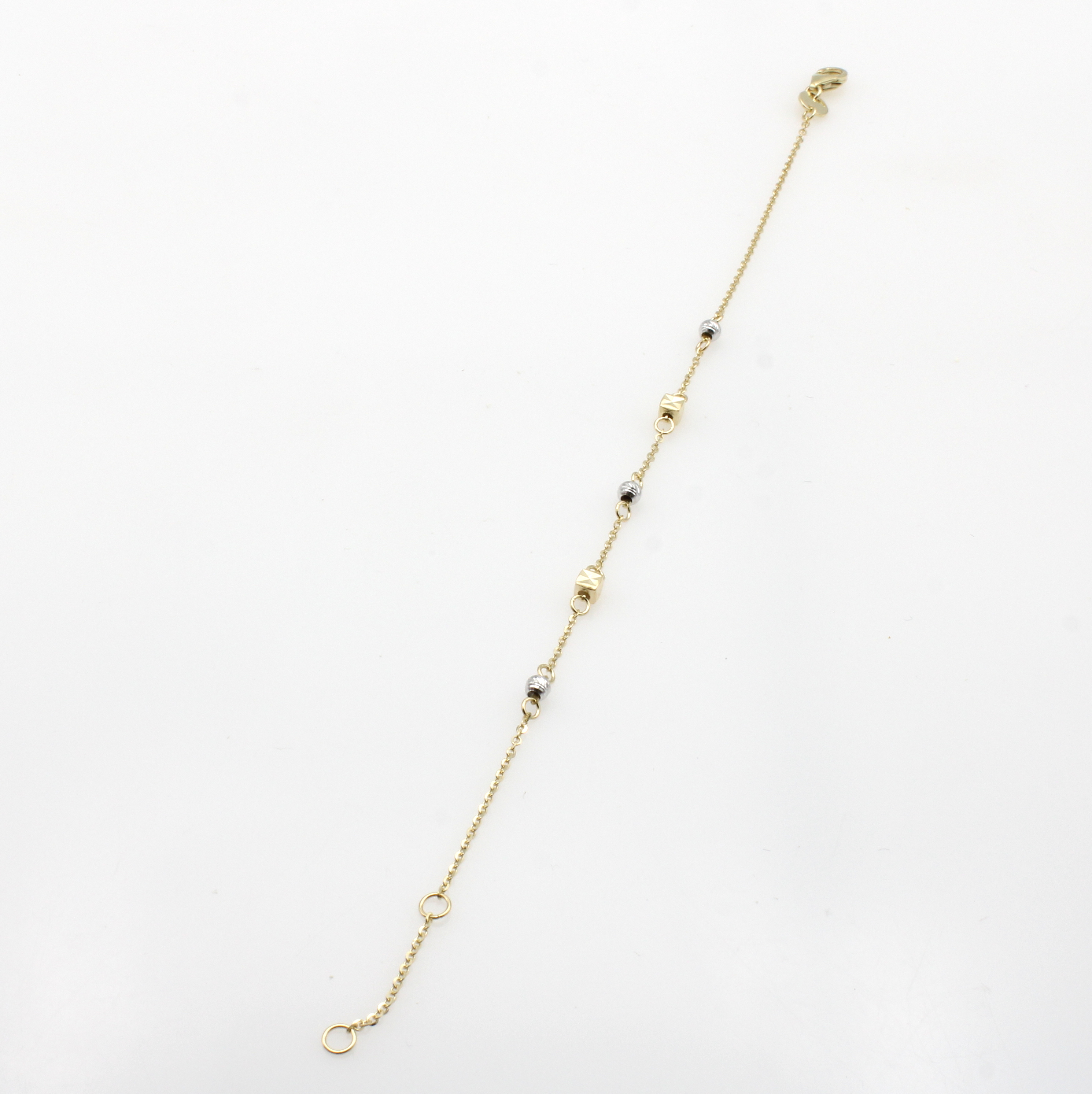 Armband, GG/WG 585/000, fac. Kügelchen u. Würfel, strukturiert, in L. ca. 17 u. 19 cm tragbar