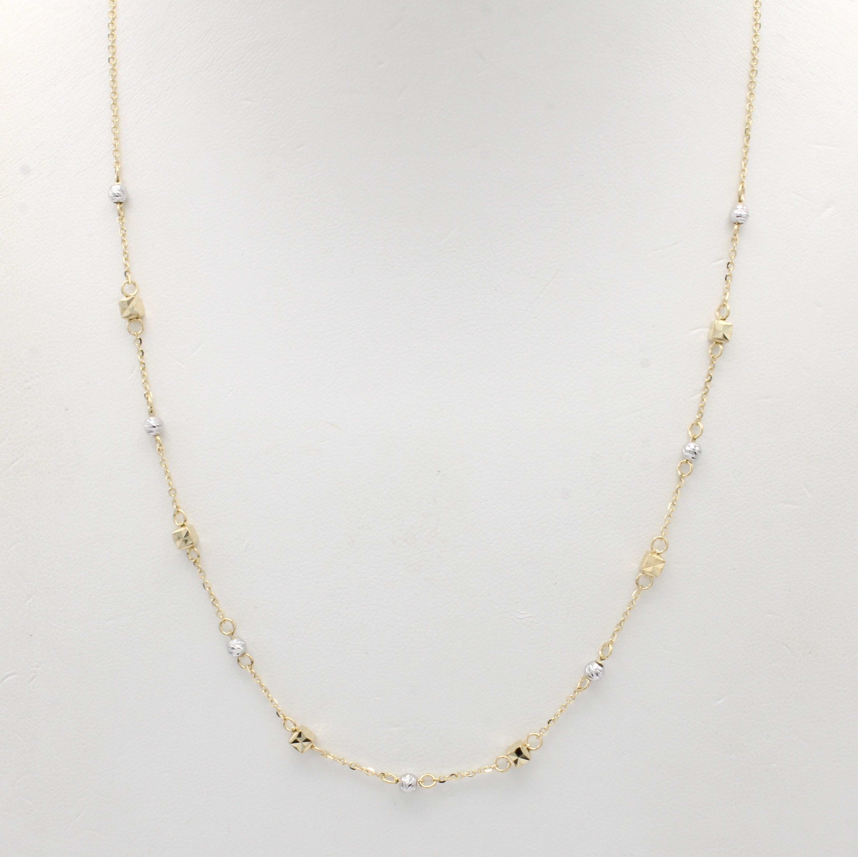 Collier, GG/WG 585/000, fac. Kügelchen u. Würfel, strukturiert, in L. ca. 40 u. 43 cm tragbar