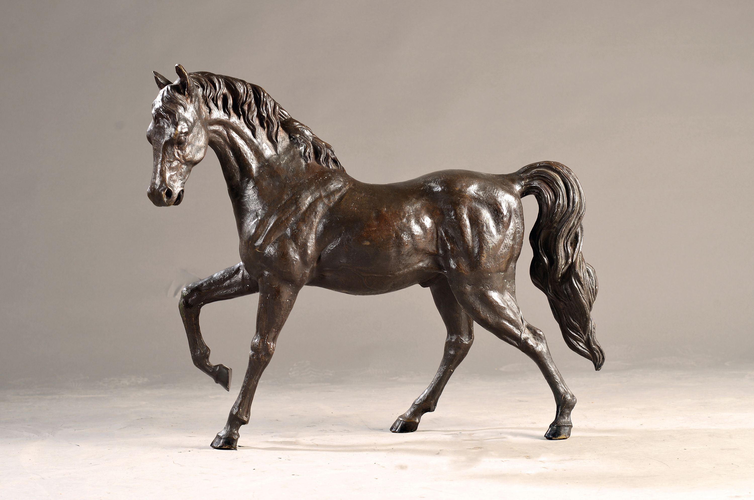 Große Skulptur eines Pferdes, neuzeitlich, Bronzeguß, naturalistische Darstellung,
