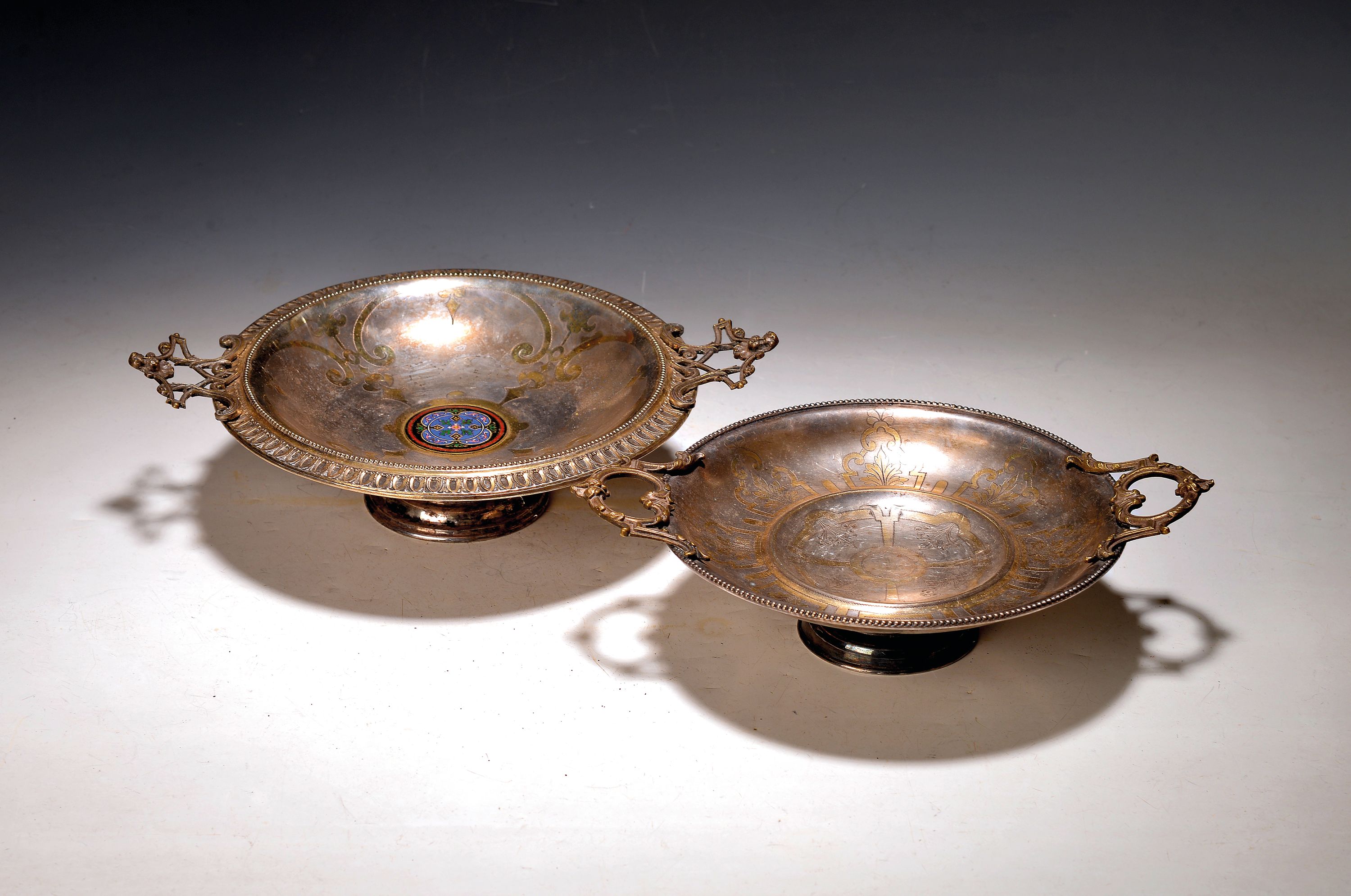 Paar Fußschalen, 19.Jh., Metall versilbert und vergoldet, Ornament- und Floraldekor,